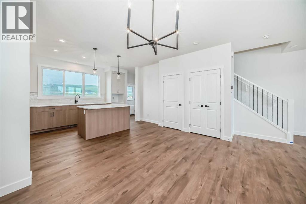 PRICE NOW INCLUDES 40K INCENTIVE AND LOT REBATE OF 5 K !! Welcome to 426 Heartland Way, a beautifully designed detached home by Daytona Homes offering over 1,600 square feet of modern living in the heart of Cochrane’s Heartland community. With three bedrooms, two and a half bathrooms, and thoughtful upgrades throughout, this home is a perfect blend of comfort, function, and style.Step inside to a bright and open layout that immediately feels welcoming. The front great room sets the tone for relaxed living, flowing effortlessly toward the rear of the home. A versatile den sits just off the main path, perfect for a home office or quiet reading nook. At the center of the main floor, the dining area is ideally located for everyday meals or casual entertaining. The spacious kitchen anchors the rear of the home, featuring a large island, modern cabinetry, and plenty of prep space. A tucked-away two-piece bathroom adds convenience without interrupting the flow.Upstairs, two generously sized bedrooms at the back of the home share a full four-piece bathroom. A centrally located laundry room adds practicality, and at the front, the private primary suite offers a peaceful retreat with a large walk-in closet and a five-piece ensuite complete with dual sinks, a soaker tub, and a separate shower.Out back, a rear parking pad offers space for two vehicles and flexibility for future garage development. (id:6769)