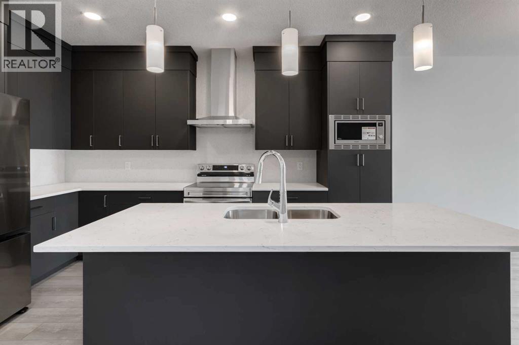 Introducing the COHEN: an amazing, BRAND NEW attached home by EXCEL HOMES offering 1733 SF above grade of upgraded luxury! Nestled in the vibrant Northeast community of Livingston. Step into a life of luxury and convenience with this stunning residence, where every detail has been meticulously crafted for comfort and style. Enjoy the benefits of living in an established neighborhood that brings a plethora of amenities right to your doorstep, along with swift access to major highways. The COHEN offers a sprawling 1733 square feet of thoughtfully designed living space, perfect for both families and entertaining. The open floor plan, complemented by neutral designer tones, creates a welcoming atmosphere that is both elegant and comfortable. The chef-quality kitchen stands as the heart of the home, equipped with ceiling-height cabinets, pot/pan drawers, and upgraded stainless steel appliances, including chimney fan and built-in microwave. The expansive engineered stone countertops, a large island with seating, and a convenient pantry make it a dream kitchen for those who love to cook and entertain. The main floor also features versatile luxury vinyl plank flooring. Uniquely ON THE MAIN FLOOR, you'll find a BEDROOM & FULL 4 PCE BATHROOM. Ascend to the second level where leisure meets luxury in the large central bonus room — ideal for movie nights and family gatherings. The primary bedroom is a true retreat, boasting a walk-in closet and a spa-like ensuite with stone vanity tops. Additionally, two more generously sized bedrooms provide ample space and easy access to the main bathroom. The convenience continues with a laundry room (w/folding counter), strategically located on the same floor. The possibilities extend into the undeveloped basement that has separate SEPARATE SIDE ENTY & ROUGH IN'S FOR 2 BEDROOM LEGAL SUITE (with city permits & approvals)... the utilities are tucked away for easy development. Step outside to a southeast-facing backyard that's perfect for re laxation and outdoor activities. You'll love the convenience of the REAR DOUBLE DETACHED GARAGE (not yet built - seasonal item)! Don't miss the chance to own this never-lived-in gem with quick possession available. Experience the blend of luxury, comfort, and convenience in Livingston—welcome to your new dream home at the COHEN. This home will include front & back yard sod. Also includes complete interior sprinkler system to main and upper floors! (id:6769)