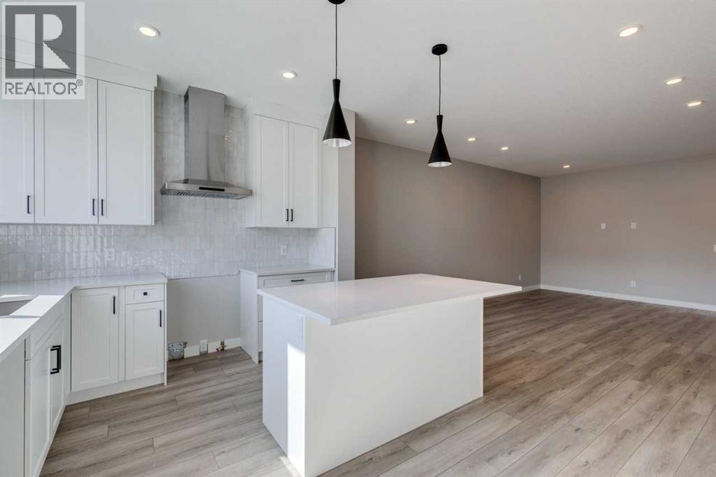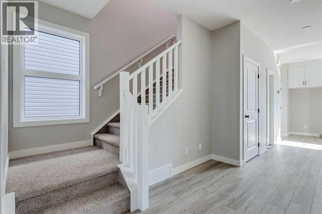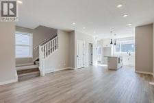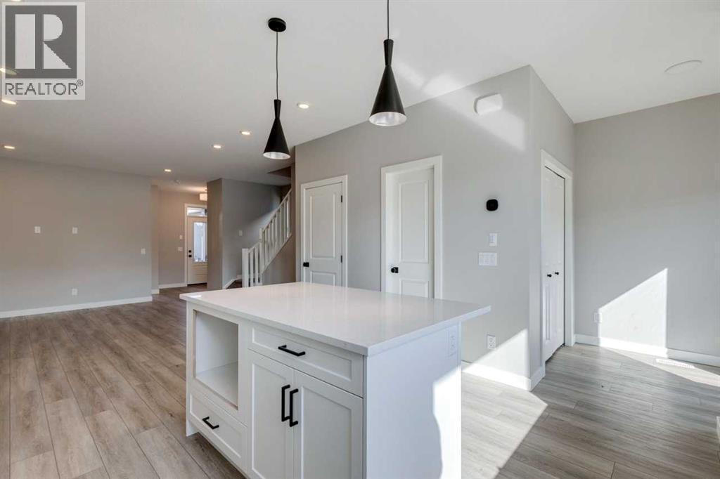 The Lucca by Cardel Homes, a Premium Paired home at 1,802 sq. ft. of well-designed living space. Its farmhouse-inspired exterior features Hardie board siding, black-framed windows, and a modern, open-concept layout. The interior boasts luxury vinyl plank flooring throughout the main floor, upper-floor loft, and hallway, creating a cohesive feel. The rear-facing kitchen overlooks the backyard and features Winter-stained maple cabinetry, quartz countertops, and Samsung stainless steel appliances. A chimney hood fan, large island, and picture window above the granite sink elevate both style and practicality. A functional back entry and walk-in pantry, ensures everyday convenience. At the front, a main-floor bedroom and full bath provide flexibility. Upstairs, the primary bedroom offers a dual-sink ensuite, while two additional bedrooms are separated by a loft space and a conveniently located laundry room. Photos are representative. (id:6769)