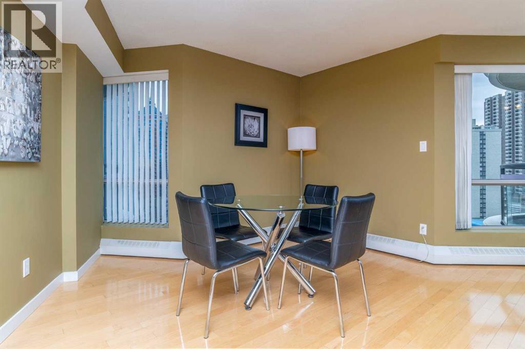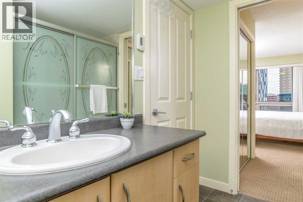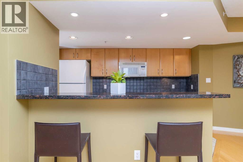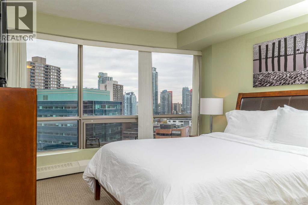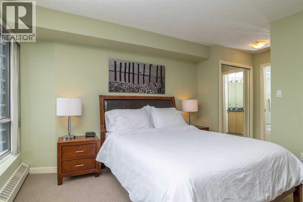 Welcome to your cozy urban getaway nestled in downtown Calgary! This stylish condo offers a perfect balance of comfort, convenience, and captivating city views. Step into the welcoming open-concept living area, filled with natural light from floor-to-ceiling windows. The kitchen, equipped with granite countertops and a convenient breakfast bar, is perfect for quick meals and casual dining. Relax in the comfortable master suite, complete with a spacious walk-through closet leading to the ensuite. The Den is versatile, providing space for a bed, guest area, or home office, according to your needs. Take advantage of the spacious balcony, offering a serene retreat from the city buzz below. Whether enjoying morning coffee with skyline views or unwinding with a glass of wine as the city lights twinkle, this balcony is your private oasis. Additional amenities include in-unit laundry and secure underground parking. Building facilities such as concierge service, fitness center, pool, hot tub, and recreation spaces enhance your urban living experience. Located in the heart of downtown Calgary, you're within walking distance of the city's best restaurants, shops, and public transportation options. Explore the nearby Bow River and Prince's Island Park for outdoor activities and leisure. This condo embodies downtown living in Calgary, offering modern comfort, convenience, and a front-row seat to city life. Don't miss out on the opportunity to make this cozy urban retreat your new home! (id:6769)