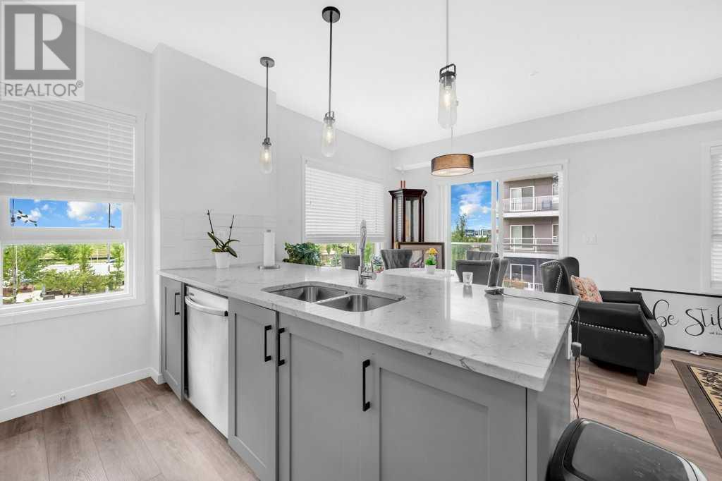Welcome to this bright and spacious second-floor corner unit in the vibrant, master-planned community of Seton! Nearly brand new and offering 9’ ceilings, this beautifully designed home features a modern open-concept layout with luxury vinyl plank flooring throughout the main living areas. Step into a generous foyer with space for a console table, leading into a stylish living and dining area that’s perfect for both daily living and entertaining. The gourmet kitchen boasts extended soft-close cabinetry, stainless steel appliances, a large island with double sink, and sleek granite countertops—ideal for cooking and gathering with loved ones.A bright and spacious dining area with a large window brings in tons of natural light, and opens to a massive, private balcony, perfect for enjoying your morning coffee or hosting weekend BBQs. The living room offers ample space for a full set of furniture, making it easy to create a cozy, welcoming atmosphere. The primary bedroom is a true retreat, featuring space for a king-sized bed, a large walk-in closet, and a luxurious 4-piece ensuite with double vanity, granite countertops, soft-close drawers, and a stylish stand-up shower. The two additional bedrooms are well-sized with great closet space, ideal for kids, guests, or a home office. A second full 4-piece bathroom also features granite countertops and modern finishes.Additional features: One titled underground parking stall, Separate storage unit, Energy-efficient construction, Low-maintenance finishes throughout.Located just steps from South Health Campus, major shopping centres, restaurants, schools, and transit. Seton is one of Calgary’s most desirable new communities, live close to everything you need! This is the perfect home for a family of 3–4, first-time buyers, or anyone looking to downsize without compromising on space or style. Book your showing today! (id:6769)
