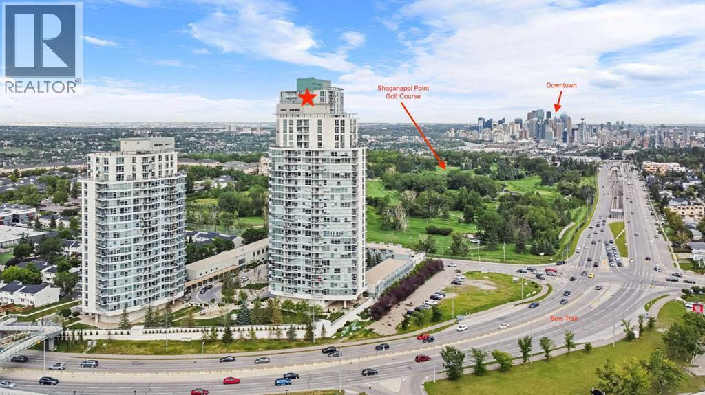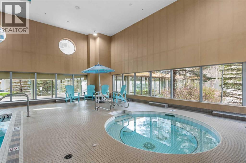 OPEN HOUSE SATURDAY NOV 8 3 PM TO 5 PM. Welcome to this spacious and beautifully 2 bedroom 2 bath, Virtual Staged condo, with sweeping views of the mountains and city skyline, perfectly located in desirable community of Spruce Cliff. This unit features two bedrooms, 2 baths, including a large primary suite with a walk-in closet and 4-piece ensuite.The kitchen is designed for both function and style, complete with rich wood cabinetry, granite countertops, and a central island—perfect for entertaining or casual dining. Flooring throughout includes a combination of plank laminate and cozy carpet. Other notable features include in-suite laundry and central air.Enjoy resort-style living with access to premium building amenities including an indoor swimming pool, hot tub, games room, fully equipped fitness center, and a multi-purpose room for gatherings. The building is meticulously maintained with 24/7 on-site security for your peace of mind.This unit comes with storage lockers and a titled heated underground parking stall. As a bonus visitors also have the convenience of underground guest parking. All of this located just minutes from downtown, Edworthy Park, Shaganappi golf course and a short walk to the C-Train, shops, and countless other amenities.Don't miss the opportunity to live in one of Calgary's most sought-after communities! (id:6769)