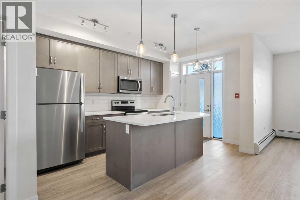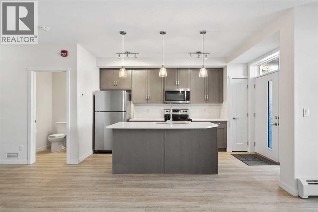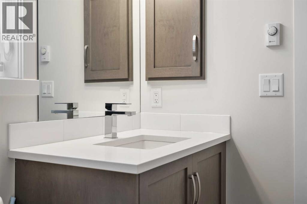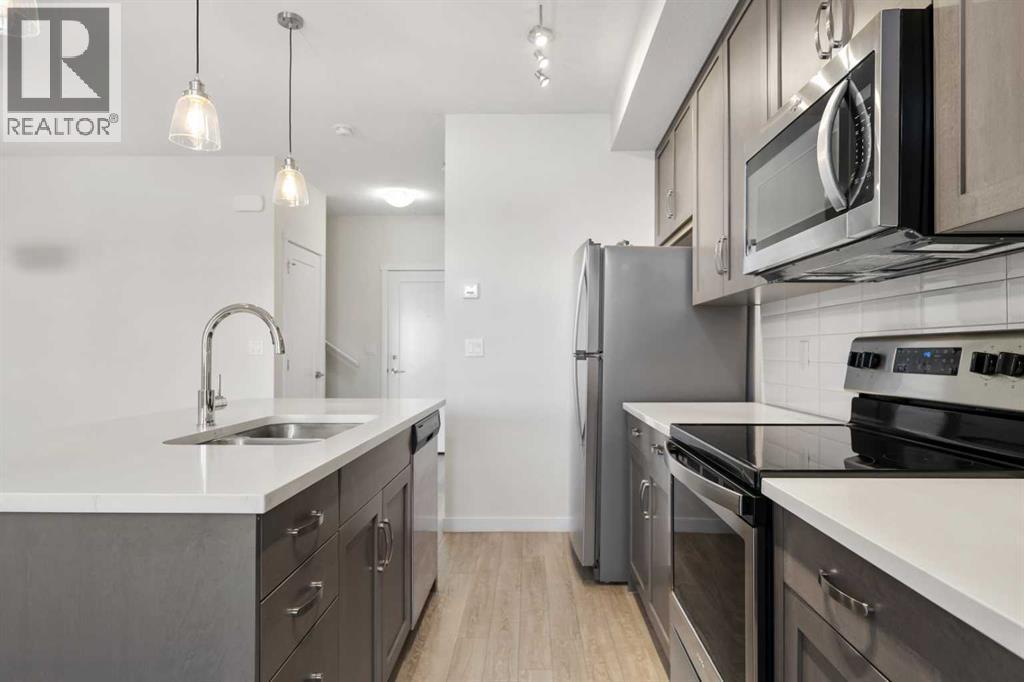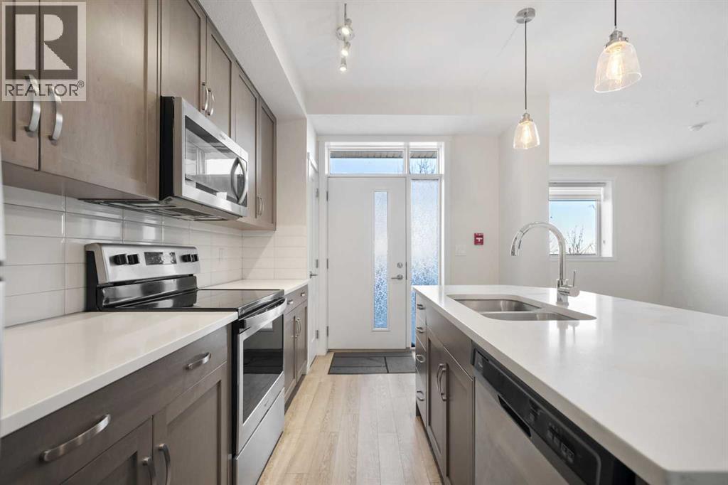 Welcome to Fish Creek Exchange in the serene Shawnee Park community! This stunning two-story residence offers over 1,200 sqft of meticulously designed living space, blending modern elegance with everyday functionality. Enter your private haven through a dedicated patio entryway that opens onto a peaceful north-facing patio, perfect for unwinding. The main floor showcases an open-concept design with impeccable finishes, including a sleek modern kitchen adorned with quartz countertops, premium stainless steel appliances, and chic wide-plank laminate flooring. A convenient 2-piece guest bathroom and a separate laundry room complete this level. Upstairs, you’ll find two spacious bedrooms, each with its own walk-through closet leading to a luxurious ensuite. The primary suite features a sophisticated 3-piece ensuite, while the second bedroom enjoys a 4-piece ensuite. An additional den/storage area on this floor offers the perfect space for a home office or creative retreat. Enjoy the convenience of titled parking and titled storage, along with a prime location just moments from the natural beauty of Fish Creek Park. Close to public transit, parks, shopping, dining, and top-tier schools, this residence delivers the perfect balance of tranquility and urban living. Your dream home awaits! (id:6769)