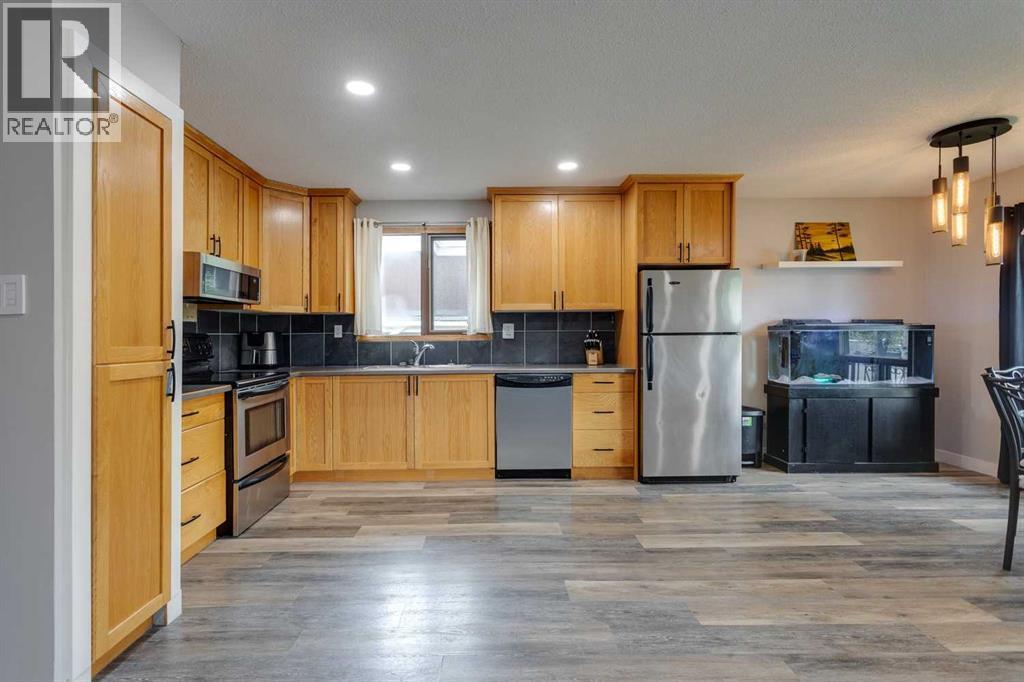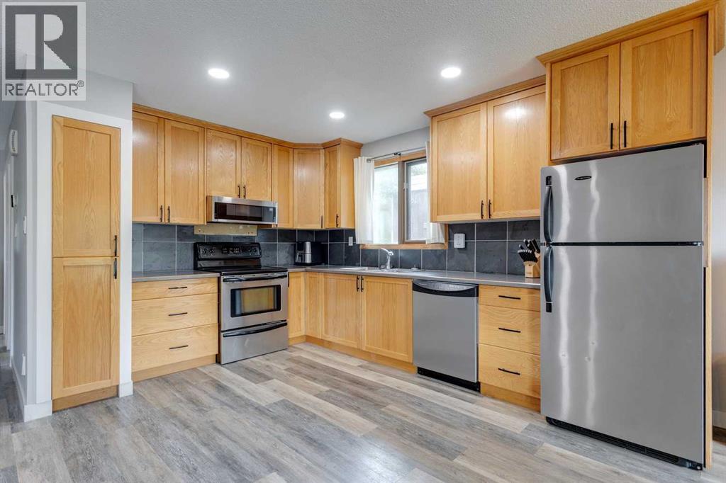 Explore this exceptional investment property, perfectly positioned for convenience near downtown, schools, shopping, and public transit. Upstairs, the main living area features a stylish open-concept kitchen, a cozy dining nook, and a spacious family room bathed in natural light. It also includes two generous bedrooms, convenient laundry facilities, and a 4-piece bathroom. The lower level, currently configured as an illegal suite, offers flexible living arrangements and is complete with a separate entrance, a fully equipped kitchen, two roomy bedrooms, a bathroom, and its own laundry. This home has undergone recent renovations. The main level includes all-new flooring (including subfloor), doors, trim, blown-in insulation, an upgraded bath fan, a new microwave, fresh paint, and smart LED lighting (Alexa and Siri capable). The lower level also benefits from fresh updates, including new floors, carpet, underlay, trim, doors, and an upgraded bath fan. The exterior boasts mature trees, a dedicated garden space, and a single-car garage. A key highlight: both current tenants are exceptional and very accommodating. This is an ideal, turn-key addition to your real estate investment portfolio. Contact us today to schedule your private tour. (id:6769)