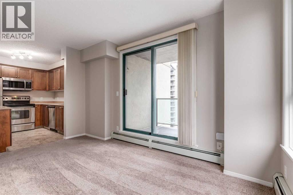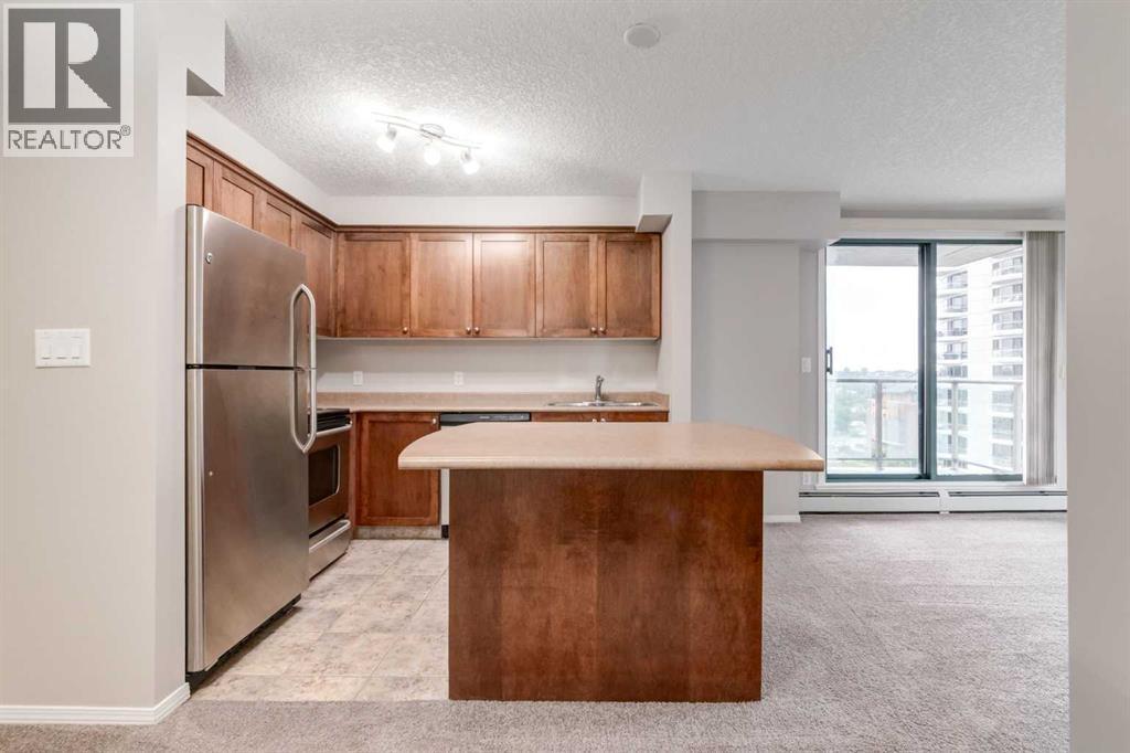 This bright and stylish two-bedroom corner unit offers panoramic views of the Bow River and the surrounding pathway system. Freshly repainted throughout, the home is in excellent, move-in-ready condition. The kitchen features a stainless steel appliance package, a large island, and ample counter and storage space, making it perfect for cooking and entertaining. The open-concept layout features a spacious living and dining area, two generous bedrooms, a full bathroom, and convenient in-suite laundry. Enjoy titled parking in a highly secure building with exceptional amenities, including a full-time concierge, a fully equipped fitness centre, bike storage, and more. Ideally located just steps from downtown, the Bow River pathway, Kensington shops, transit, and some of Calgary’s best dining and entertainment options. Vacant and ready for immediate possession, this is city living at its best. A perfect blend of comfort, style, and convenience for young professionals or investors alike. (id:6769)