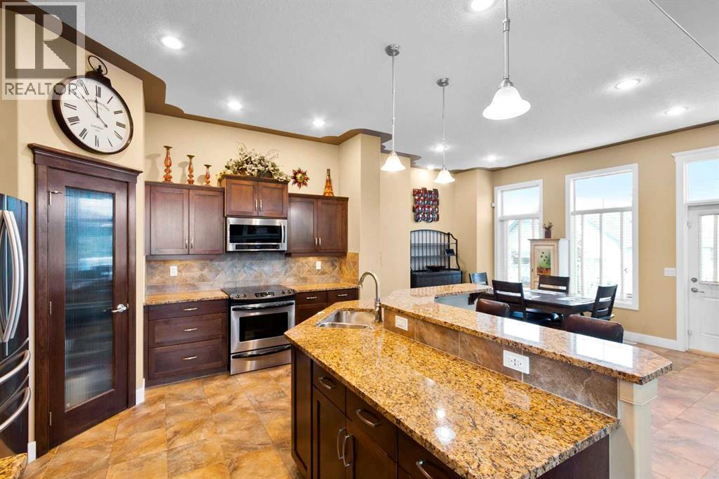 STEP INSIDE AND BE AMAZED! This home is full of surprises with its spacious layout, and thoughtful details, that make it perfect for a growing family. Offering over 3,600 sq ft of finished living space, a fully developed walkout basement, and soaring 10 ft ceilings on the main level, this home has a layout designed for comfort and entertaining. The main level greets you with a grand foyer and open staircase, flowing into a bright living room featuring hardwood floors, custom built-ins surrounding a cozy gas fireplace, and large windows that fill the space with natural light. The kitchen is a chef’s dream with granite countertops, warm wood cabinetry, a walk-in pantry, and a large central island, perfect for entertaining. The dining area flows seamlessly out to an upper deck, perfect for morning coffee or summer BBQs. Upstairs, the vaulted bonus room provides a flexible space for movie nights, or a quiet retreat. Two generously sized bedrooms, a full main bath, and a large laundry room with abundant cabinetry and storage. The primary suite is a private oasis featuring vaulted ceilings, a charming window bench, spa-like ensuite with soaker tub and separate shower, and a walk-in closet. The fully finished walkout basement adds a 4th bedroom, full bathroom, ample storage and a large family room with direct access to your backyard sanctuary. Mature trees, an exposed aggregate patio, and a dog run make this space as functional as it is inviting. Additional perks include central A/C, a garage with a generous amount of storage, and a location on a quiet cul-de-sac. Living in King’s Heights means enjoying scenic walking paths, nearby playgrounds, excellent schools, and convenient access to shopping, restaurants, and commuter routes This home truly must be seen to be appreciated! (id:6769)