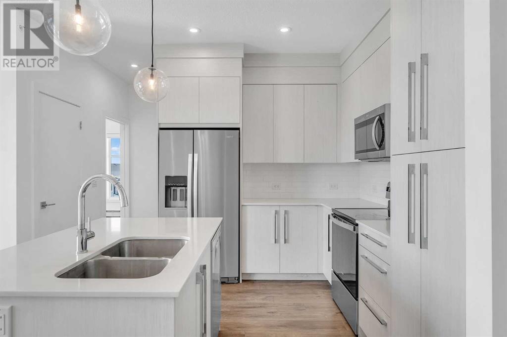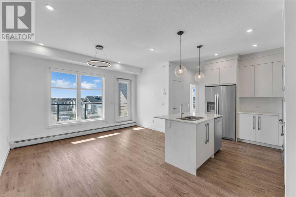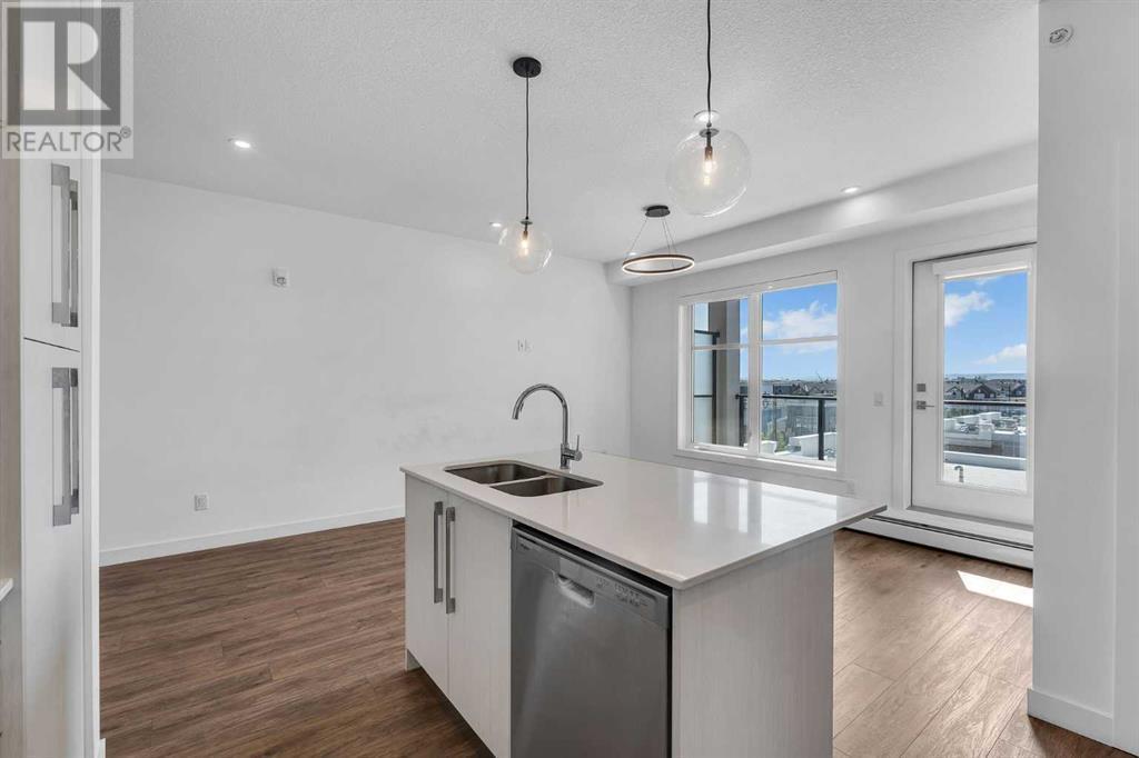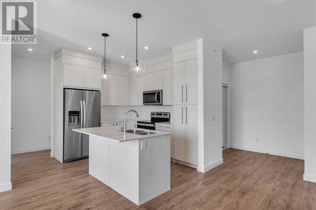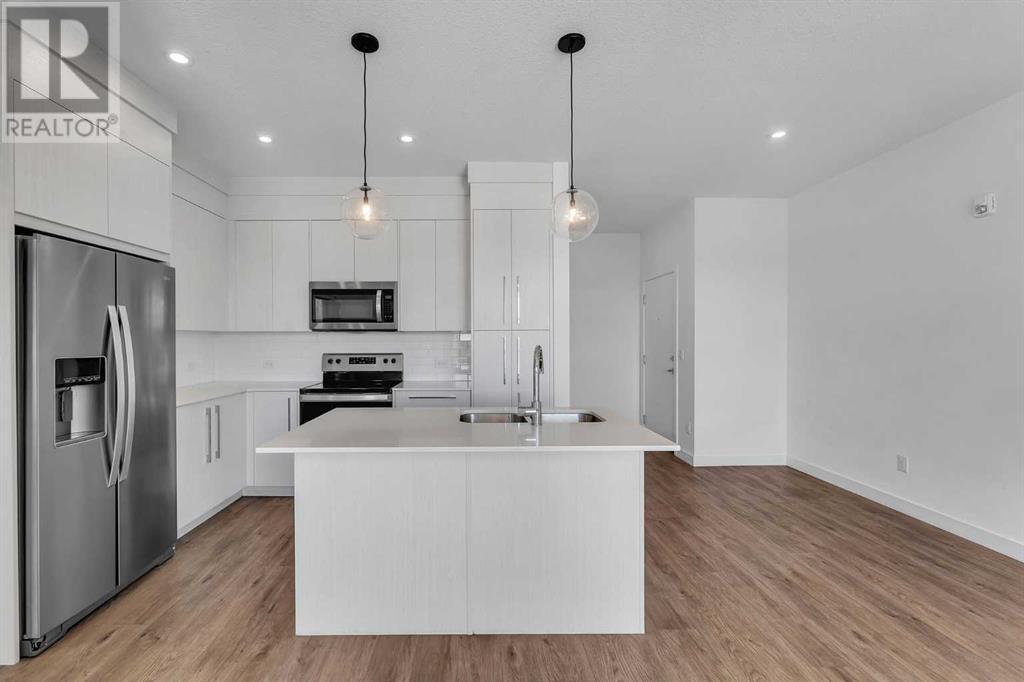 Experience contemporary top-floor living in this stunning corner unit condo by Truman Homes, located in the vibrant heart of Savanna II. This beautifully designed 2-bedroom, 2-bathroom home offers an open-concept layout filled with natural light, thanks to its top-floor corner positioning and a huge balcony. Step into a modern kitchen featuring quartz countertops, stainless steel appliances, and a convenient breakfast bar—ideal for both everyday living and entertaining. The spacious primary bedroom boasts a walk-through closet and a sleek ensuite with a glass walk-in shower. A second bedroom and full bath provide flexible space for guests, family, or a home office.Enjoy luxury vinyl plank flooring throughout—no carpet—and step out onto your massive private balcony, perfect for soaking in panoramic city skyline views. Additional features include secure titled underground parking, access to a fitness center, and elevator convenience.Located just at footsteps from shopping, restaurants, schools, parks, and transit, this condo combines modern comfort with unbeatable convenience. Don’t miss your chance to own this exceptional corner unit—book your private showing today! (id:6769)