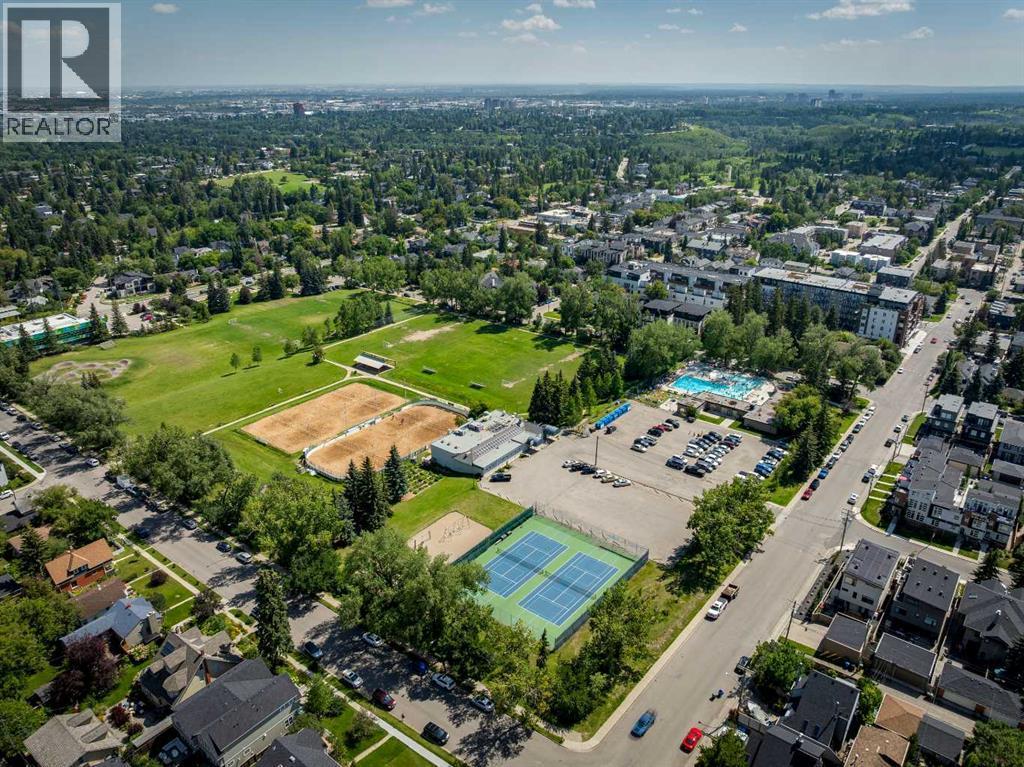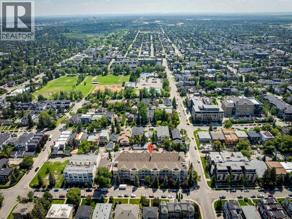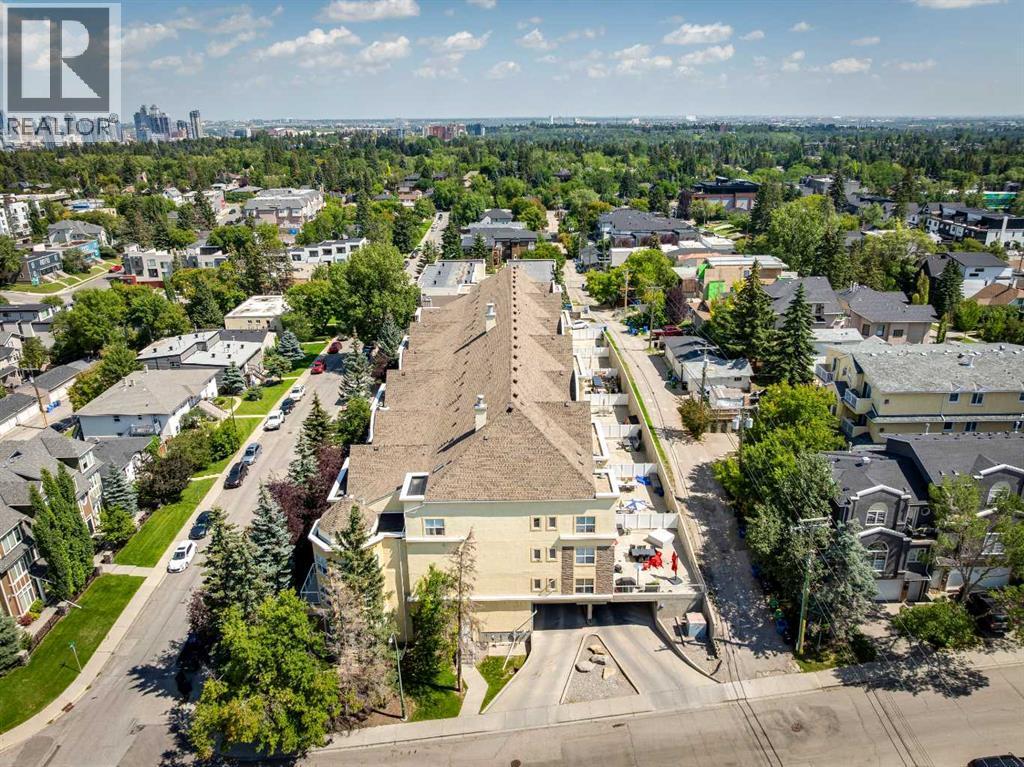 Welcome to this stunning 1,136 sqft TOP FLOOR 2-storey condo in the heart of vibrant Marda Loop, offering 1 spacious bedroom, 2 full bathrooms, a versatile loft, and a long private balcony! Soaring 2-storey ceilings - peaking at an impressive 25 feet - and expansive windows flood the space with natural light, creating an open, airy feel throughout. Step inside to discover thoughtful updates, including fresh paint completed in 2024, new window shades installed in November 2024, and luxurious in-floor heating throughout the entire unit. The sleek kitchen features stainless steel appliances - including a fridge that is 3 years old and a stove that is 5 years old - and opens to a huge living room with a beautiful gas fireplace and a designated dining area, perfect for entertaining. Laminate flooring, updated approximately 7 years ago, adds warmth and durability to the space. The private primary suite is tucked away with direct access to the balcony and a large ensuite bath with a corner soaker tub and a brand-new light fixture. A second full bathroom near the front entry (rare for a one-bedroom home) offers a tub/shower combo for added flexibility, and in-unit laundry (with a washer and dryer just 3 years old) is also included. Upstairs, the bright and spacious loft provides endless possibilities for a guest room, home office, gym, or play area. Enjoy summer evenings on your south-facing private balcony with a gas BBQ hook-up, and take advantage of the titled underground parking stall, secure storage locker, and convenient bike storage. Located just steps from boutique shops, trendy cafés, and some of Calgary’s best restaurants, plus minutes from 17th Avenue, downtown, and fantastic recreational amenities like an outdoor pool, tennis courts, skating rink, ball diamond, and public library - just a few short blocks away! This move-in-ready home is a rare find - book your showing today! (id:6769)