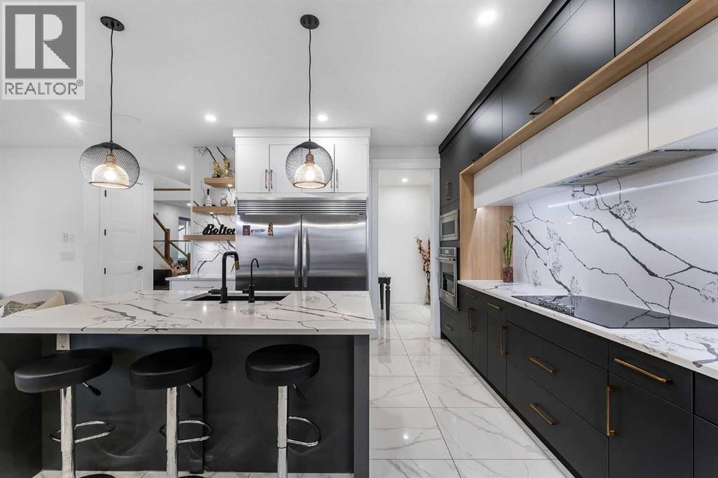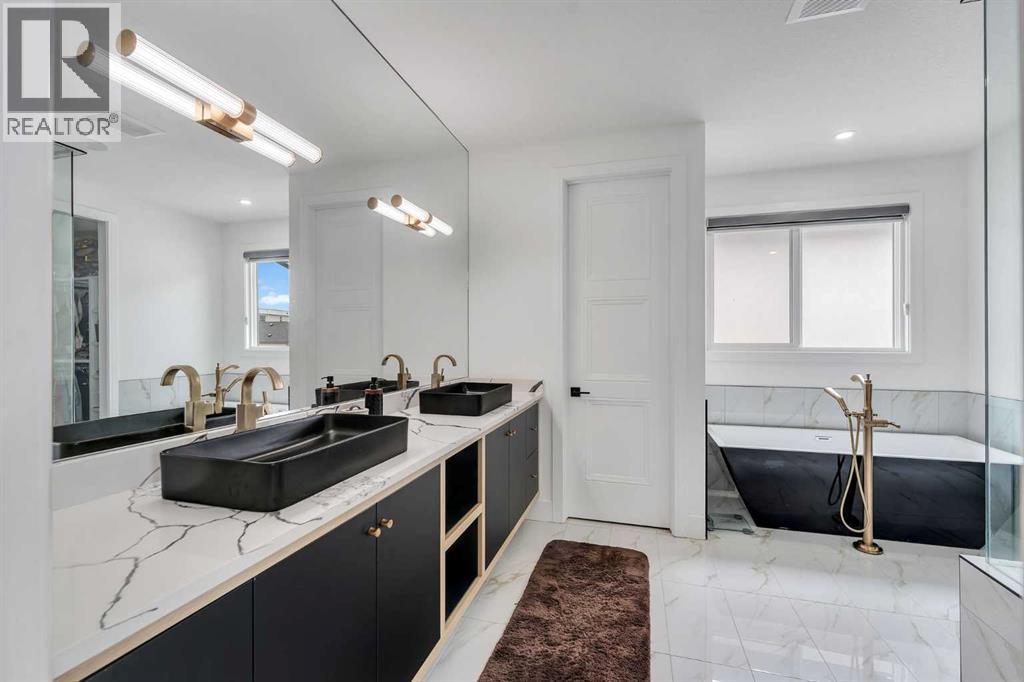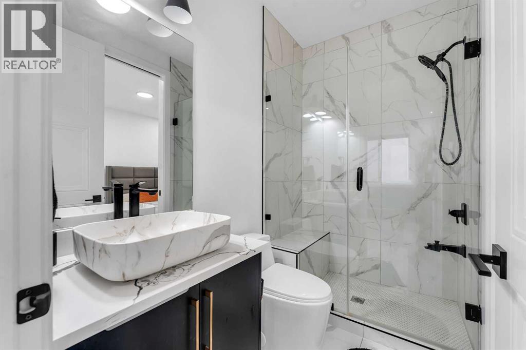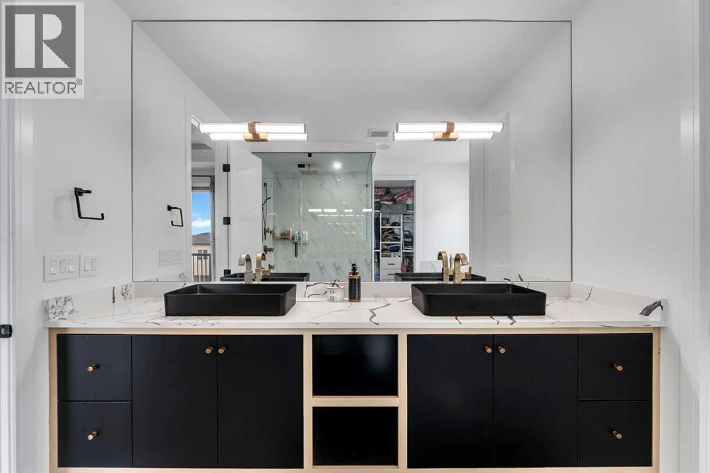 Luxury Living with Income Potential | 8 Bedrooms + Den, 6 Full Bathroom | 2 Basement Suites | Saddleridge (Saddlepeace). Welcome to this exceptional, nearly new luxury home located in the highly sought-after community of Saddlepeace in Saddleridge. Thoughtfully designed with impeccable craftsmanship and loaded with premium upgrades, this residence offers a perfect blend of elegance, functionality, and investment opportunity. As you approach the home, the grand double-door entrance sets the tone for the upscale experience that awaits inside. Step into a bright, open-concept main floor featuring soaring ceilings, a spacious living room, a formal dining area, and a cozy family room—all seamlessly connected to create an inviting atmosphere ideal for entertaining and everyday living. Kitchen is a chef’s dream, showcasing top-of-the-line stainless steel appliances, a massive island, and a 48-inch-wide refrigerator. A separate spice kitchen with a sink and window keeps the main area pristine while enhancing functionality. The main level also features a bedroom with a walk-in closet, a full 3-piece bath, and a custom-built mudroom connecting to the double attached garage, which also includes a convenient side man door. A rear deck provides the perfect spot for outdoor gatherings. Upstairs, elegant glass railings lead to four generously sized bedrooms, including a luxurious primary suite with a double-door entrance, private balcony, custom walk-in closet, and a spa-like 5-piece ensuite complete with a 10-mm glass steam shower and soaker tub. Two additional bedrooms feature their own walk-in closets and private 3-piece ensuites. A second master bedroom offers even more space with a walk-in closet, 3-piece bath, and custom-built cabinetry. The upper-level laundry room includes a built-in sink for added convenience. On the third level, you’ll find a spacious den or man cave complete with wall-mounted speakers and a private balcony, ideal for relaxing or entertaining. This home is equipped for comfort year-round with dual furnaces and a soft water system. The fully developed basement includes two separate suites: a legal 2-bedroom suite and an illegal 1-bedroom suite, each with 9-foot ceilings, full-sized appliances (glass-top stoves, hood fans, refrigerators), and separate laundry areas—ideal for multi-generational living or generating rental income. The property offers ample parking with a wide driveway, perfect for multiple vehicles. The location is unbeatable—just steps from bus stops, Gurughar, and Gobind Sarvar School (K-12). Only 5 minutes to Saddletown LRT and 2 minutes to the upcoming Costco, with quick access to major routes, shopping centers, and essential amenities. Whether you're looking for a luxurious forever home or a smart income-generating investment, this property delivers on all fronts. Don’t miss this rare opportunity to own a truly one-of-a-kind home in one of Calgary’s most vibrant and grow (id:6769)