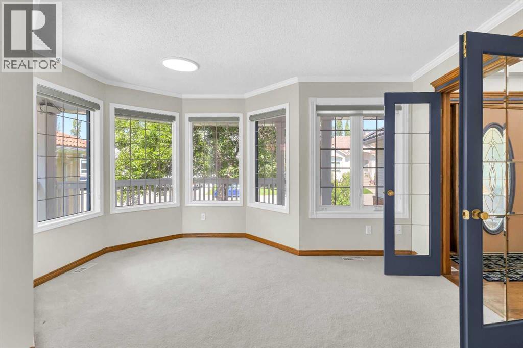 Welcome to Hamptons – where timeless charm meets family comfort.Tucked into a peaceful cul-de-sac and backing onto landscaped green space, this home offers over 3,000 sqft of total living area. As you step through the front door, the freshly painted main and upper floors invite you into a formal living and dining area, bathed in sunlight. Whether it's a family gathering in the bright breakfast nook or cozy evenings by the gas fireplace in the family room, the main level offers space to connect and unwind.The kitchen features stainless steel appliances, a walk-in pantry, and a brand new stove (2025)—perfect for everyday cooking or weekend hosting. Upstairs, you’ll find a spacious den, two generous bedrooms, and a large primary retreat complete with jetted tub, dual sinks, and walk-in closet.The bright basement includes a full bathroom, flexible rec room, and plenty of space for home gym, ping pong, or your next media setup. Notable upgrades include a concrete tile roof (2014), a Garage door (2017) and numerous window replacements (2020) to ensure peace of mind for years to come.Enjoy walking distance to top-ranked schools like Tom Baines & Sir Winston Churchill High, plus quick access to Stoney Trail, Costco, and local parks.This home blends warmth, functionality, and location—your next chapter begins in Hamptons. (id:6769)
