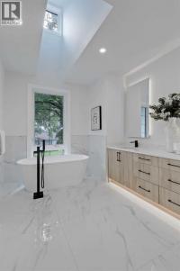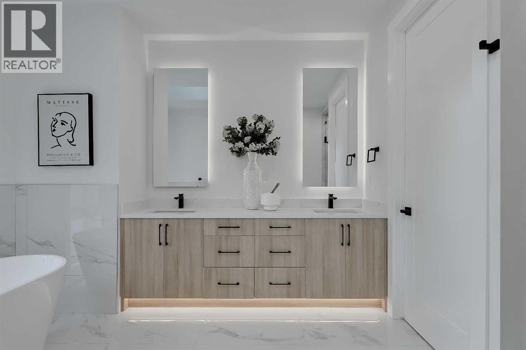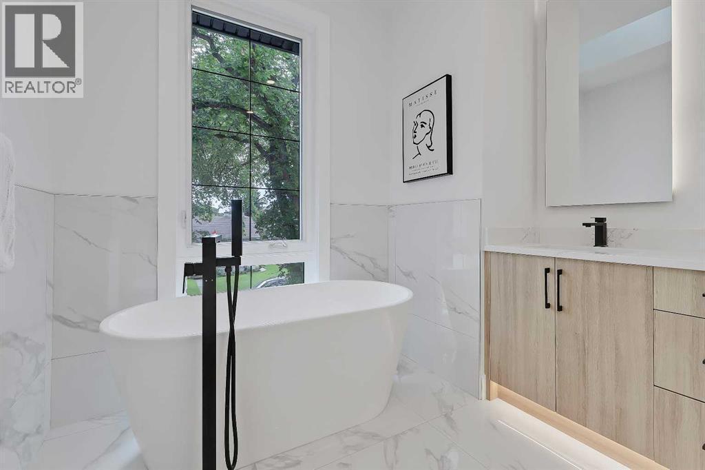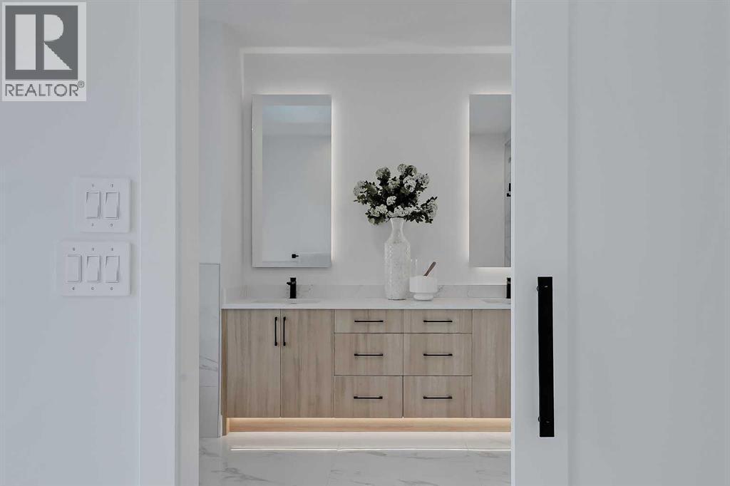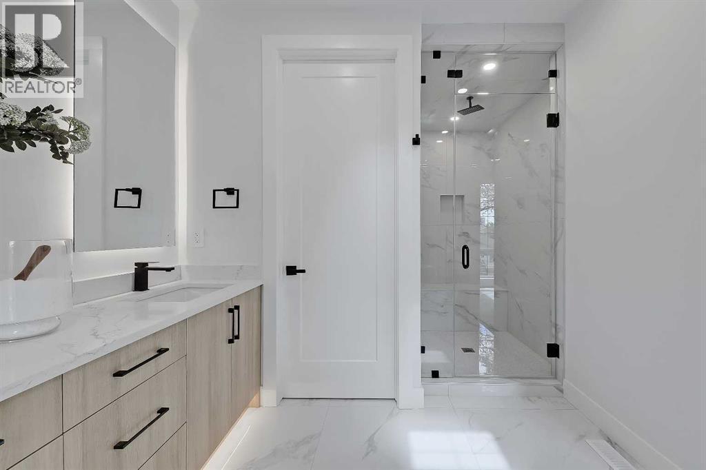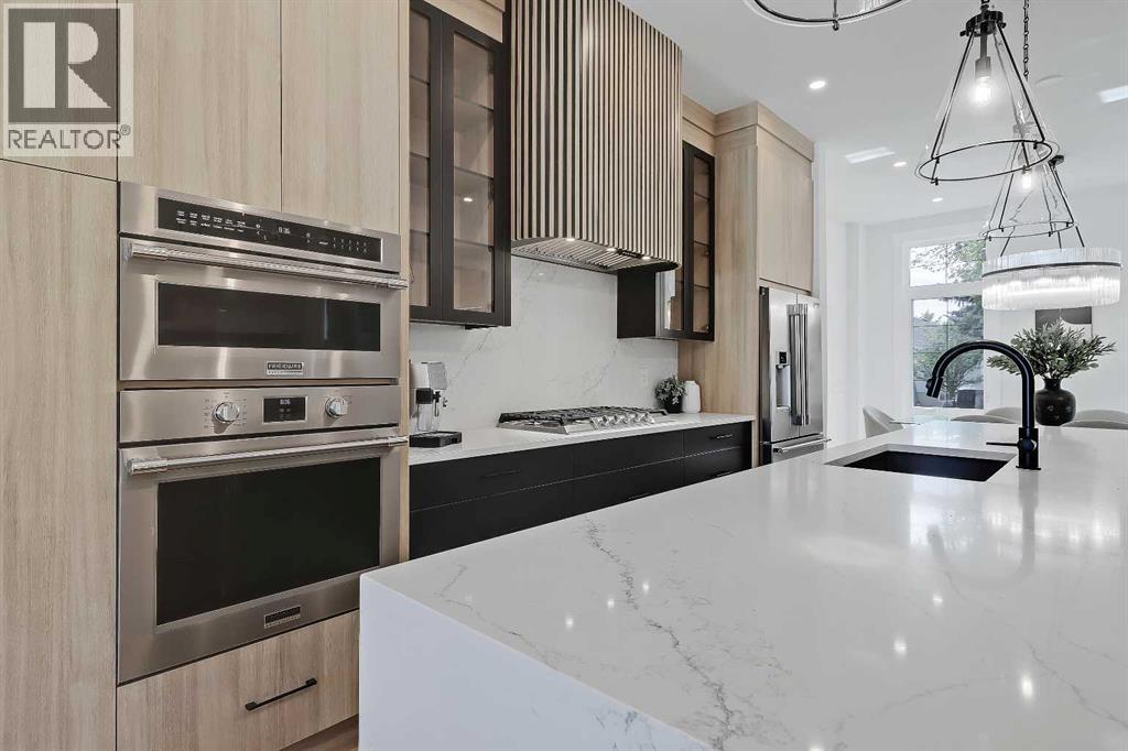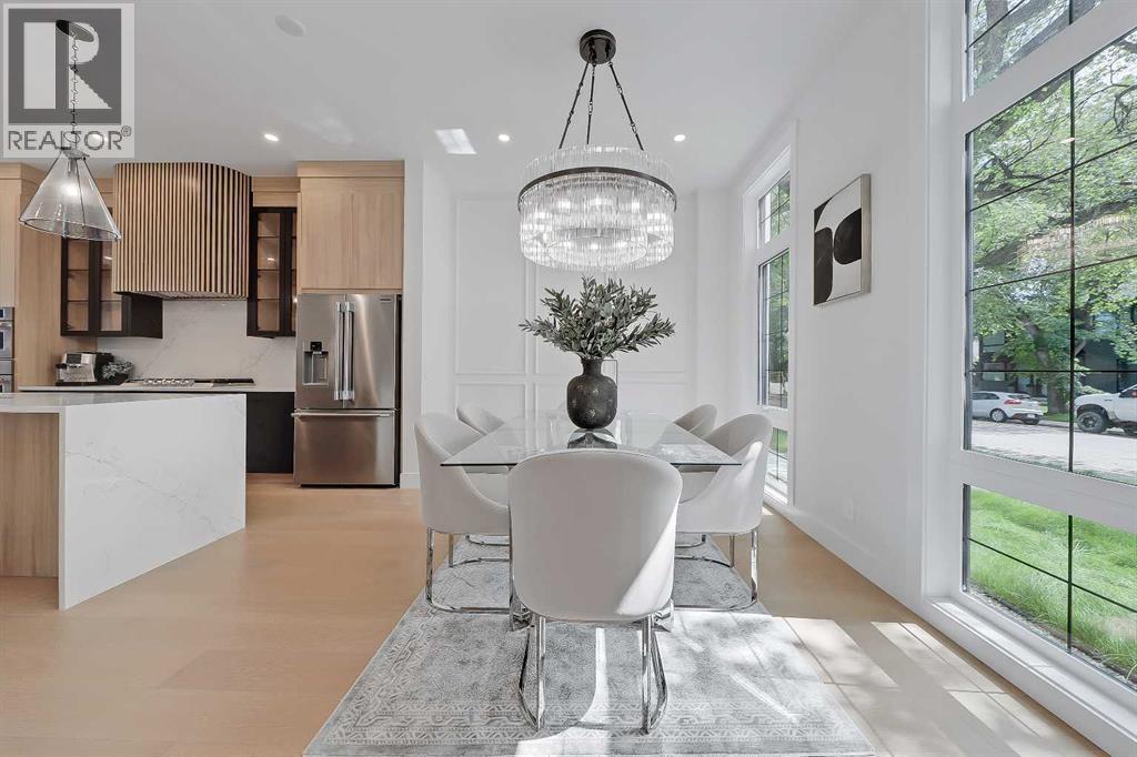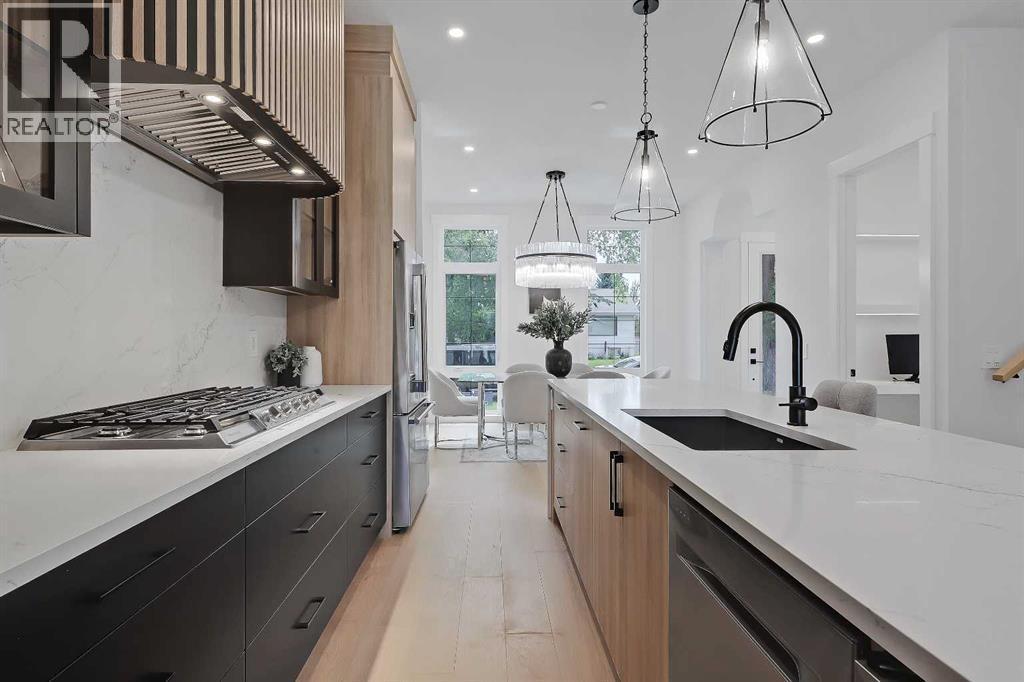 Modern luxury meets timeless charm in this beautifully crafted semi-detached home in the heart of Mount Pleasant. Offering over 1,900 sq. ft. of thoughtfully designed living space above grade, this 3-bedroom, 2.5-bathroom residence blends high-end finishings with family-friendly function and a legal secondary suite (pending final inspection) with 2 bedrooms, 1 bathroom, over 800 sq. ft. of living space, all just steps from Confederation Park and the vibrant 4th Street corridor.The main floor welcomes you with soaring 10’ ceilings, engineered hardwood floors, and custom millwork throughout. The open-concept living and dining area is anchored by a sleek gas fireplace with built-in shelving and large sliding glass doors that open to a bright facing backyard, perfect for indoor-outdoor living.The chef’s kitchen is a showstopper, complete with premium stainless steel appliances, a custom range hood, quartz countertops, a central island with seating, and full-height cabinetry.A pocket office with a built-in desk and shelving is located near the front and at the rear, a mudroom with built-in storage keep day-to-day life organized and clutter-free.Upstairs, the primary retreat impresses with vaulted ceilings, a large walk-in closet, and a spa-like ensuite with heated tile floors, dual vanities, a glass shower, freestanding soaker tub, and private water closet. Two additional bedrooms with custom closets, a laundry room with sink and cabinetry complete the second floor.This home also features a 2-bedroom legal secondary suite (pending final inspection), offering its own private side entrance for added privacy and independence. Designed with the same elevated finishings as the main level, the suite includes a stylish full kitchen, open-concept living and dining area, a sleek 4-piece bathroom, and dedicated laundry with a built-in sink. Whether you're accommodating extended family, welcoming long-term guests, or exploring rental opportunities, this flexible space adds bo th function and future value.Located on a quiet, tree-lined street in one of Calgary’s most sought-after communities, you’re just steps from parks, walking paths, top-rated schools, and popular local spots like Velvet Café, 4th Spot Kitchen & Bar, and Milk Ice Cream. Quick access to 16th Ave, 14th Street, and transit makes commuting a breeze.This is your opportunity to own a brand new, upscale home in a neighbourhood that truly has it all. (id:6769)