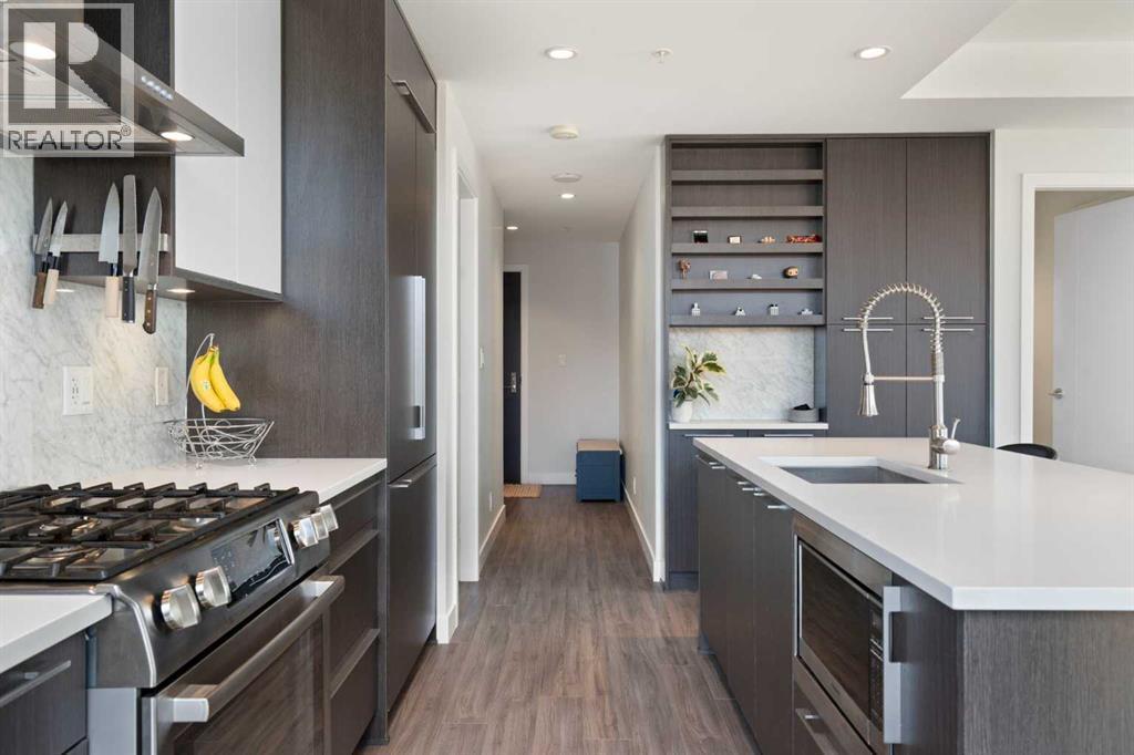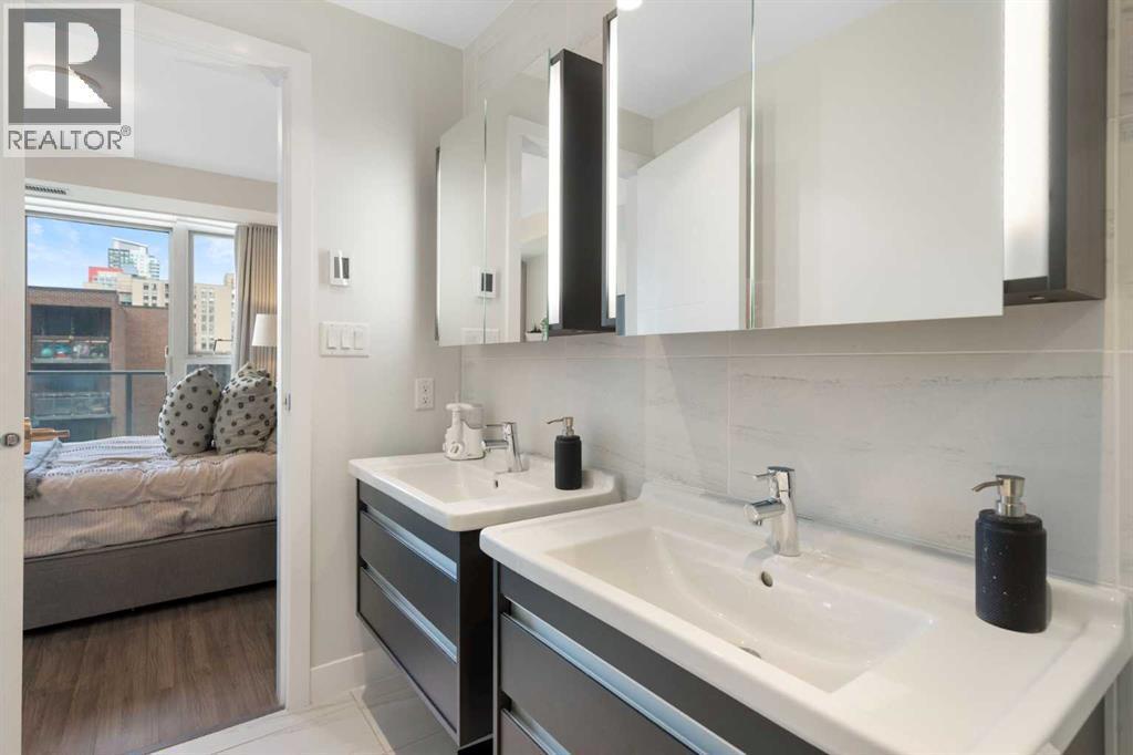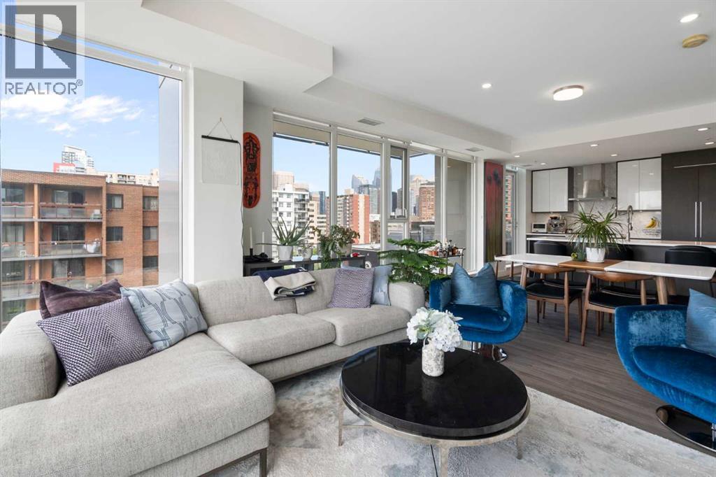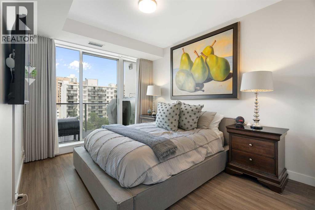Welcome to The Royal—one of the Beltline’s most prestigious and modern high-rises. This building was designed to provide residences with luxurious and comfortable living. This NW 2 bedroom and 2 bathroom corner unit features a BRIGHT open concept design, large flexible living space (kitchen/dining area/ living room) and floor to ceiling windows which showcase the great downtown and west views of the Calgary skyline. The chef inspired kitchen is fully equipped with high end appliances, quartz counter tops and plenty of storage. Other features include A/C, a gas line on the huge balcony and in-suite full sized laundry. The large primary bedroom fits a king sized bed and has a walk-in closet, 4 piece spa like en-suite with large shower and double vanities. The 2nd bedroom is spacious and can be used as an office. Other features include 1 secure underground parking stall (close to the elevator) and separate storage locker located on the 2nd floor. NEW black out drapes in both bedrooms. Residents can enjoy the many amenities including a fitness center, steam room, sauna, squash court, 24 hour CONCIERGE/security, outdoor courtyard and private dining and social room. Located just off 17th avenue, residents are within walking distance of some of Calgary's best restaurants, cafes, and shops. Not to mention you are right above a Canadian tire and an Sobeys grocery store. This great suite is in one of Calgary's most sought-after neighborhoods and caters to the needs of modern-day living. Book your viewing today. This is a pet friendly building with board approval! (id:6769)