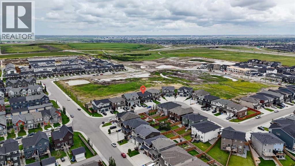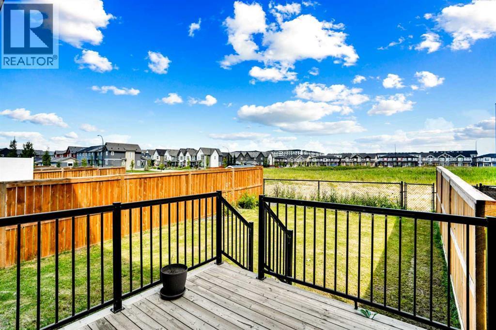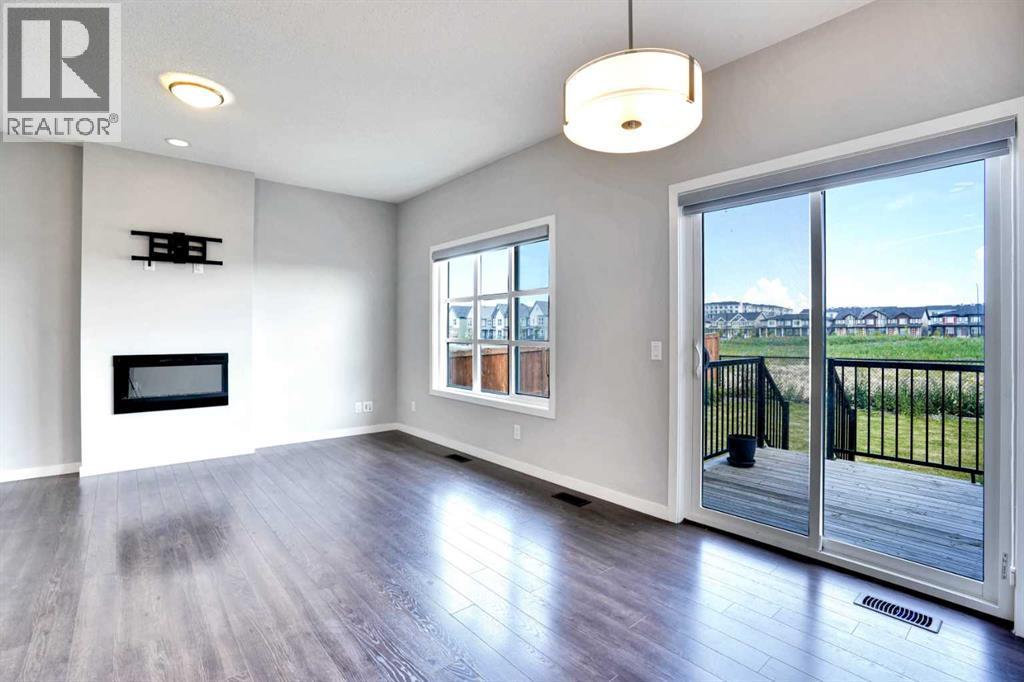 Welcome to this beautifully finished semi-detached home in the tranquil community of Carrington.Backed onto a serene green space, this recently built property offers over 2,301 sq. ft. of total livable space, thoughtfully designed for comfort, style, and everyday living. Impeccably maintained and tastefully upgraded, the home combines modern elegance with practical functionality.The main floor welcomes you with 9-ft ceilings and an abundance of natural light through large windows and patio doors. The newly added gourmet kitchen features a chimney hood fan, built-in microwave, crown-molded cabinetry, stylish tile backsplash, a spacious walk-in pantry, and a functional island—perfect for both cooking and entertaining. The open-concept living and dining areas are enhanced by lovely laminate flooring, neutral grey tones with crisp white trim, and a cozy fireplace. A convenient half bath completes this level.Upstairs, the primary suite includes a generous walk-in closet and a luxurious 5-piece ensuite with a standing shower, double vanity, and soaker tub. Two additional bedrooms, a well-appointed 4-piece bathroom, and an upstairs laundry room offer both comfort and convenience for the whole family.The fully finished lower level expands your living options with a spacious multi-purpose room and a 4-piece bathroom - ideal as a home gym, media room, or guest space.Additional highlights include an oversized driveway, peaceful green space views, and a stylish, move-in-ready interior. Perfect for families seeking space, quality, and modern living, this home is ready to welcome its next chapter. (id:6769)
