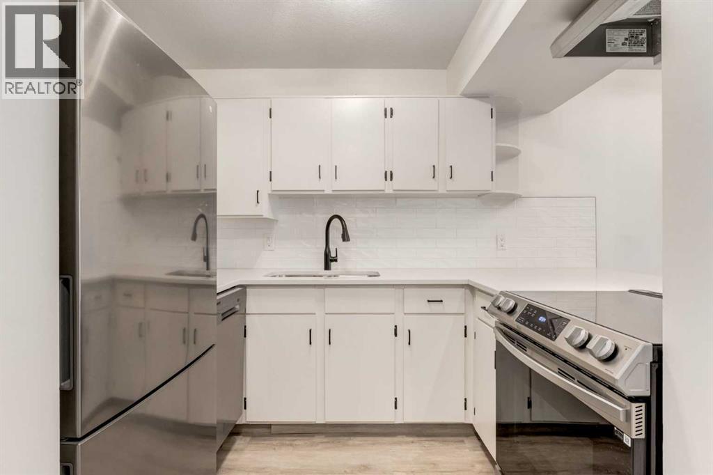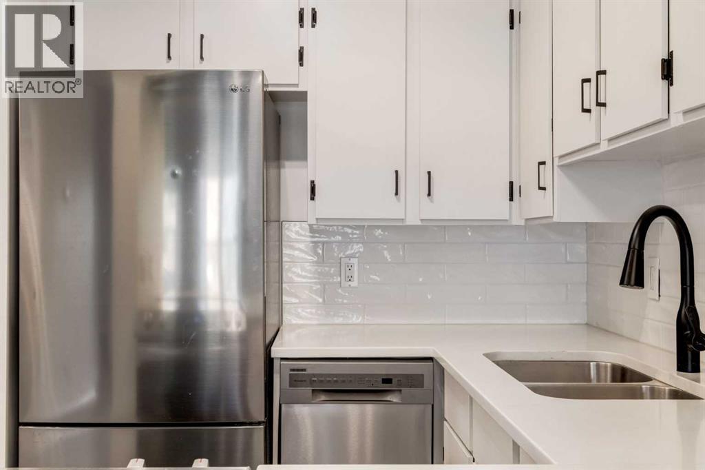 Live your best inner-city life in this fully renovated, move-in-ready 2-bedroom condo, perfectly perched on the Bow River in the heart of Mission—one of Calgary’s most walkable and vibrant neighbourhoods.Set on the second floor with serene views of the courtyard and river from every window, this 613 sq ft home has been thoughtfully updated from top to bottom. The popcorn ceilings have been flattened, brand new flooring runs throughout, and the entire space is freshly painted in crisp white. The kitchen has been refreshed with a new counter, painted cabinetry, stylish new backsplash, and a full suite of brand-new appliances—including washer, dryer, fridge, electric stove, dishwasher, and range hood.The open-concept living area features a breakfast bar and opens to a spacious balcony—ideal for your morning coffee or unwinding with a view. Updated lighting inside and out (including the balcony), plus refinished railings, elevate the space even further.The primary bedroom offers generous closet space with sleek new mirrored sliding doors, while the second bedroom or den includes a charming refinished window seat and tranquil river views. The fully renovated 4-piece bath features new tile, a new vanity, and a brand new tub.Extras include in-suite laundry, added storage, a heated underground parking stall, bike storage, and even a car wash bay. The building is professionally managed with reasonable condo fees.Nothing left to do but move in! (id:6769)