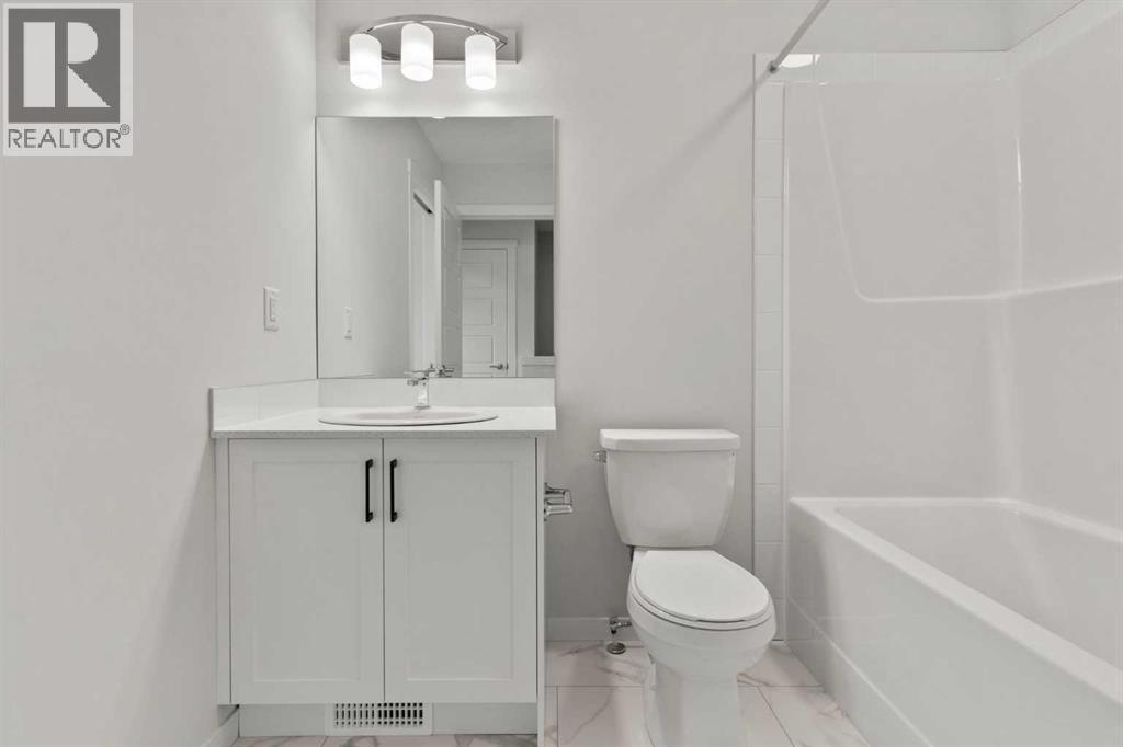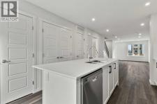 Welcome to the Ambrosia at ZEN Livingston – a stylish, energy-efficient townhome built by a NET ZERO builder! Offering 1,095 sq ft of thoughtfully designed living space, this 2 BED, 2.5 bath home features TRIPLE-PANE windows, advanced insulation, and a rough-in for solar panels – all contributing to lower utility bills and year-round comfort. The OPEN CONCEPT main floor showcases Cicero Luxury VINYL PLANK flooring, pot lights with knock-down ceilings, and a BRIGHT LIVING AND DINING area that flows into your BACKYARD that is FULLY FENCED, perfect for those with kids, pets or wanting to enjoy some privacy — complete with BBQ GAS LINE, landscaping, and irrigation. The modern kitchen includes white ice QUARTZ COUNTERTOPS and a 6-piece Whirlpool appliance package. Upstairs, you'll find two spacious bedrooms including a primary suite with an ensuite bathroom, upstairs laundry and an additional 4-pc bath. Enjoy HARDIE BOARD siding (hail/fire-resistant), and be part of a vibrant community just steps from the Livingston Hub with splash park, rink, courts & more! Quick access to Stoney Trail (3 min), YYC Airport (13 min), and CrossIron Mills (11 min). AIRBNB friendly! Photos are representative. Visit the showhome at 56 Livingston Parade NE. (id:6769)