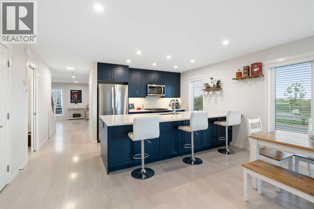 This beautifully finished end-unit townhome offers exceptional privacy, thoughtful design, and premium upgrades throughout. The kitchen features an extended island with a matching quartz backsplash, upgraded appliances, sleek under-cabinet lighting, and extra storage—perfect for everyday living or entertaining guests in style.Two spacious primary bedrooms provide comfortable, private retreats, while the top-floor bonus room offers flexible space ideal for a home office or guest suite which is complete with a rough-in for a future wet bar that leads directly to your private wrap-around rooftop patio. It’s the ultimate indoor-outdoor entertaining space with panoramic views and all-day sun. Central air conditioning ensures year-round comfort, and thoughtful design elements like hidden storage under the island maximize functionality without sacrificing aesthetics.Enjoy breathtaking, unobstructed views of the surrounding parks from your expansive wrap-around rooftop patio—a perfect place to relax, entertain, or simply soak in the tranquility. The private fenced backyard adds an additional outdoor oasis, ideal for pets, children, or weekend gatherings with friends and family.Additional highlights include a fully fenced backyard, central air conditioning, and a stylish, low-maintenance design throughout. Plus, the condo board allows short-term rentals, offering incredible potential for Airbnb, VRBO, or flexible investment income.Nestled in the heart of the sought-after community of Seton, this home offers convenient access to shopping, top-rated schools, a variety of restaurants, and the popular Seton YMCA. Nearby dog parks add to the appeal, and the South Health Campus is just minutes away, providing exceptional convenience in a vibrant, well-established neighborhood. (id:6769)