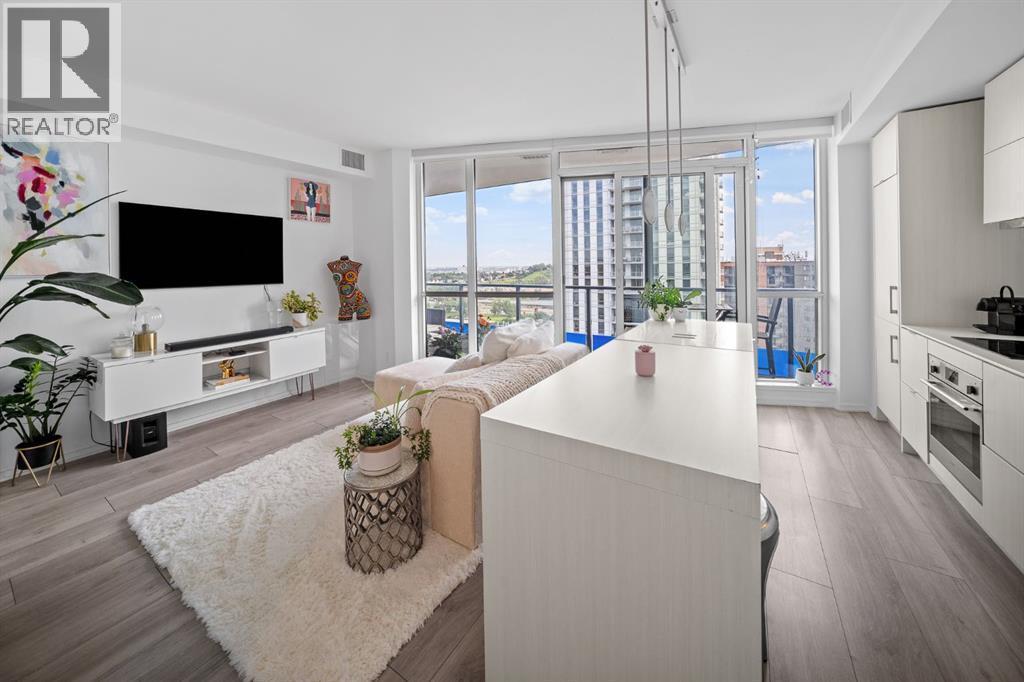 Welcome to The Verve — one of East Village’s most sought-after addresses. This stylish 1-bedroom, 1-bathroom residence blends modern design with unbeatable Bow River views.Step inside to an open, thoughtfully designed layout, perfect for both relaxing evenings and hosting friends. The kitchen is a showpiece, with sleek white quartz countertops, integrated appliances, and a spacious island that invites gathering. Floor-to-ceiling windows flood the living space with natural light and frame a picture-perfect river view, while wide-plank flooring, designer lighting, and a generous balcony add to the contemporary appeal.The Verve offers an exceptional lifestyle with amenities that truly set it apart: a state-of-the-art fitness centre, 6th-floor indoor lounge with fireplace and media area, expansive outdoor patio, BBQs and firepit, rooftop terrace on the 25th floor, guest suites, secure bike storage, visitor parking, and the convenience of full concierge service. As well a leased parking stall paid up to January of 2026 at 130 per month.From your door, you’re just steps to the LRT, Central Library, Studio Bell, Stampede Park, Bow River Pathway, and an array of local dining and entertainment.This is your chance to own a home with a view and a lifestyle to match. (id:6769)