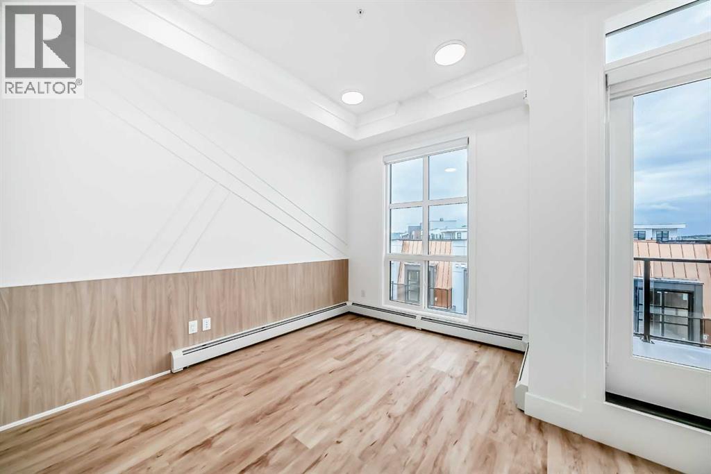 Be the first to call this newly built, never-occupied home yours! Located in the award-winning University District, this top-floor unit with 427.8 square feet of living space offers the perfect blend of style, comfort, and convenience. Step inside to a bright entrance area that leads you into a beautifully designed kitchen featuring quartz countertops, a panel-ready fridge & dishwasher, soft-close cabinetry, and modern fixtures. The open layout flows into the cozy living area, where huge windows flood the space with natural light and showcase sweeping top-floor views. Step out onto your private balcony to enjoy fresh air and an elevated perspective of the vibrant community. The bedroom offers a peaceful retreat with ample space and easy access to the elegant 4-piece bath. Every detail, from the California Knockdown ceilings to the carefully curated finishes, reflects modern craftsmanship. This home comes with titled underground parking for your convenience and is part of an amenity-rich building—enjoy access to inviting common areas designed for connection and relaxation. Outside your door, the University District’s walkable streets offer boutique shops, dining options, parks, green spaces, and scenic walking paths. Plus, you’re just minutes from the University of Calgary, Market Mall, Foothills Medical Centre, and countless lifestyle amenities. Whether you’re a first-time homeowner, an investor, or looking for a stylish city retreat, this property offers a fresh start in one of Calgary’s most sought-after communities! (id:6769)