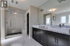 TRANQUIL VIEWS OF THE POND | FULLY DEVELOPED 5 BDRM HOME WITH AN ABUNDANCE OF UPGRADES | NO NEIGHBOURS BEHIND YOU | This gorgeous home is nicely located on a quiet street, featuring a south backyard with no neighbours behind you & has a long list of fabulous upgrades! The main level, bright with an abundance of natural light, welcomes you in to a large foyer with oversized tile flooring & opens to a spacious & inviting floorplan. The gourmet kitchen showcases a ceiling detail bulkhead, full height cabinetry in a rich dark tone that is contrasted with the soft, neutral arabesque custom tile backsplash & elegant granite countertops. The stainless steel appliances include a sleek ceramic cooktop & built-in oven & microwave; there is a central island as well as a peninsula style island making this kitchen not only stunning but also highly functional…plus there is a walk-through pantry! The peninsula island offers an eating bar & overlooks the large dining area that opens to the sunny backyard. Finished with beautiful hand-scraped hardwood flooring throughout the living & dining areas, while the living room features a stylish gas fireplace with raised hearth…this space is warm & inviting, creating a perfect atmosphere for quiet family time or entertaining guests, offering views of green belt & pond! Completing this main level is a private den with sliding pocket doors. Upstairs is sure to please as well…there is a generous sized bonus room with built-in dry bar with beverage fridge; the sliding barn door creates an ideal separation for the “kid’s area” where you will find 3 bedrooms, separated by a 5pc bathroom with dual sinks, as well as a built-in homework station! The Master bedroom, located at the rear of the home, offers fantastic views of the pond & has a lovely spa-like ensuite…freestanding bathtub with a modern full height subway tile feature wall, dual vessel sinks, & custom tiled shower with 10mm glass…plus a walk-in closet with custom built-in organi zers! You will enjoy the convenience of the upper laundry room with expansive counter space & lower cabinets! The lower level, professionally finished, is host to a huge open family/rec room, 5th bedroom & full bathroom. This home is also wired with in-ceiling speakers on all 3 levels, central A/C…plus it is pet-free & smoke-free! The south backyard can become your private oasis…fully fenced & landscaped with a full-width skirted deck…and no neighbours behind! Enjoy this amazing home in a desirable 4 season community that offers great access, endless shops, restaurants & services…plus nearby community schools! (id:6769)