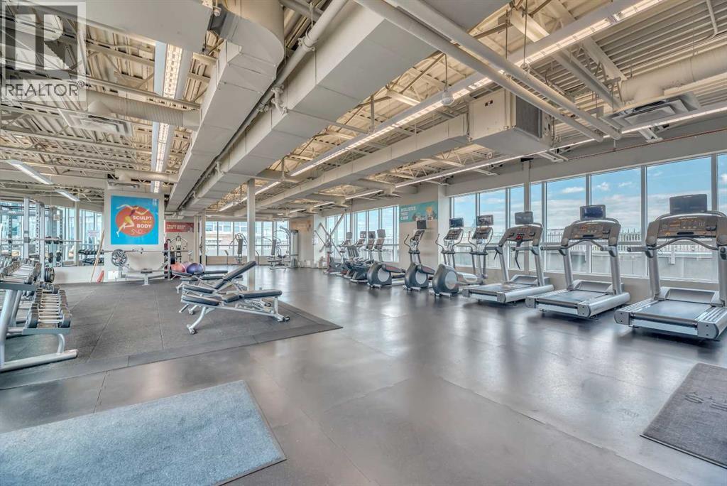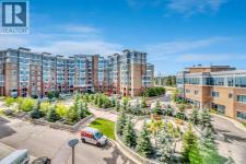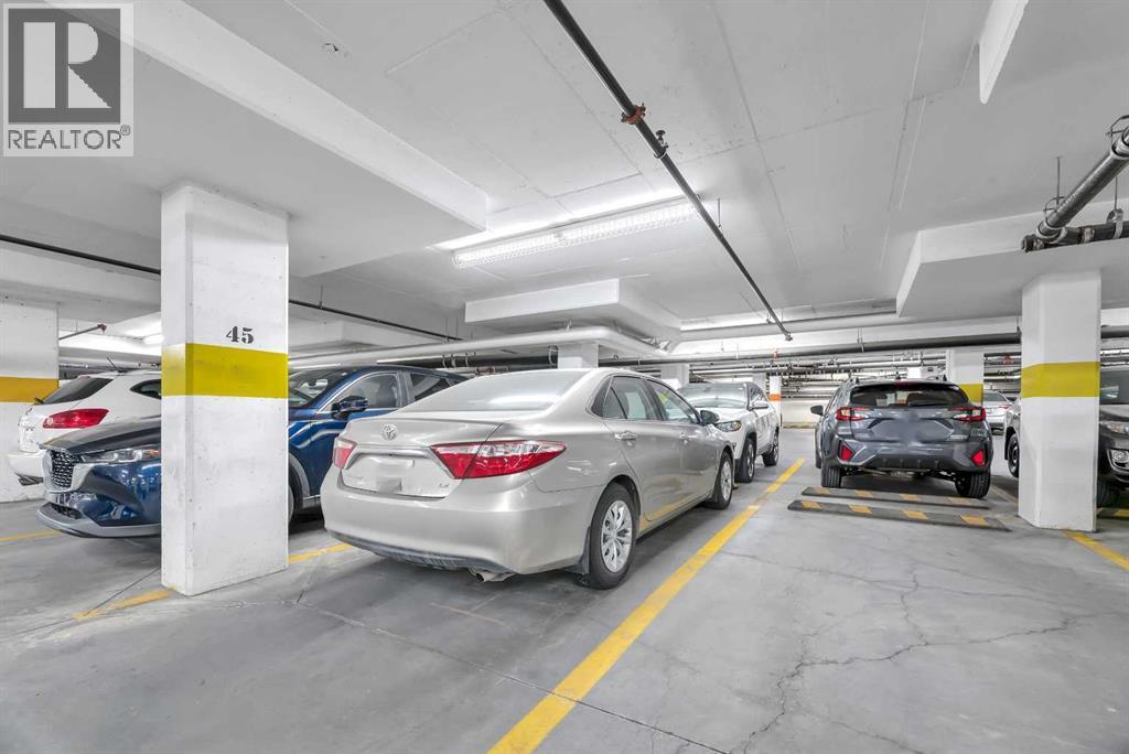 BRIGHT OPEN PLAN, CORNER UNIT WITH EXTRA WINDOIWS, FACING ONTO THE QUIET COURTYARD, WITH SW EXPOSURE. This condo has one of the best layouts in the complex with over $20K in upgrades and a plan that's excellent for furniture placement. Step into the home and enjoy the open plan, with 9' knockdown ceilings throughout, engineered hardwood floors in the main areas, carpet in the bedrooms and ceramic tile in the foyer, kitchen and bathrooms. The living and dining room areas are very spacious, perfect for entertaining or enjoying quiet evenings at home. This steel and concrete building is well placed in Varsity and a 10 minute walk to the LRT platform The two bedrooms are conveniently separated by the main living area, giving extra privacy to each bedroom. The primary bedroom has a 4 piece bath, dual sinks, custom toilet, big walk in closet and quartz counters. The second bathroom is a 4 piece conveniently located close to the second bedroom. OPEN KITCHEN LAYOUT with a massive quartz counter island, lots of drawers and cabinets, stainless steel appliances and an undermount sink. Enjoy the convenience of a separate laundry room with additional storage. Additional features include unit-controlled heating and CENTRAL AIR, custom window coverings and assigned separate storage locker in the underground parking area(#9261). Parking stall #45 is only steps away from the elevator and very close to the entrance overhead door. Monthly condo fees cover heat, water and sewer. Jump on the elevator in your sweats and ride up 5 floors, WITHOUT STEPPING OUTSIDE, to access world-class amenities...fitness center & steam rooms, meeting room & wrap around rooftop terrace with views of the mountains, Canada Olympic Park & Nosehill Hill Park. There is an on-site medical center with pharmacy & walk-in clinic. The best in maintenance-free living here in this premier location in one of NW University District, hospitals(Foothills Medical Centre, Alberta Children's and Arthur J.E. Child Cancer C entre), Bowmont Park, major retail centers, highly rated schools & easy downtown access. EXCELLENT VALUE!! QUICK POSSESSION. (id:6769)