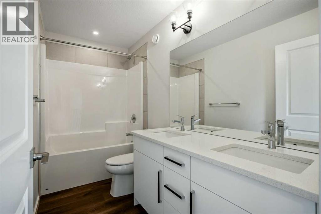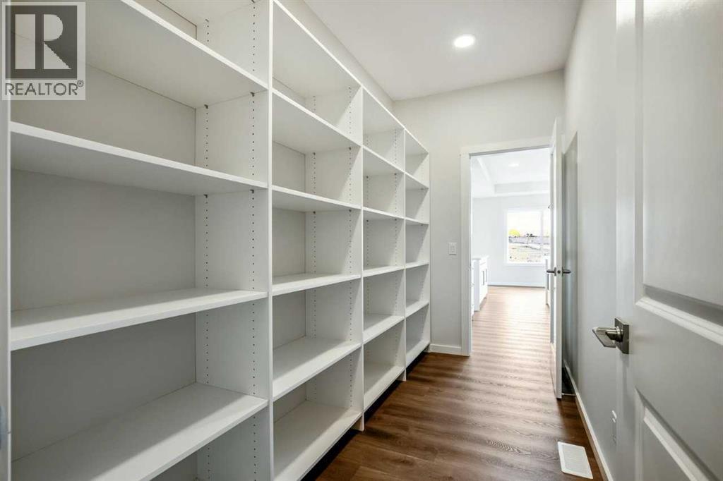 This Remi Model by Bedrock homes is situated on a beautiful corner lot with Mountain views! This model features a welcoming front foyer with open to above, a central flex room on the main floor, and a walk-through mudroom and pantry leading straight to the designer kitchen. The kitchen features coffered ceilings for an elegant feeling with a large island that opens up to the dining area and great room, great for a gathering space! The open to above staircase will lead you upstairs to find two secondary bedrooms with a full bathroom at the front of the home, a central bonus room, laundry, and a large primary suite. Last but not least primary bedroom features a spacious four-piece ensuite with a water closet, dual vanities, and a soaker tub, and conveniently leads straight to the large walk-in closet. Photos are representative. (id:6769)