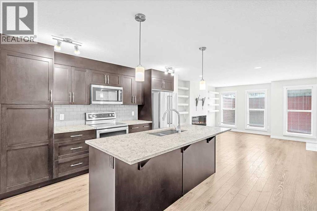 LARGE PRICE REDUCTION - LOWEST $/SQ FT available in Cranston - Don't miss out! Immediate possession available! Welcome to 523 Cranford Mews SE! This beautifully updated end-unit lower-level condo with parking and low condo fees is move-in ready and shows 10/10! Recently renovated with fresh paint and new tile flooring, this home is perfect for first-time buyers, downsizers, or savvy investors. Step inside to a spacious, open-concept floorplan that’s both functional and stylish. The kitchen features elegant quartz countertops, stainless steel appliances, ample cabinet space including a pantry and a large island complete with a granite sink and built-in dishwasher—ideal for cooking and entertaining. The dining area easily accommodates a full-size table, perfect for family dinners or hosting guests. The living room is bright and inviting, anchored by a cozy electric fireplace, creating a warm and comfortable atmosphere. This unit offers two generous bedrooms, including a massive primary suite with a walk-in closet and a private 4-piece ensuite. A second full bathroom provides convenience for guests or a roommate. Additional features include in-suite laundry, a private patio with a gas BBQ hookup, and the benefits of being an end unit, offering more natural light and added privacy. Located in the vibrant community of Cranston, you'll love being part of a master-planned neighbourhood known for its family-friendly atmosphere and exceptional amenities. Enjoy easy access to parks, pathways, schools, and shopping, with Century Hall, Cranston’s community centre, offering year-round activities, a splash park, and tennis courts. Plus, you're just minutes from Fish Creek Park, South Health Campus, and the amenities of Seton Urban District. Don’t miss your chance to own this beautiful home in one of Calgary’s most sought-after communities. Schedule a private showing today! (id:6769)