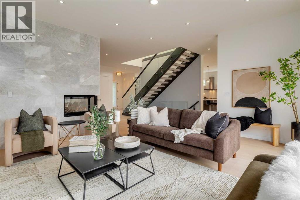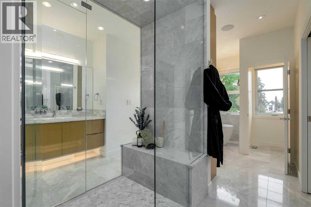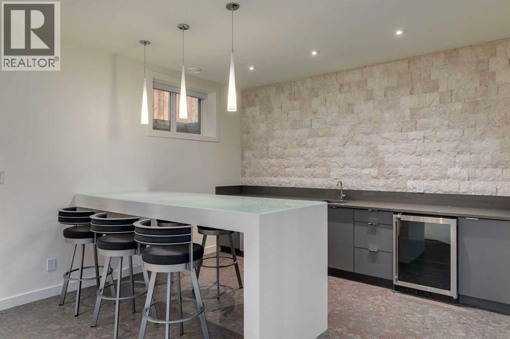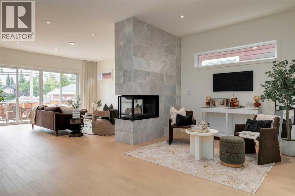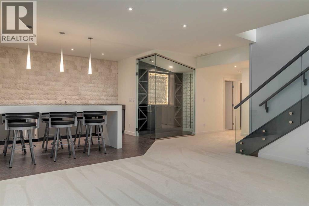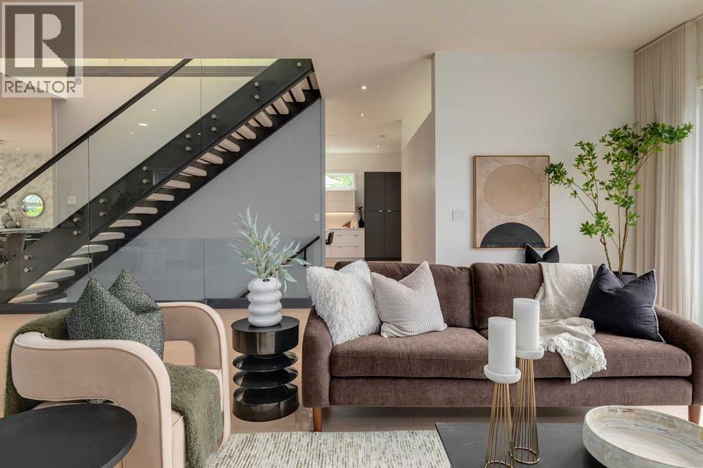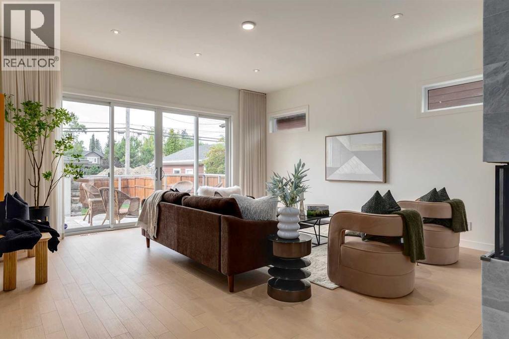 Nestled on a full 50x121 ft lot in the prestigious community of North Glenmore Park, this exceptional residence combines timeless elegance with modern sophistication. Boasting over 3,200 sq.ft. above grade, the home is designed for both refined living and effortless entertaining, offering 3 spacious bedrooms upstairs, an additional bedroom on the lower level, and 4 beautifully appointed bathrooms. Every detail has been thoughtfully curated, with upgrades including motorized blinds, Lutron smart lighting, a state-of-the-art security system with cameras, newly installed dual central A/C units, water softener and filtration, steam shower, heated floors, built-in surround sound, custom holiday lighting, and irrigation. The main level showcases a stunning open riser staircase with glass railings, a gourmet kitchen with premium finishes including a butler's pantry, formal dining, a private office, and expansive glass doors that open seamlessly to the sun-drenched south-facing backyard. The lower level is an entertainer’s dream with a custom wet bar, temperature-controlled wine display, home gym (or optional 5th bedroom), spa-inspired bathroom, and generous storage. Outside, a heated 3-car garage with EV rough-in completes the package. Perfectly located just steps from River Park and Marda Loop, with premier schools, boutique shops, fine dining, golf, and endless pathways nearby, this is a rare opportunity to experience luxury living in one of Calgary’s most sought-after neighborhoods. (id:6769)
