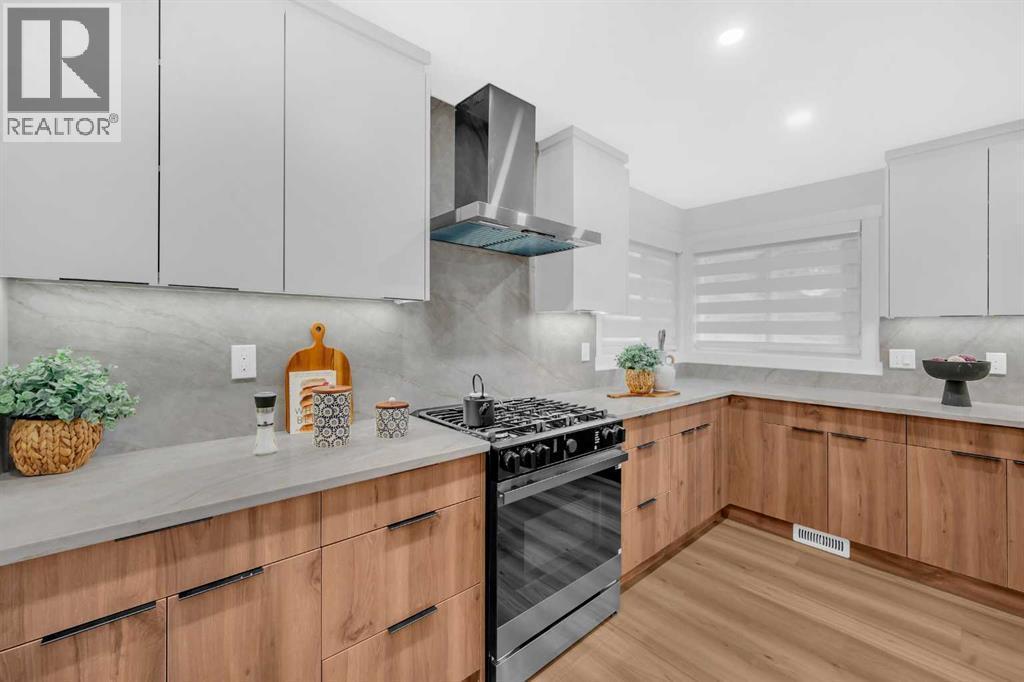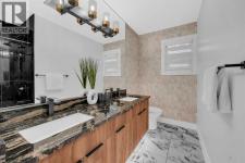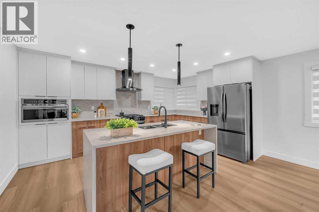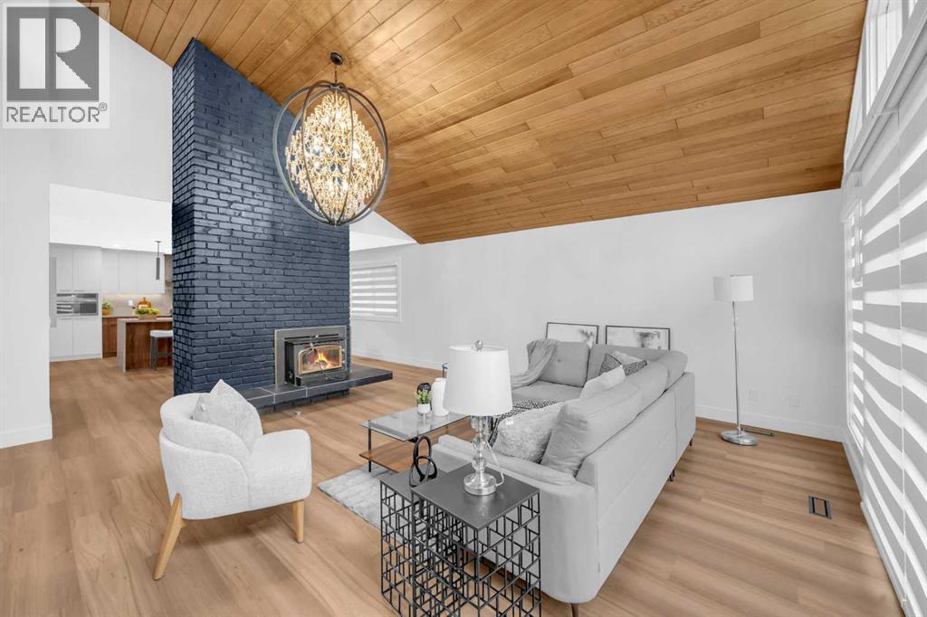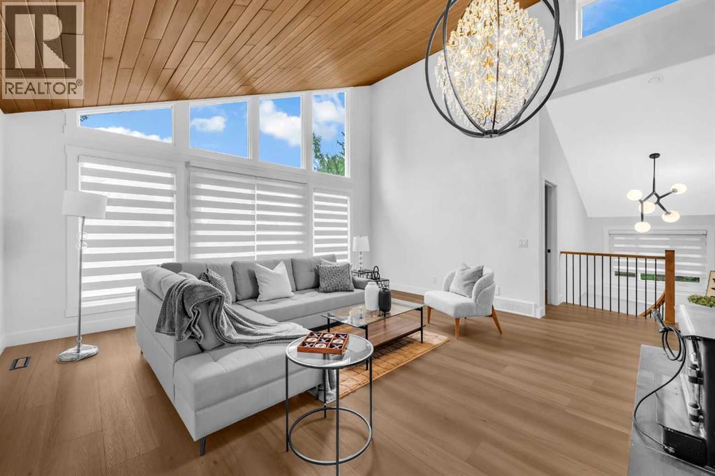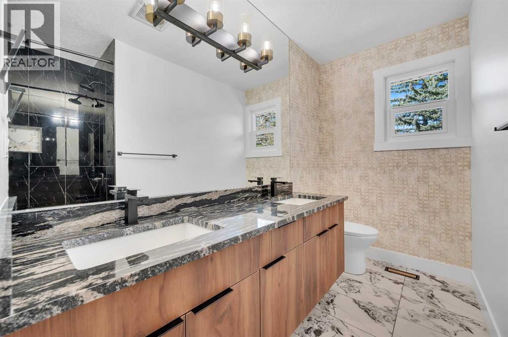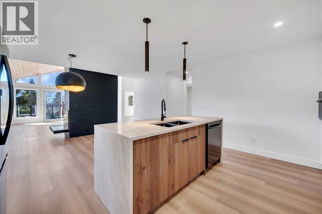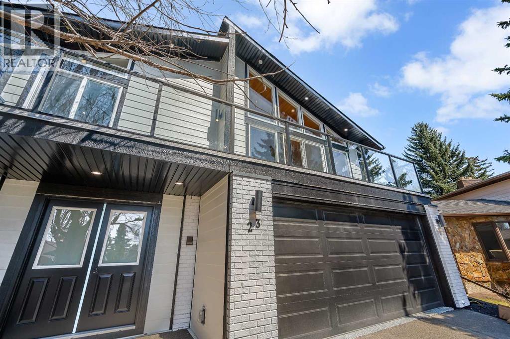 Welcome to this stunning, fully renovated walk-up bungalow in the highly sought-after community of Edgemont—one of NW Calgary’s most desirable neighborhoods. Offering nearly 3,000 sq. ft. of luxurious, upgraded living space, this home has been professionally redesigned from the studs with a perfect blend of modern elegance and timeless class.From the moment you step through the grand double-door entrance, you’re greeted by a tiled foyer and an elegant curved staircase leading to the main level. The lower level boasts a spacious family/living area with a striking fireplace and feature wall, a generous bedroom, a full 3-piece bathroom, and a convenient laundry room.Upstairs, the vaulted ceiling and beautiful chandelier create an airy, open feel in the main living space. Step out onto the front balcony to take in breathtaking views, or retreat to the primary bedroom with private patio access and a spa-inspired ensuite. Two additional well-sized bedrooms and a stylish 5-piece bathroom with designer tile and under-vanity lighting complete the level.The chef’s kitchen is a showstopper—featuring premium appliances, dual-tone cabinetry, and TAJ MAHAL marble counters with a stunning waterfall island. Every detail has been carefully curated, from the lighting fixtures and feature wallpapers to the brick fireplace, flooring, granite countertops, and modern railings.Upgrades include: brand-new furnaces, water tank, Hardie siding, roof, windows, AC , window blinds and glass railings. The home sits on a fully landscaped pie-shaped lot, perfect for summer entertaining, complete with a patio, firepit area, and a gated rear parking pad for your RV or boat. The double front-attached garage features beautiful epoxy flooring.Location: Walking distance to parks, scenic pathways, schools, and the beautiful Nose Hill Park, surrounded by mature trees and panoramic views.This home is truly one-of-a-kind—come see it to fully appreciate its beauty. (id:6769)