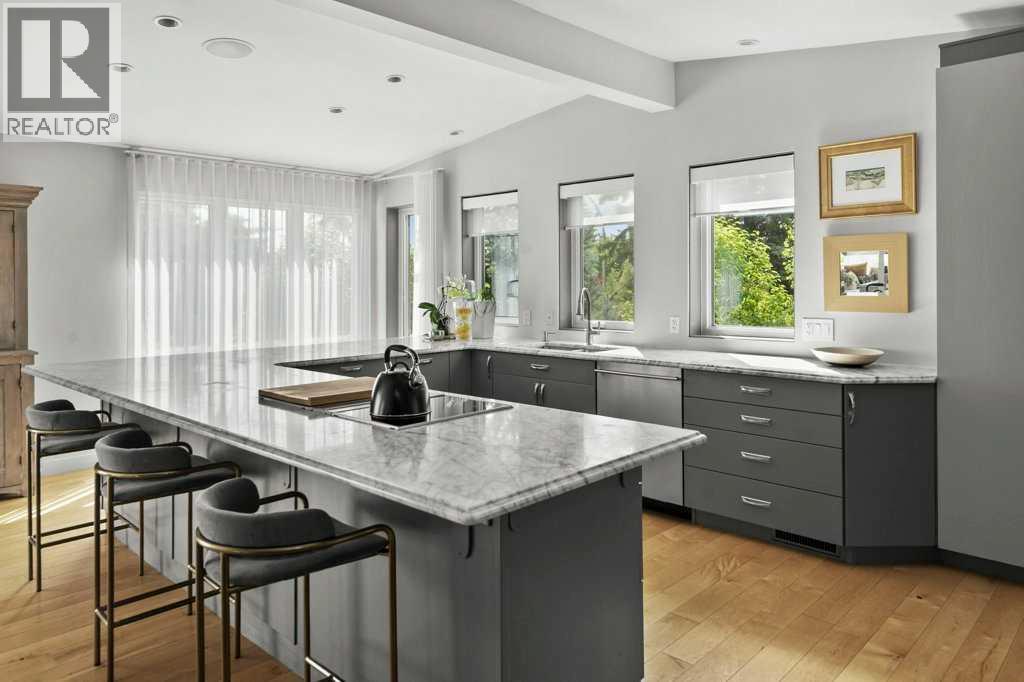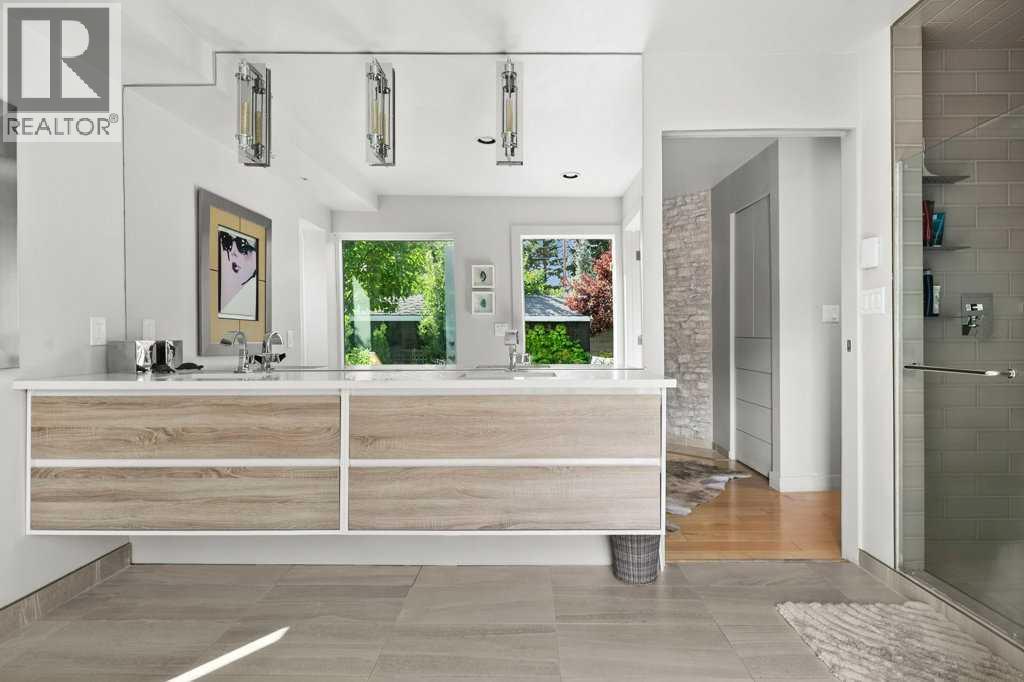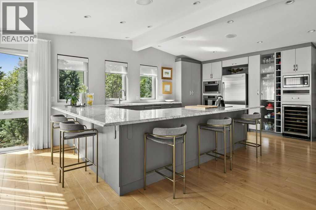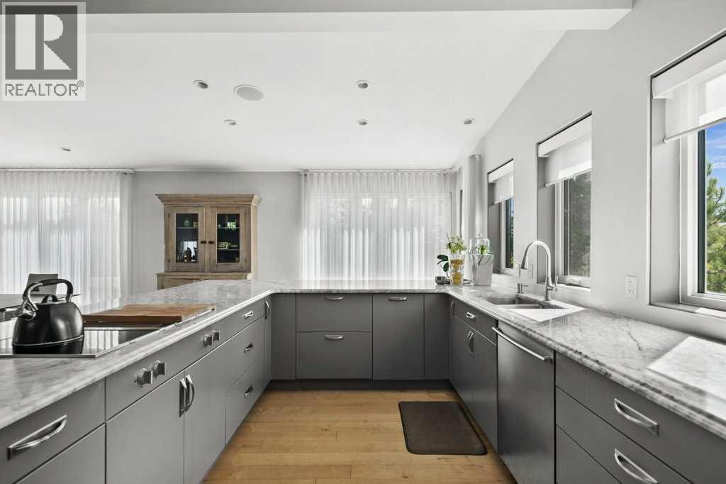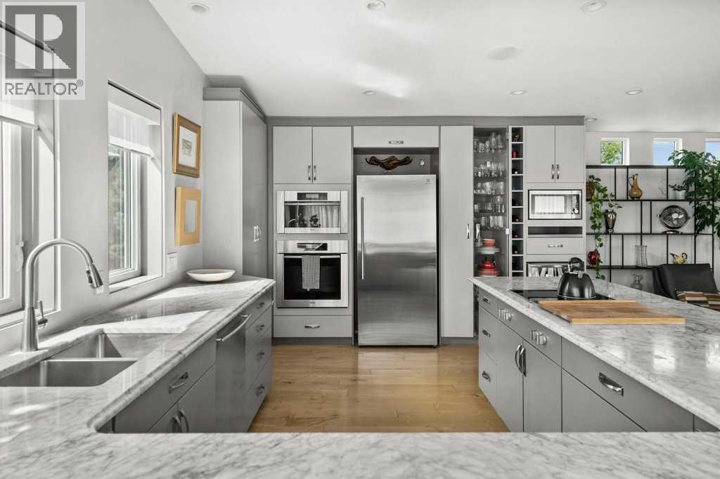 Nestled on a quiet cul-de-sac in sought-after and prestigious Varsity Estates, this exceptional 4-bedroom, 4.5-bathroom estate home with over 2555 square feet of developed living area, sits perfectly on an expansive, irrigated, and private park-like lot. Surrounded by mature fruit-bearing trees, professionally landscaped and irrigated gardens and offering ultimate privacy, this four-level split home delivers sophisticated living in one of the area's most desirable locations. Four separate patios extend your living space outdoors and invite you to relax or host in style while taking in lush garden views.From the moment you step inside, you'll be captivated by vaulted ceilings, designer finishes, and a sense of refined comfort throughout. The heart of the home is a bright and spacious gourmet kitchen featuring top-of-the-line appliances, custom cabinetry, marble countertops and an elegant design that’s perfect for entertaining or everyday living.The living room offers warmth and character with a unique twist – a secret loft playroom that adds charm and a touch of whimsy. Each level of this thoughtfully designed home brings privacy, functionality, and style.On the lower level the primary bedroom suite is a true retreat, featuring a spa-like ensuite with a soaking tub, walk-in shower, and direct access to a private patio oasis- perfect for morning coffee or a peaceful evening wind-down. There are two additional bedrooms on this level- each with it’s own ensuite washroom.Additional highlights include a oversized garage with epoxy floor, pressure washer and a convenient EV charging outlet. Recent upgrades include tankless hot water system, new furnace, EcoBee security and smart home system, new washer and dryer.Close to great shopping, services, schools and parks. Easy access to LRT and major roadways. Don’t miss the opportunity to own this rare gem in a highly sought-after location – a perfect blend of luxury, innovation, and modern design. (id:6769)
