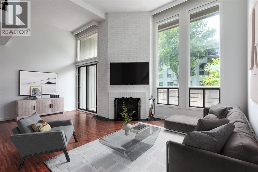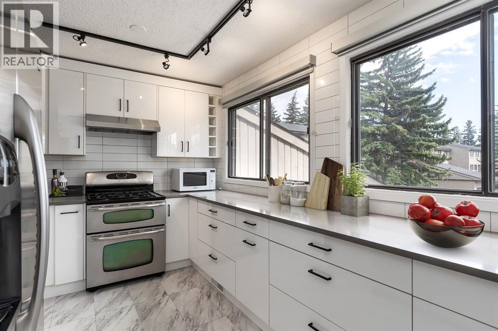 Tucked away in a peaceful cul-de-sac surrounded by mature trees, this 3-bedroom, 2.5-bathroom townhome in Brandy Lane offers a lifestyle that feels both private and connected. Just minutes from Fish Creek Park and Glenmore Reservoir, you’ll find nature, trails, and conveniences all within easy reach.Step inside and immediately feel the character that makes this home stand out. Soaring ceilings and open-riser wood staircases create a sense of space and light, while oversized west-facing windows bathe the main floor in golden afternoon sun. Imagine curling up by the wood-burning fireplace with a good book, or sliding open the doors to your private deck where friends gather for summer BBQs around the built-in cooking space.The updated kitchen blends style and functionality, featuring gleaming cabinets, warm wood accents, classic subway tile, and quartz countertops. Picture weekday breakfasts at the eating bar and weekend dinners with friends—all while staying connected to the living room conversation.Upstairs, the oversized primary suite feels like a sanctuary—complete with a walk-in closet and ensuite. Two additional bedrooms and a full bathroom provide flexibility for kids, guests, or a home office. With fresh paint throughout and brand-new carpet underfoot, everything feels bright, clean, and move-in ready.On the lower level, you’ll find a versatile space that can become a quiet home office, creative studio, gym, or playroom—the choice is yours. Laundry is conveniently tucked in here as well.And don’t forget the practical perks: a deep single-car garage, extra-long driveway for additional parking, and a private west-facing deck offering both sunshine and seclusion.Whether it’s morning walks through Fish Creek, cozy evenings by the fire, or summer nights with friends under the trees, life at Brandy Lane is about comfort, character, and community. (id:6769)