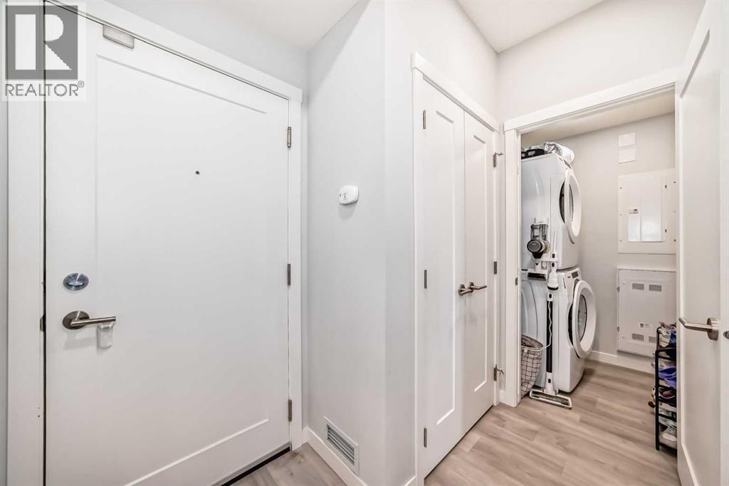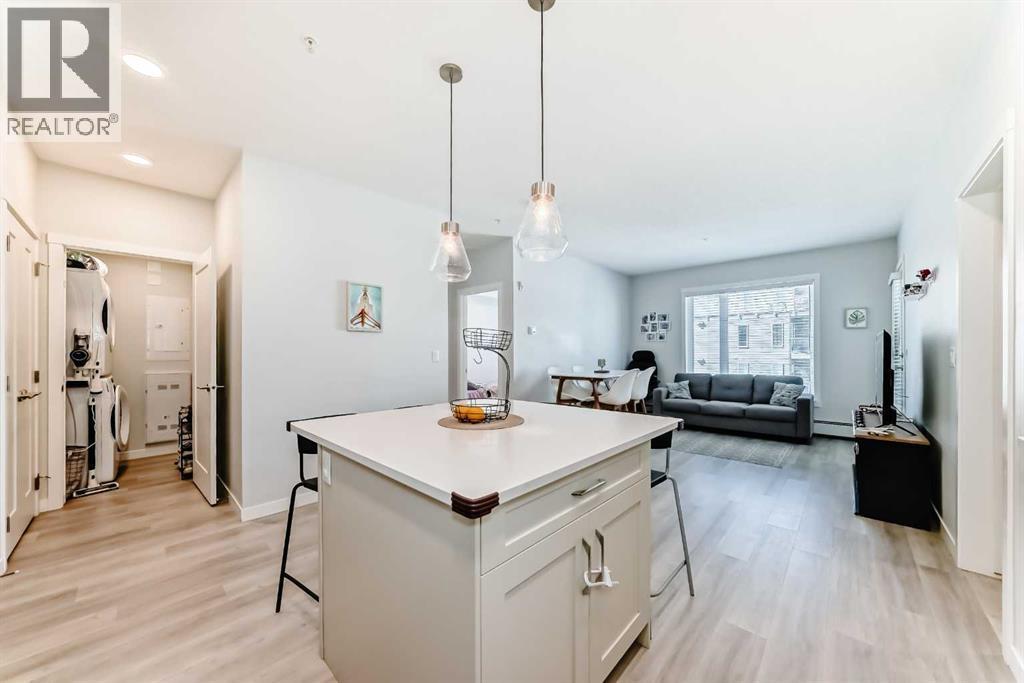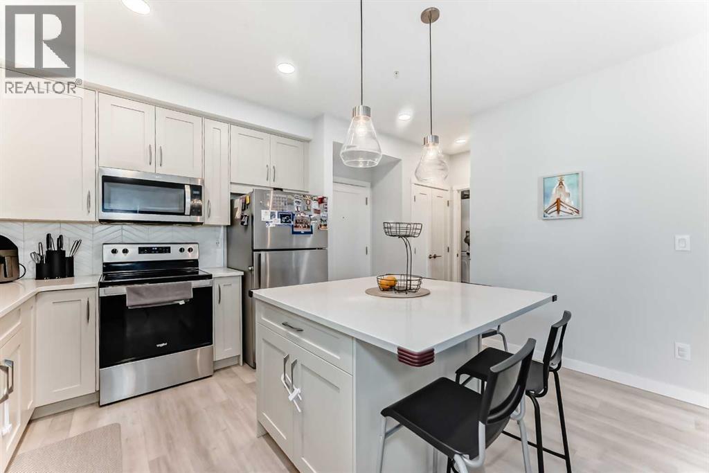 Sought after Shawnee Slopes has a listing just for you! This gorgeous 3rd floor, 2 beds, 2 bath 788 sq. ft. home, features 9' high ceilings and an open floor plan that encompasses the living room and gourmet kitchen. Here you will find a center island with storage, stainless steel appliances, granite countertops and chevron tiled backsplash. This 3rd floor unit has a light-coloured palette, luxury vinyl plank flooring throughout. The balcony has a gas hookup for your BBQing convenience. The primary bedroom offers a large walk-through closet and the second bedroom has a good-sized closet as well. The main bath boasts of a deep tub and tall counter and the laundry machines are full-sized. You'll have access to a titled underground parking stall and storage unit. The condo is close to Fish Creek Provincial Park, C-train station, playgrounds, St. Mary's University, and Shawnessy Shopping Centre. Macleod Trail is easily accessible. It's the perfect place to call home! This is a great first home purchase or a reliable investment property. Currently tenanted until March/26 but this is negotiable. Tenant rights apply. (id:6769)