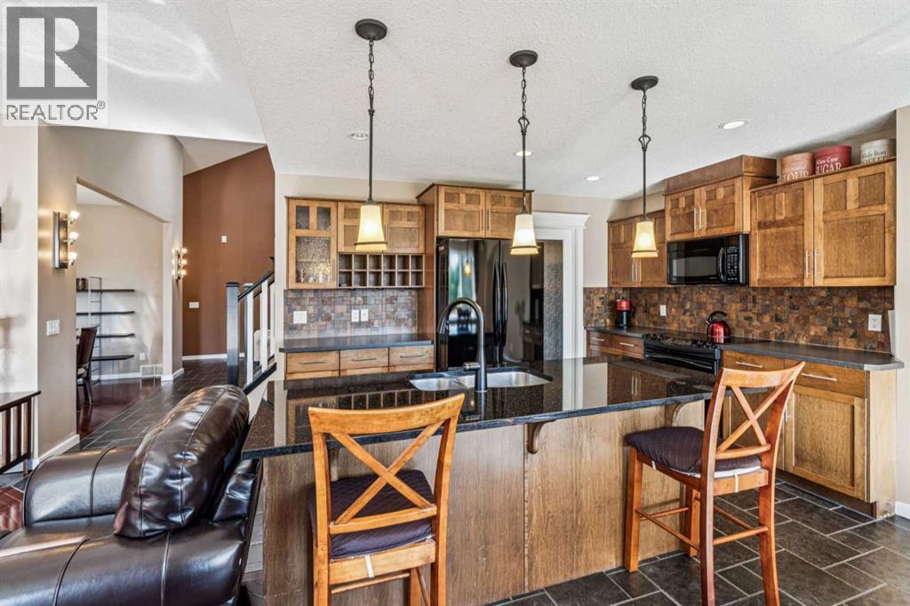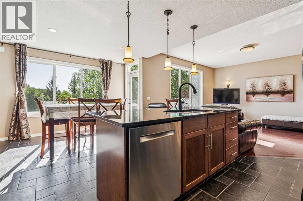 Don’t miss your chance to own one of the few homes in Okotoks backing directly onto the family-friendly Crystal Ridge Golf Course, with breathtaking views of a tranquil pond and natural wooded area. Imagine enjoying your morning coffee from the upper deck, overlooking a peaceful, meadow-like setting.This 2.5-storey home features an open-concept main floor with a spacious kitchen, large island, and breakfast nook—all designed to capture the stunning views. The kitchen also includes ample counter space, a walk-through pantry, and direct access to a generous double-car garage. Adjacent to the kitchen are the dining room and cozy family room, creating the perfect layout for entertaining or family living.Upstairs, the bright and sunny primary bedroom offers two walk-in closets and a 4-piece ensuite. A large loft with a natural gas fireplace provides a versatile second living space, ideal for relaxing or entertaining.The walkout lower level includes a second bedroom, a spa-inspired 4-piece bathroom, and a large custom walk-in closet with built-in shelving. There's also a flexible area perfect for a home office, gym, hobby room, or media space. Step out onto the lower patio, which opens to a charming wooden deck with rustic, cabin-style appeal.Situated on a quiet cul-de-sac, this home offers privacy and tranquility, with lawn care and snow removal included through the Homeowners Association. You’ll also enjoy full access to the Crystal Ridge private lake—swimming, kayaking, skating, and fishing await, along with picnic areas, beach volleyball, fire pits, and barbecues.This unique home truly has it all—location, lifestyle, and views. Call today to book your private showing! (id:6769)