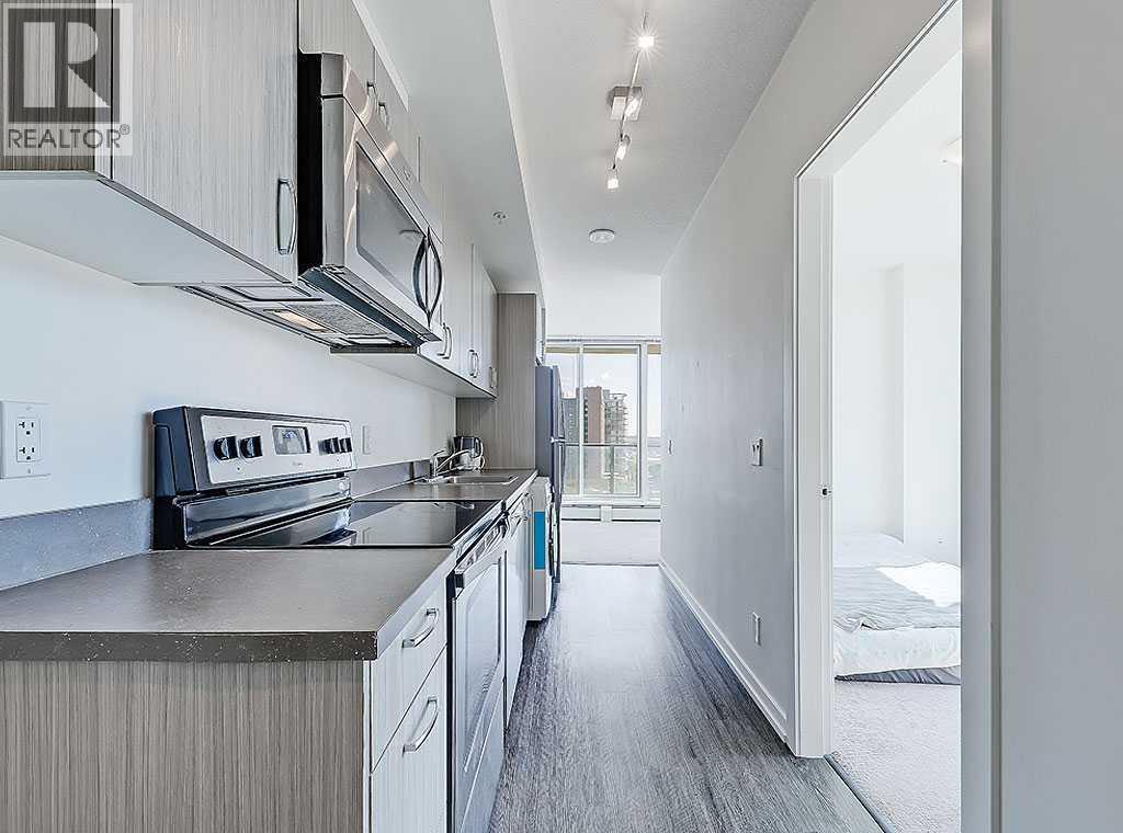 Welcome to N3 – a modern, eco-friendly condo in the heart of Calgary’s vibrant East Village. This stylish 1-bedroom, 1-bathroom home offers a thoughtfully designed open-concept layout, highlighted by floor-to-ceiling windows that flood the space with natural light and showcase sweeping views of the East Village and Stampede Grounds.The contemporary kitchen features sleek cabinetry and stainless steel appliances—perfectly suited for both everyday living and entertaining. The bedroom is designed with comfort and efficiency in mind, while in-suite laundry and a dedicated storage locker add everyday convenience.Residents of N3 enjoy exceptional building amenities, including a fully equipped fitness center, rooftop patio with panoramic city views, bike storage, and inviting communal lounges.With the C-Train, Central Library, Superstore, river pathways, and some of Calgary’s best dining and entertainment just steps from your door, this is downtown living at its finest. (id:6769)