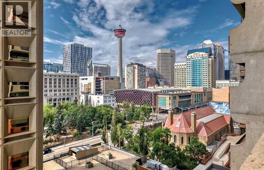 South-Facing Corner Unit in Downtown Calgary, One-bedroom plus den with open floor plan, new laminate floors, fresh paint, and updated kitchen & bath. Bright south exposure with views of Olympic Plaza, Calgary Tower, and the Downtown skyline, while Rocky Mountain Plaza blocks direct summer heat. Spacious bedroom + versatile den for office or guest room. Building amenities include: fitness centre, racquetball court, sauna, and rooftop patios. Prime location in the C-Train free fare zone, steps to shopping, restaurants, Chinatown, Bow Valley College, Central Library, Glenbow Museum, theatres, and Bow River pathways. Includes covered indoor parking—a rare bonus in downtown for incredible value. (id:6769)