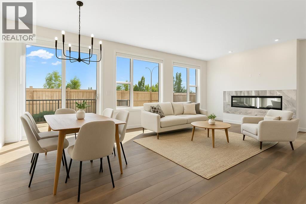 From the moment you step inside the Elbow by Cedarglen Homes, you feel it—this is a home designed for connection, comfort, and possibility. With over 2300 square feet of thoughtfully crafted living space, every detail balances style and function for the way modern families live today. The main floor welcomes you with an open flow that makes gathering effortless. At the heart of the home, the kitchen anchors the space with its striking two-toned cabinetry—bright white along the perimeter contrasted by a bold, dark island that doubles as a casual dining hub. Sleek black hardware, upgraded quartz countertops, and a central island invite conversation while meals are prepared. As the buyer of this home, you'll get to choose your own appliances at the builder's supplier with an allowance of $8954. Just beyond, the great room glows with the warmth of an upgraded fireplace tile feature, while the dining nook spills seamlessly onto the deck—perfect for summer nights spent entertaining under the stars. What sets this home apart is the versatility of a main-floor bedroom tucked just off the foyer. Whether for overnight guests, aging parents, or as a private home office, it offers comfort and convenience rarely found at this price point. A nearby powder room completes this welcoming main level, with the front-attached garage adding everyday practicality. Upstairs, the layout shines for family living. The primary suite is a retreat all its own, privately positioned at the back of the home with a spa-inspired ensuite featuring dual sinks, a walk-in shower, and a generous walk-in closet. Two additional bedrooms at the front share a full bathroom, while a central bonus room creates a flexible hub for movie nights, homework, or quiet reading. Laundry is also upstairs—exactly where you need it most. The basement is unfinished with a side entrance - waiting for your creative touch. Set in the prestigious community of West Grove Estates in Calgary’s West District, this home pairs timel ess design with an address that truly elevates your lifestyle. Tree-lined streets, nearby parks, and top-rated schools create a sense of community, while shopping, dining, and easy access to downtown or the mountains make every day more convenient—and more inspiring. With finishes like warm luxury vinyl plank on the main floor, cozy carpet upstairs, and designer accents throughout, the Elbow is built not just to live in, but to grow into—a place for milestones, memories, and everything in between. Don’t just imagine the lifestyle—come experience it. The Elbow at West Grove Estates is ready to welcome you home. *Some photos are virtually staged.* (id:6769)