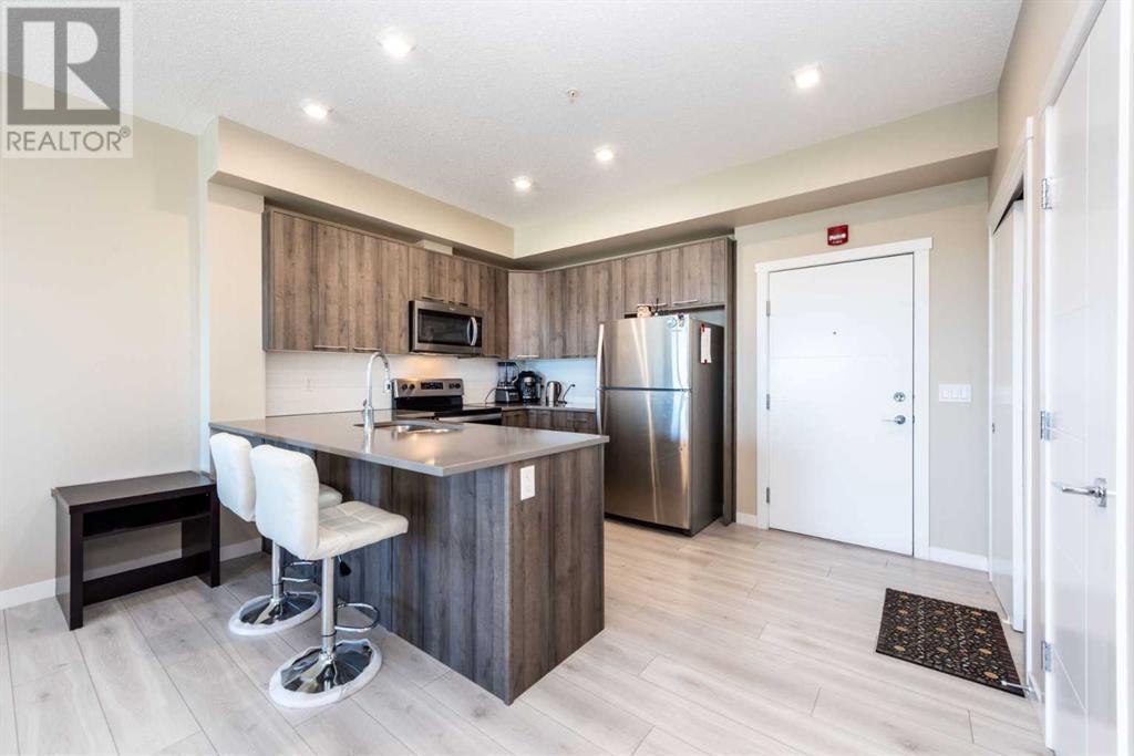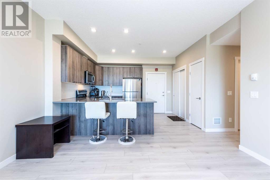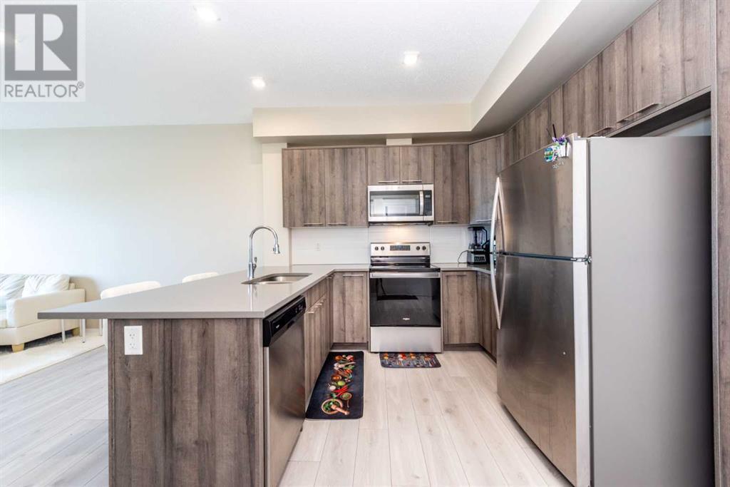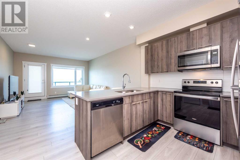 Welcome to Diseno by Landmark Homes in the heart of Sherwood! This beautifully designed 2-bedroom, 2-bathroom condo on the second floor offers a bright and spacious open-concept layout, perfectly suited to accommodate a full-sized dining table. Large windows, 9-foot ceilings, and an abundance of natural light make the space feel warm and inviting. Enjoy the convenience of in-suite laundry and a generously sized storage room with built-in shelving—ideal for keeping everything organized. The heated underground parking stall adds extra comfort, especially in winter. Step out onto your expansive private balcony, complete with a natural gas line—perfect for BBQs, morning coffee, or unwinding with breathtaking Calgary sunsets. Designer finishes throughout include sleek wide plank laminate flooring, quartz countertops, stainless steel appliances, and modern cabinetry, offering both style and functionality. Located next to a peaceful park and scenic pond, you’ll love the natural surroundings and walking paths. Just minutes away from top amenities such as Walmart, T&T Supermarket, Costco, and quick access to Stoney Trail, this location has it all. Don't miss out—schedule your private showing today! (id:6769)