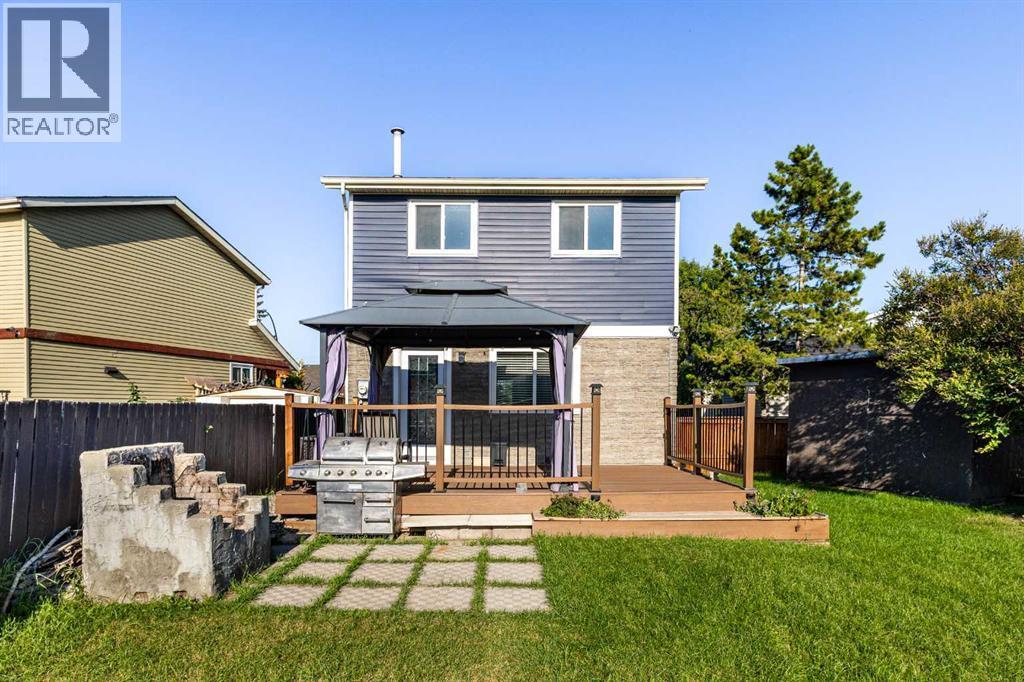 Nestled in a quiet semi cul-de-sac and neighbourhood, 32 Erin Mount Crescent is a charming, detached home with a huge pie shaped lot and lots of updates. New Roof in 2020, New Siding, New Concrete Sidewalks and New vinyl energy efficient windows on the main floor and bedrooms, New 18'17"x11'10" deck with composite deck boards, all installed in 2021. The deck comes with a New hardtop gazebo. New Fence in 2022. Step inside to discover a thoughtfully designed interior, offering about 1660. 61sq.ft of elegant above and below grade space. The main floor boasts a bright open plan with new vinyl energy efficient windows installed in 2021, formal dining area, convenient powder room, and cozy kitchen renovated in 2022 with new stainless-steel appliances and new glossy laminate flooring. Heard upstairs through the shiny glossy laminate stairs, where you will find the master bedroom, closet, and plush carpeting underfoot. There are 2 other good-sized bedrooms, and a 4-piece bathroom renovated in 2023 on this floor. The basement is developed and includes a large family/Recreation room renovated in 2022, with the addition of a wet bar, cabinets, laminate flooring and a feature wall. A very large utility room which serves as laundry room, and extra storage space completes this level. The backyard is one of the selling points of this property with its huge pie shaped lot and back lane double car park for easy access. A 18'17"x11'10" deck with composite deck boards and a hardtop gazebo installed in 2021.This beautiful home is nestled in the great community of Erin Woods with proximity to services such as schools, transit, Hospital, Fire Station, Police, and nearby amenities such as grocery stores, restaurants, Cafes, shopping, and parks. This home has it all. Book your showings today, and do not miss out on this beautiful home. tenant occupied, and they may be home. (id:6769)