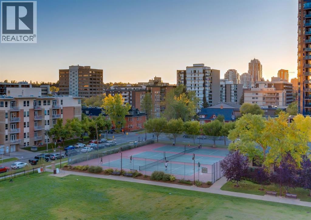 Stylish Urban Condo in Union Square where contemporary design meets an unbeatable location in this executive CONCRETE building. This exceptional one-bedroom plus den condo offers over 830 square feet of well-planned living space in a unique and functional layout. The open-concept layout showcases an inviting kitchen, dining area, and great room that flow seamlessly together, while the spacious primary bedroom with walk-in closet and versatile den—ideal as a home office or guest room—offer comfort and flexibility. Modern finishes include granite countertops, maple cabinetry, and stainless steel appliances. Additional conveniences include air conditioning, in-suite laundry (machines replaced in 2024), a balcony that expands your living space, a separate storage unit down the hall, and OVERSIZED underground TITLED parking steps from the elevator. The monthly condo fees include gas, water, insurance, window cleaning, heat, bike storage, and more. Located in the heart of Calgary’s Beltline, you’re just steps from First Street Market, cafes, restaurants, and shops, with Stampede Park, Haultain Park, and the Saddledome all within easy walking distance. Commuting is effortless—walk to downtown, gyms, hop on the LRT, or explore nearby pathways and green spaces. Floor plans and a 3D tour are readily available, providing a glimpse into this chic condo! (id:6769)