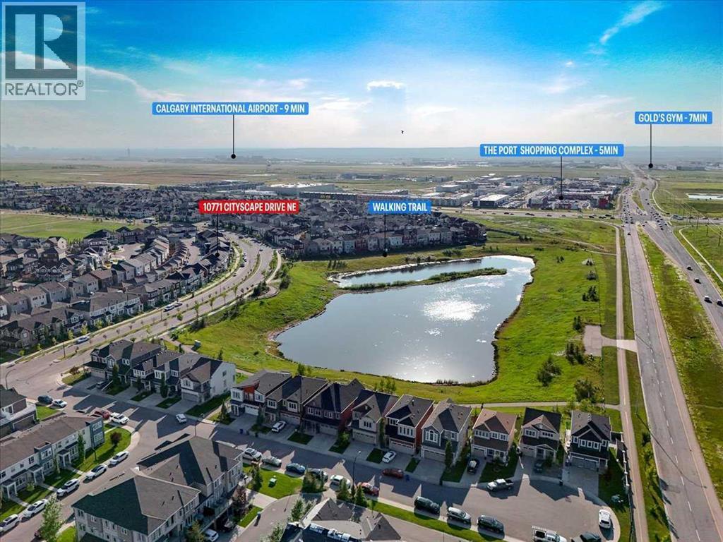 NO CONDO FEES. NO HOA FEES. Directly across from a beautiful storm water pond with no homes in front and located right on Cityscape Drive for quick access to amenities! Welcome to this stunning 3-bedroom no condo fees bare land townhouse in the vibrant community of Cityscape NE Calgary. With no condo or HOA fees, this home offers exceptional value alongside modern design and functionality. Step inside to a bright open-concept main floor, featuring luxury vinyl plank flooring for both style and durability. The spacious living room flows seamlessly into a cozy dining area and a chef-inspired kitchen with a large L-shaped island, quartz countertops, stainless steel appliances, and a generous pantry. Upstairs, the primary bedroom serves as your private retreat with its own 3-piece ensuite. Two additional bedrooms provide plenty of space for family or guests. A bonus room with access to a huge balcony is perfect for enjoying fresh air and evening sunsets. The upper level also includes a 4-piece bathroom and a convenient laundry area. The unfinished basement is a blank canvas for your future vision—whether it’s a home gym, entertainment space, or extra storage. A double car garage (insulated and drywalled) provides secure parking and convenience, while additional street parking is available right in front of the property. Located close to shopping plazas, Deerfoot Trail, Metis Trail, and with quick access to Stoney Trail, this home makes commuting a breeze. Don’t miss this opportunity to own a low-maintenance, high-value property in one of Calgary’s fastest-growing communities! (id:6769)