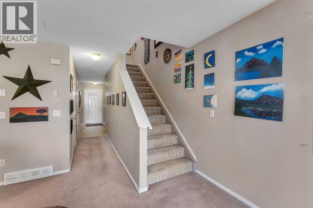 This is a heck of an opportunity to own an end unit townhome with a GARAGE backing onto greenspace. Situated in the Canals, this well run complex is quiet and peaceful. With quick access to walking paths along the Canals, you'll love the serenity of this location. Driving up, you'll appreciate the privacy of the location, and the proximity of visitor parking for guests. Inside, the open concept plan creates a comfortable atmosphere. Large windows along the back usher in natural light and a corner gas fireplace adds a cozy element. A two piece bath and convenient access to the single attached garage can be found on this level. Upstairs, you'll discover two huge primary bedrooms separated by a flex space and a 4 piece bath. The basement is partially developed with an open rec space. There is also storage and laundry. The back deck is a lovely shaded space to enjoy pretty views and birdsong. This is a pet friendly complex with up to two dogs/two cats allowed with board approval. An additional stall can be rented for $75 through the management company. (id:6769)