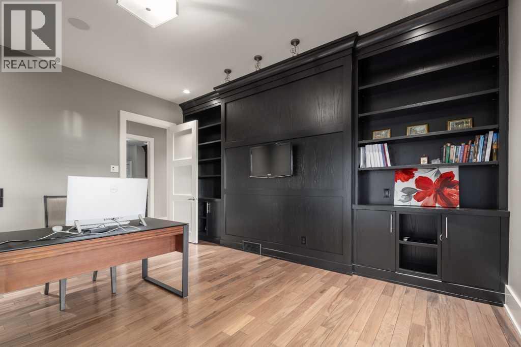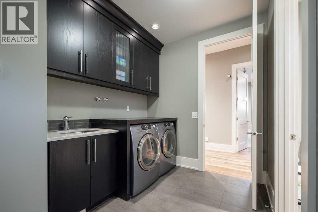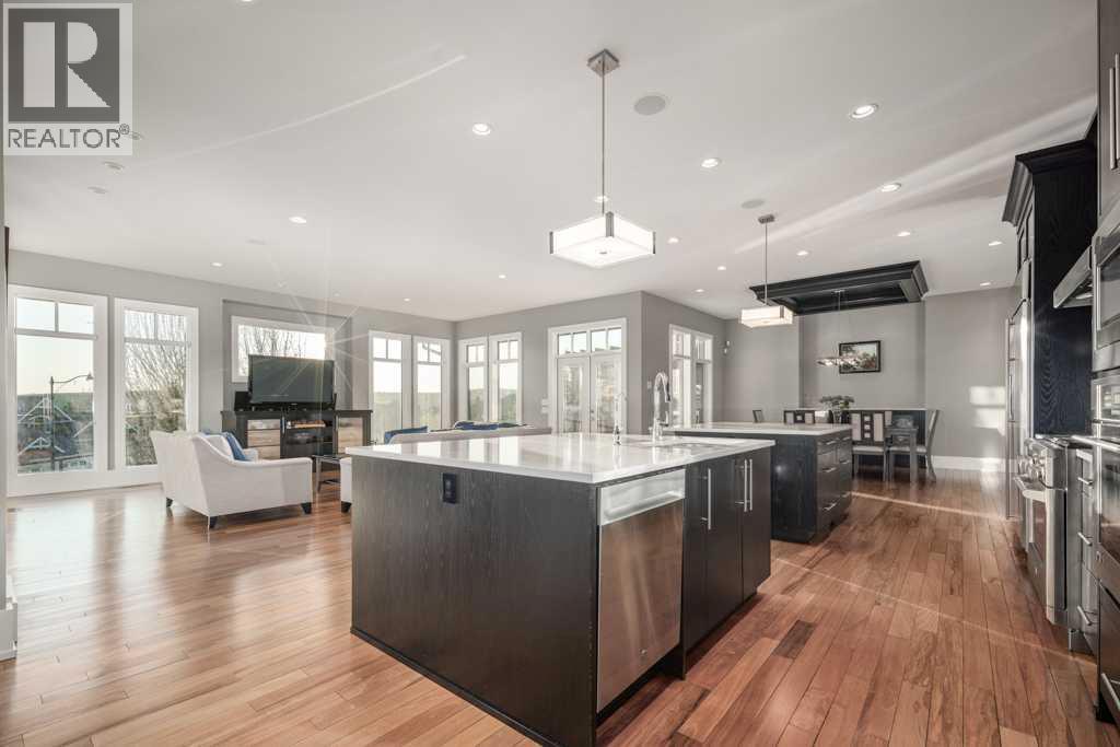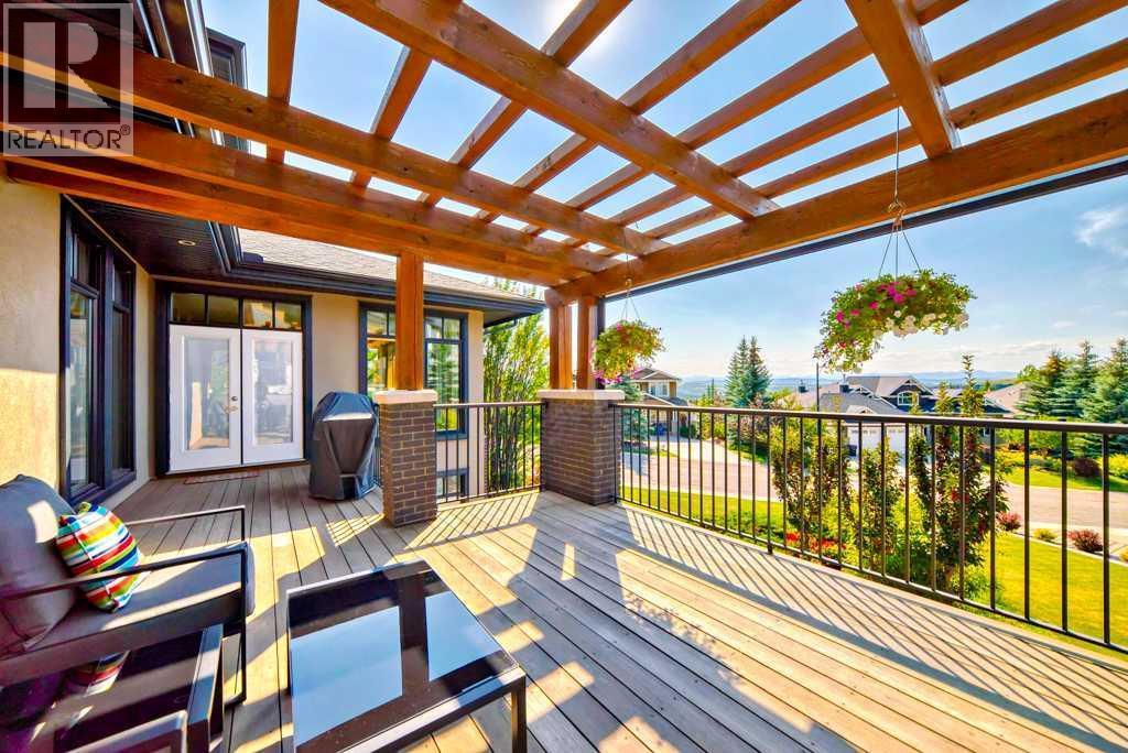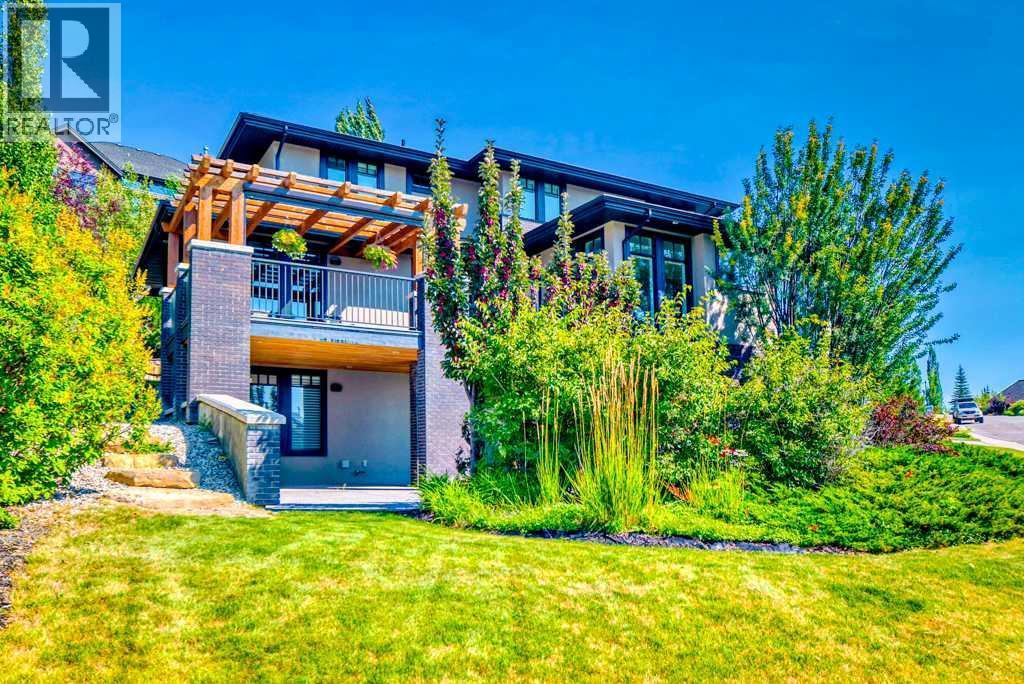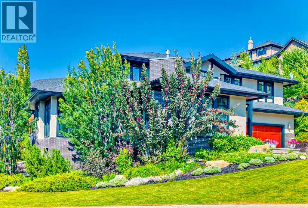 Experience over 6,500 sq ft of exceptional luxury in this custom-built estate, ideally perched to capture sweeping views of the mountains and valley below. Designed with sophistication and comfort in mind, this meticulously crafted home offers 5 bedrooms, 6 bathrooms, and a heated triple-tandem garage—perfectly blending timeless elegance with modern functionality.A grand, light-filled foyer welcomes you with soaring ceilings and leads into a dramatic living room anchored by floor-to-ceiling windows and a statement fireplace. The formal dining room and expansive family room provide effortless flow for entertaining, while the gourmet kitchen is a chef’s dream—featuring dual quartz islands, top-tier appliances, and a hidden walk-in pantry for seamless organization.The main level also includes a private home office, custom mudroom, and two stylish powder rooms for guests. Upstairs, discover four generously sized bedrooms, a cozy study nook, a secondary laundry room, and a luxurious primary retreat with dual walk-in closets and a spa-inspired ensuite complete with steam shower and soaking tub.The fully finished walkout basement is an entertainer’s dream—featuring a custom theatre room, spacious rec room, sleek wet bar, temperature-controlled wine cellar, and a private guest suite.Premium upgrades are found throughout, including triple-pane windows, rich hardwood flooring, central air conditioning, steam showers, and a fully integrated smart security system.Outdoors, the professionally landscaped grounds are equally impressive, with a west-facing backyard that showcases mountain vistas, a covered patio, and a stunning cedar pergola—ideal for relaxing or entertaining year-round.Located minutes from Calgary’s top-rated schools, Westside Recreation Centre, the LRT, and Stoney Trail, this is more than a home—it’s a lifestyle of refined living and panoramic beauty. (id:6769)