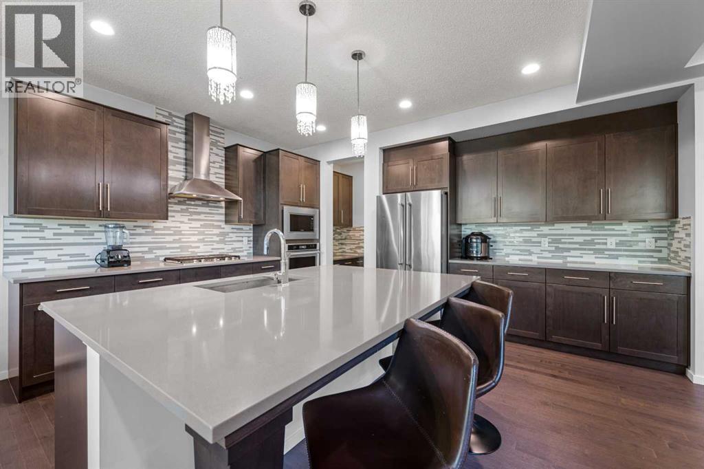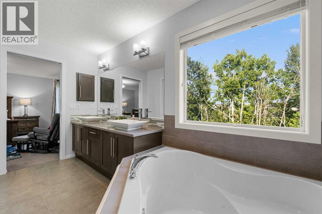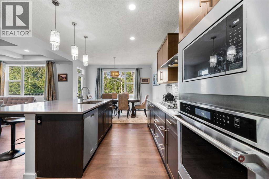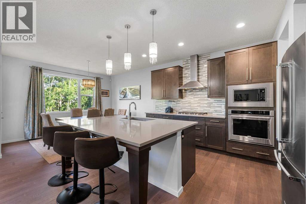 Step into this spacious 2-storey detached home in the desirable community of Walden, offering over 2,400 sq.ft. of living space with 3 bedrooms, 2.5 bathrooms, and an attached double garage—perfect for your growing family. WALK-OUT BASEMENT and BACKS ONTO GREEN SPACE. The open-concept main floor is filled with natural light and features beautiful hardwood flooring throughout. A welcoming foyer leads to the bright living room, ideal for cozy evenings by the gas fireplace. The modern kitchen is equipped with quartz countertops, SS appliances, stylish cabinetry, a large pantry, and a generous island with seating, while the dining area opens to a large deck—perfect for entertaining or summer BBQs. A main floor office/flex space, mudroom, and 2-pc bath add everyday functionality, plus central A/C ensures year-round comfort. Upstairs, a central bonus/family room offers extra lounging space, along with a large laundry room, two generous bedrooms—each with walk-in closets—and a shared 3-pc bath. The primary suite features its own walk-in closet and a luxurious 5-pc ensuite with dual quartz vanities, a soaking tub, and a separate shower. The walk-out unfinished basement backs directly onto green space, ready for your personal touch. Other features include a rough-in gas line in the garage for heating the garage, and a 3-zone furnace system, all floors controlled separately. Outside, the fully fenced backyard provides plenty of room for kids to play and pets to roam. Ideally located near schools, shopping, transit, parks, pathways, recreation centres, and multiple golf courses—close to the Township Shopping Centre, numerous ponds and green spaces, the Wolf Willow off-leash dog park, All Saints High School, and the South Health Campus, with quick access to Macleod Trail, Stoney Trail, and Deerfoot Trail. Call to book your private viewings today! (id:6769)