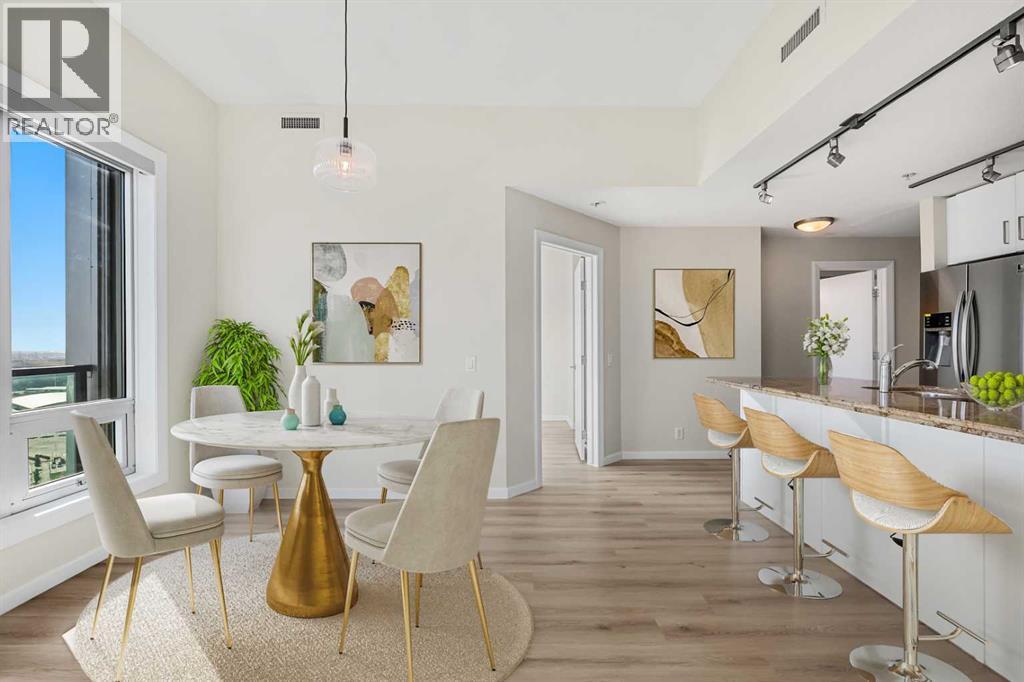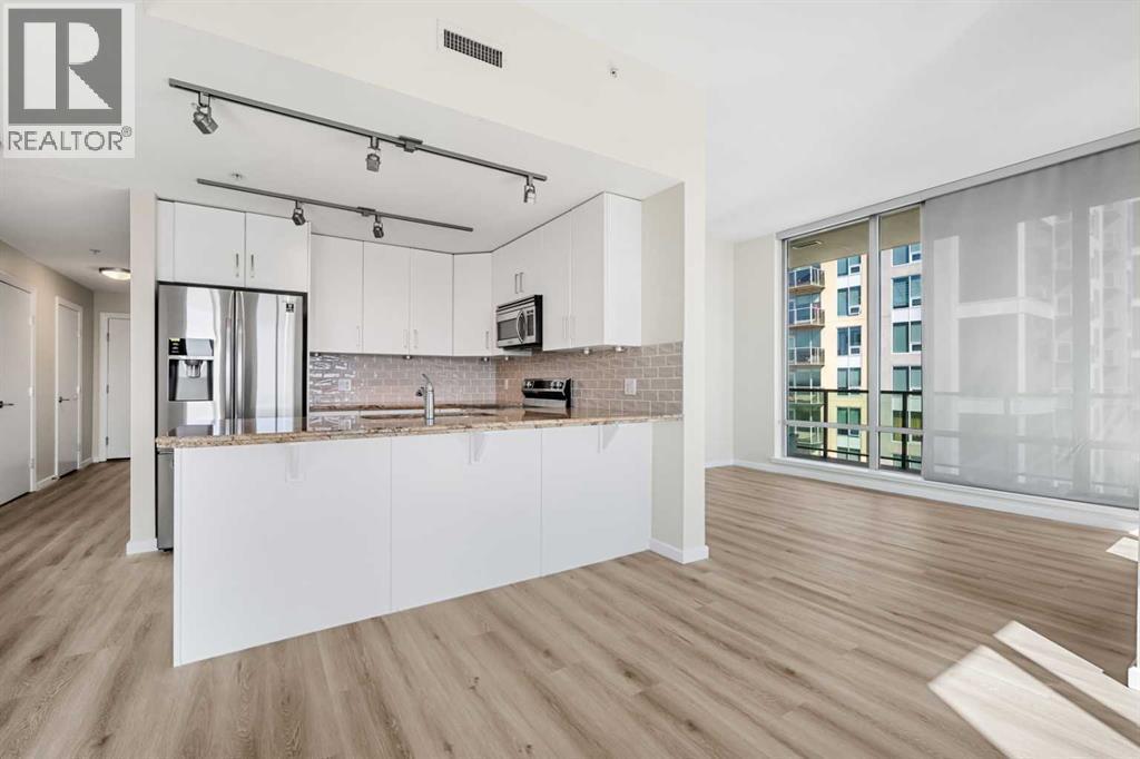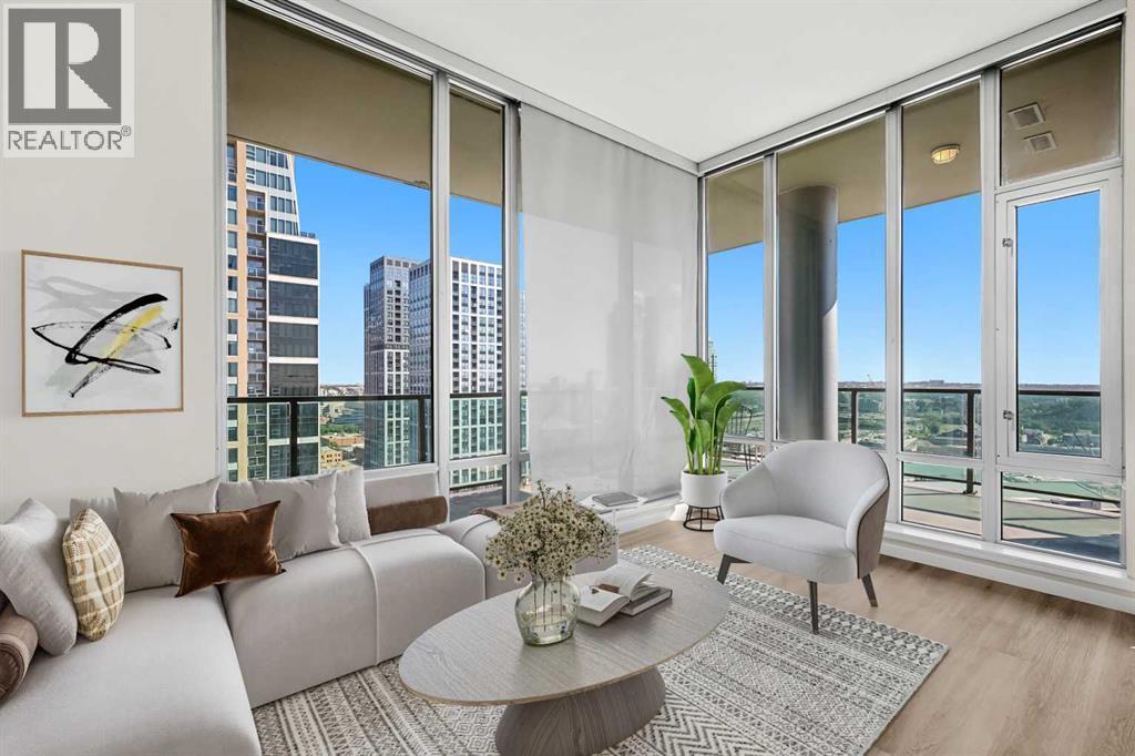 Your Sky-High Retreat in the Heart of Calgary's Entertainment District! Imagine waking up to breathtaking city views from the 21st floor and unwinding as the downtown lights twinkle below. Welcome to SASSO—an exceptional opportunity to experience the vibrant energy of Victoria Park. This concrete building, situated in the heart of the Beltline, is conveniently close to numerous amenities and just a short walk from downtown.This unit features a fantastic floor plan with floor-to-ceiling windows that fill the space with natural light, making it one of the most desirable locations in the building. This stylish two-bedroom condo, located in an 18+ adult complex, offers the ultimate urban lifestyle. Step inside this renovated unit and enjoy the spaciousness created by nine-foot ceilings, luxury vinyl plank flooring throughout, and an open-concept layout.The modern kitchen, equipped with granite countertops and sleek white cabinets, is perfect for preparing dinner before heading out for the night. Enjoy warm evenings on your private covered balcony, complete with a gas BBQ. For cozy nights in, relax on your couch, perfectly positioned to take in the stunning view. The main floor features beautiful new luxury vinyl plank flooring for easy maintenance.The open layout provides ample space for entertaining, with the kitchen boasting granite countertops, stainless steel appliances, an eating bar, a double sink, and plenty of cabinet space. Both bedrooms are spacious and include walkthrough closets and their own full bathrooms, ensuring privacy as they are separated across the condo.World-class amenities await you, including a concierge, fitness center, theater, hot tub, and more. With the city at your doorstep, you are just steps away from the LRT, Stampede Grounds, Sunterra Market, and a variety of dining and shopping options on 17th Avenue. This isn't just a condo; it's your gateway to a sophisticated and convenient urban lifestyle. Be sure to view the full 3D virtua l tour! (id:6769)