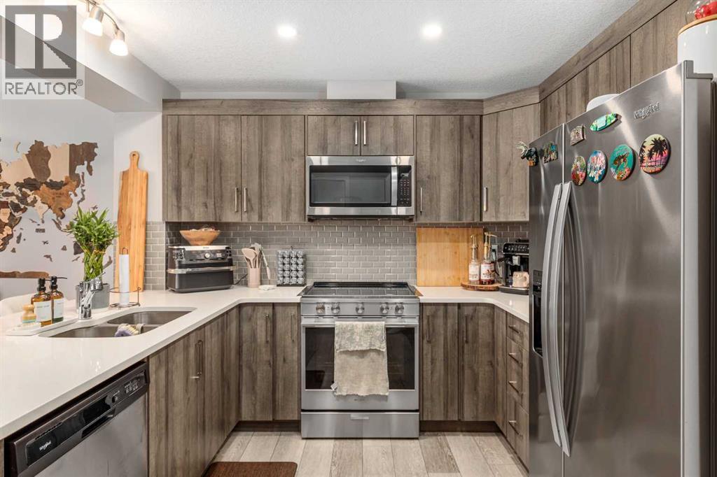 Welcome to this beautifully upgraded freehold 2-storey townhome located in the sought-after community of Windsong in Airdrie. This move-in-ready property offers nearly 1,300 sq. ft. of comfortable, well-designed living space, plus a finished basement, giving you even more room to enjoy.With 3 bedrooms and 2.5 bathrooms, this home is ideal for families, first-time buyers, or savvy investors. The main level features a bright open-concept layout with luxury vinyl plank flooring throughout, a stylish kitchen with quartz countertops, stainless steel appliances, a breakfast bar, and upgraded backsplash and fixtures. A spacious living area and 2-piece powder room complete the main floor.Upstairs, you'll find a cozy bonus room—perfect for a home office or media space—along with a conveniently located laundry area. The spacious primary suite includes a private 4-piece ensuite, while two additional bedrooms share a full bathroom. Step out onto the large rear-facing balcony, which has a private entrance from the bonus room. Enjoy sunbathing from morning until evening, or fire up the BBQ and entertain—even during the winter months.The fully finished basement offers additional versatile space for a rec room, home gym, or guest suite—tailored to your lifestyle needs.What truly sets this home apart is the integrated Apple Smart Home system, bringing modern convenience and control right to your fingertips.Additional features include a double attached garage and a prime location: a brand-new recreation complex with swimming pools and a hockey rink is coming soon to the neighborhood. You'll also enjoy walking-distance access to a nearby plaza with grocery stores, restaurants, and everyday conveniences. Plus, Calgary International Airport is just 15–20 minutes away, and Downtown Calgary is only 25 minutes by car. More than five playgrounds are located within a short walk—perfect for families with young children.Don’t miss your chance to own this smart and stylish home in o ne of Airdrie’s most desirable neighborhoods. Book your private showing today! (id:6769)