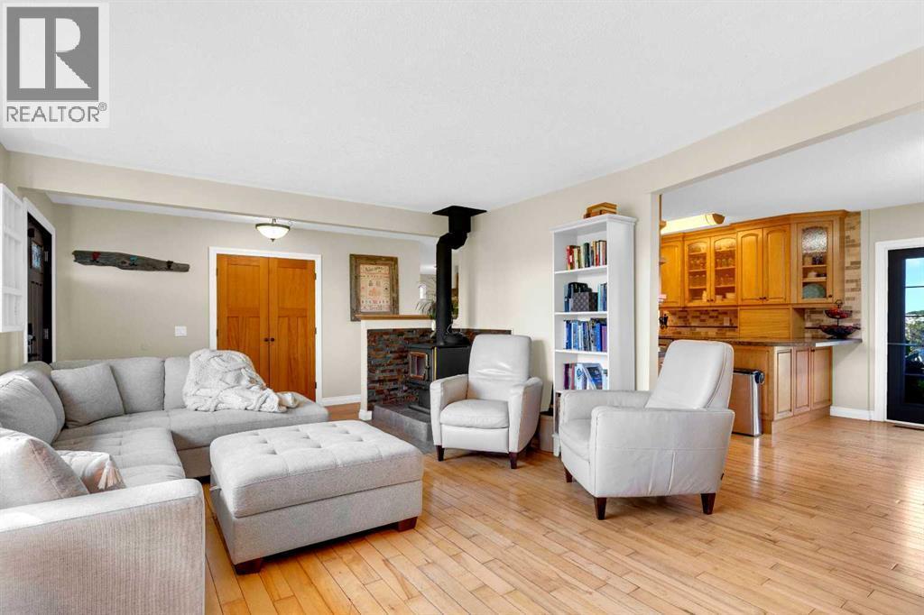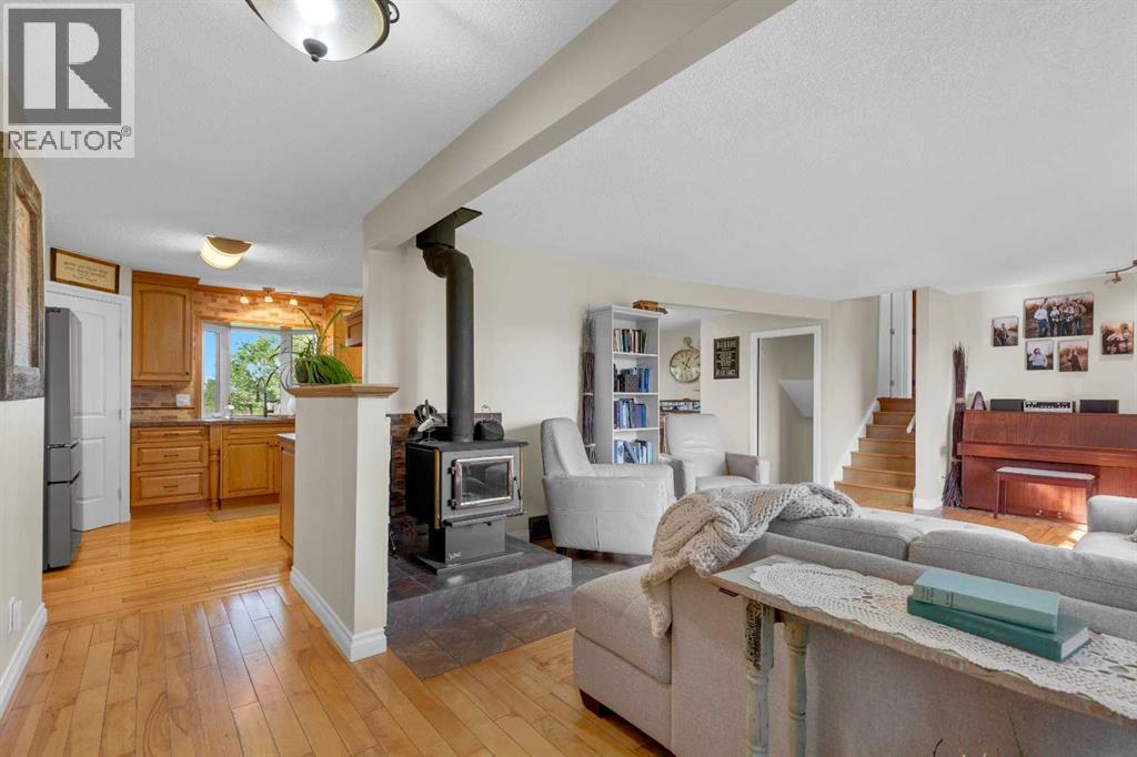 Home...its more than just an address. Its a feeling. Its a space where you spend time with the people you love and recall your fondest memories. Home could be here in Alder Heights. This 4.18 acres is set in an amazing location just off HWY 2 with all paved roads. Pull up the tree lined driveway to a beautiful professionally landscaped front entrance. Stepping into the home you feel it...its comfort and adventure. This is a split level home with over 3600 sf of developed space for large families, multigenerational families, families who love to have guests! The living room is your space in the mornings with the sunrises and the wood burning fireplace to take the chill out of the air. The kitchen, with its copious cabinetry and prep area along with the dining area have views to the West, of the mountains and sunsets! Enjoy the views from indoors or from either of the 2 decks accessible via the dining room or primary suite. Are you working from home? The addition (2008) features a main floor office space which alternately could be a sitting room for an elderly family member who occupies the substantial bedroom having direct access to a full bath, which, is conveniently located off the oversized attached garage! Did I mention there is also main floor laundry? And central air conditioning? And fresh paint? Another renovation (2018) was the Primary Suite inclusive of a gas fireplace, impressive walk in closet, sitting area with access to the upper west deck, and a full en suite with the option of extra privacy closing off the powder room from the bathing area! Continue on to explore the lower level with a walk up feature to the back yard. This is the family room where movie nights and games and crafting can be engaged in by all. Or, head to the 4th level for a vigorous workout in the gym space or cozy up in the recreation room. Perhaps this is where the theatre life is! Or maybe games tables. Keep in mind those who may slumber in any of the 3 sizeable bedro oms! This level is thoughtfully developed with slab heat for additional comfort! With all the indoor options, lets not forget the outdoors! There is room for animals and forts and play centers and gardens and gazebos and she shacks and man caves and workshops and animal shelters and firepits and gardens and plunge pools and horseshoe pits and volley ball and badminton and, well, I think you know. Have you looked at the map? You are only minutes away from High River and also Okotoks and an easy drive to the South end of Calgary. Up the road is the community riding arena for the equestrian lover plus a BBQ area and playground, walking/bike paths and sledding hill. Are you thinking this may be your space...that one to call home? Call your Realtor® for your private viewing. Move in and call this Home for the Holidays! Now how much fun will that be??? (id:6769)