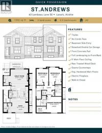 *NEW PRICE REFLECTING DEVELOPER BONUS INCENTIVE* END UNIT, SIDE ENTRY TO BASEMENT, IMMEDIATE POSSSESSION , DOUBLE DETACHED GARAGE, DECK, FENCED AND LANDSCAPED, NO CONDO FEES. PICTURES ARE OF SAME MODEL, NOT SUBJECT PROPERTY. Welcome to the "St. Andrews" townhome, by Award winning, Master Builder, Douglas Homes Ltd. From the front covered porch, the entry opens onto the spacious great room with 9ft ceiling, electric fireplace, and gleaming hardwood floors throughout the main floor. The aspiring chef will appreciate the well planned "island" kitchen. From the upgraded 42 inch, soft close cabinets, to the gorgeous quartz countertops, everything is within easy reach. The sparkling stainless steel fridge, the glass top, self cleaning electric range, dishwasher, and over the range microwave/hoodfan are all just an arms length from the kitchen sink. Opposite side of the island, provides a convenient pantry, and desk with upper cabinet for all those recipe books you will collect. The spacious dining area features a large picture window looking out upon the back yard with room for the kids to play, with a rear entry door to the deck for those summer bbq's. Here also is a 2pc powder room for your guests convenience, and perhaps the kids hurried need. Upstairs includes 2 good sized secondary bedrooms, a 4pce bathroom with quartz vanity and tile floors, a convenient upstairs laundry, and a spacious primary bedroom with large upsized window and ensuite bath, with walk in shower, with glass front, tile floor and again a quartz vanity. The full basement provides rough in plumbing for a future bath, one window for future bedroom, and enough space remaining for a spacious future family room if you decide your family needs room to spread. (id:6769)