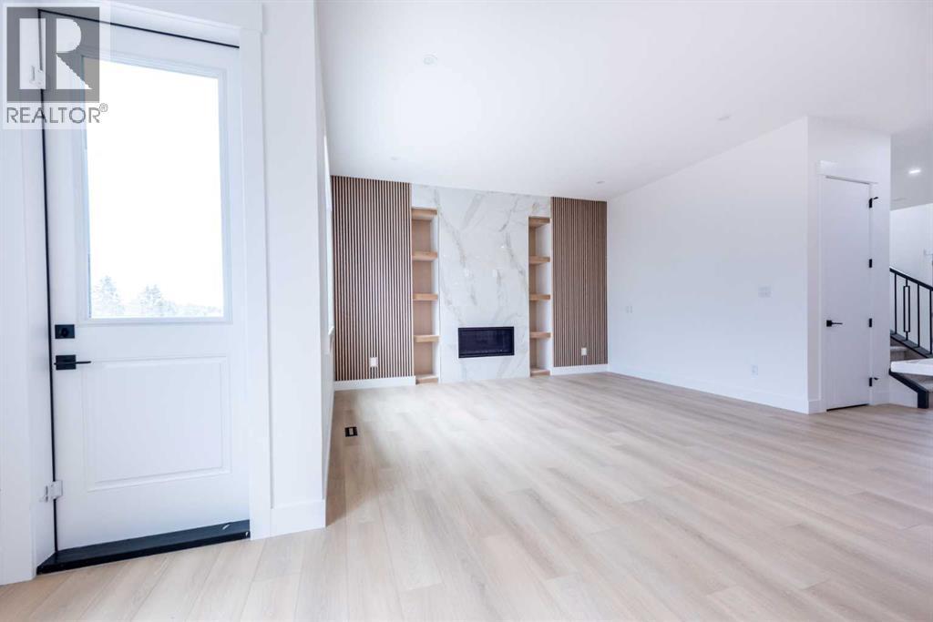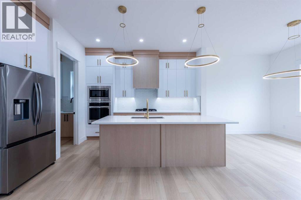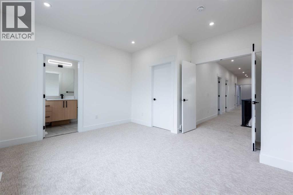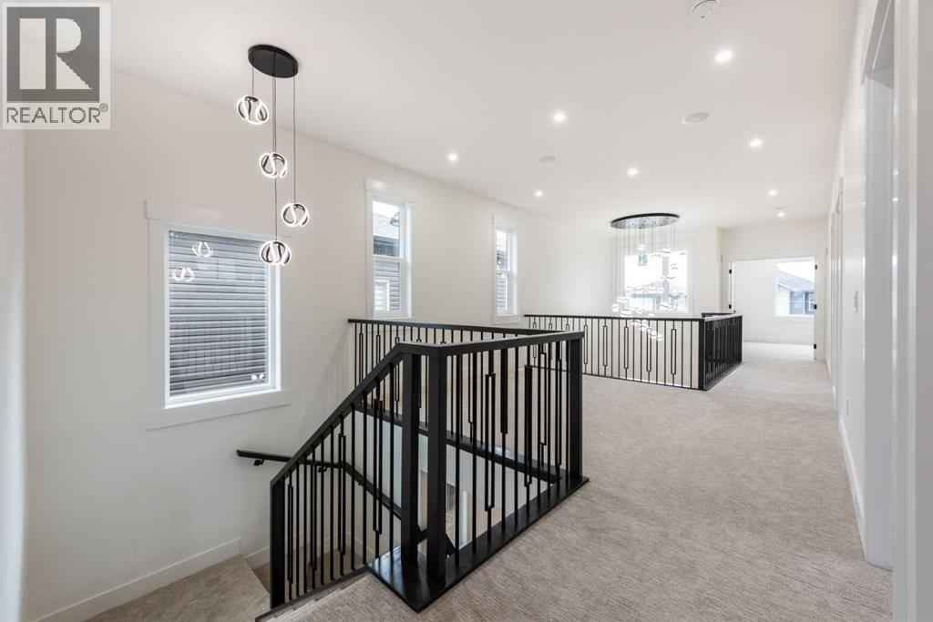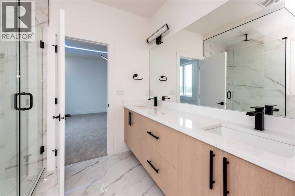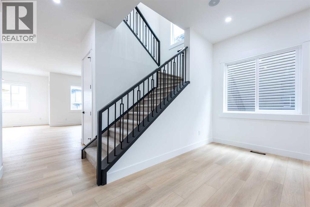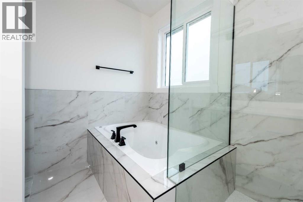 Welcome to this stunning brand-new detached home located in the vibrant community of Midtown, Airdrie, just steps away from scenic ponds, walking paths, and green space. Spanning 2,782 square feet, this home showcases thoughtful design and luxurious upgrades throughout.Step into a grand open-to-below foyer and be impressed by the elegant finishes, including luxury vinyl plank flooring, 8-foot doors on the main floor, upgraded tiles, and a beautifully designed media niche with a feature wall fireplace. The main floor features a versatile office/bedroom alongside a full bathroom with a standing shower, perfect for guests or multi-generational living.The chef’s kitchen is a dream, boasting upgraded appliances, soft-close cabinetry, an upgraded spice kitchen, pot lights, and upgraded lighting throughout. A glass-railed deck off the dining area adds to the charm, perfect for entertaining.Upstairs, you’ll find two spacious primary bedrooms, each with their own upgraded ensuite bathrooms and walk-in closets featuring custom MDF shelving. The luxurious main primary ensuite includes a glass shower and a jetted tub. Two additional bedrooms share a well-appointed bathroom. A bonus room offers extra living space, while the convenient upstairs laundry comes equipped with built-in cabinetry and a hand-wash sink.The unfinished basement with a separate side entrance offers endless possibilities for future development, including a potential legal suite. Located near shopping, schools, and with easy access to Deerfoot Trail, this home combines luxury, space, and unbeatable convenience. Call your favorite Realtor today to book a showing. (id:6769)