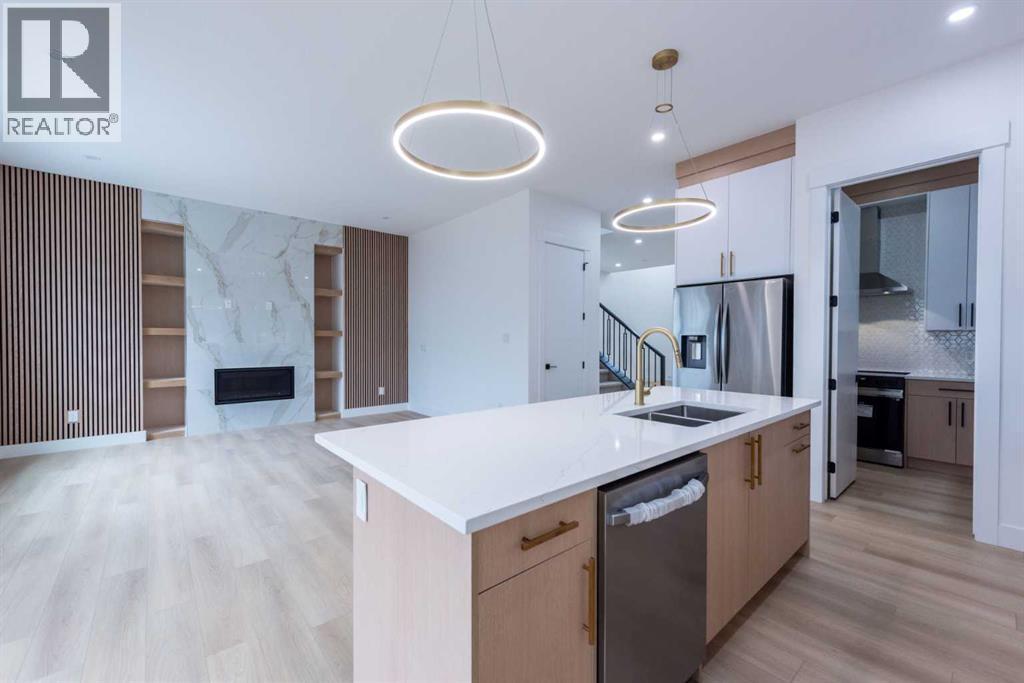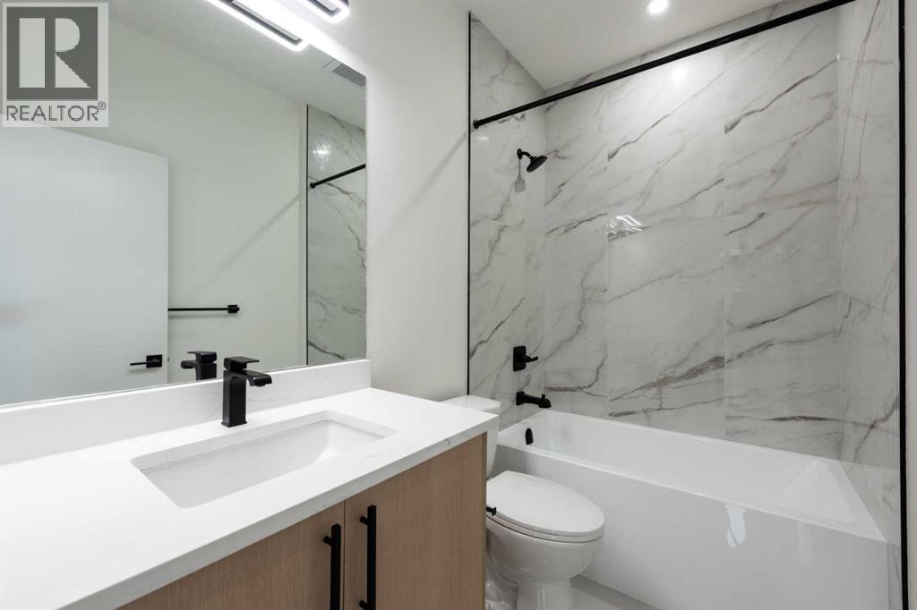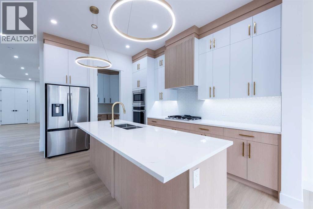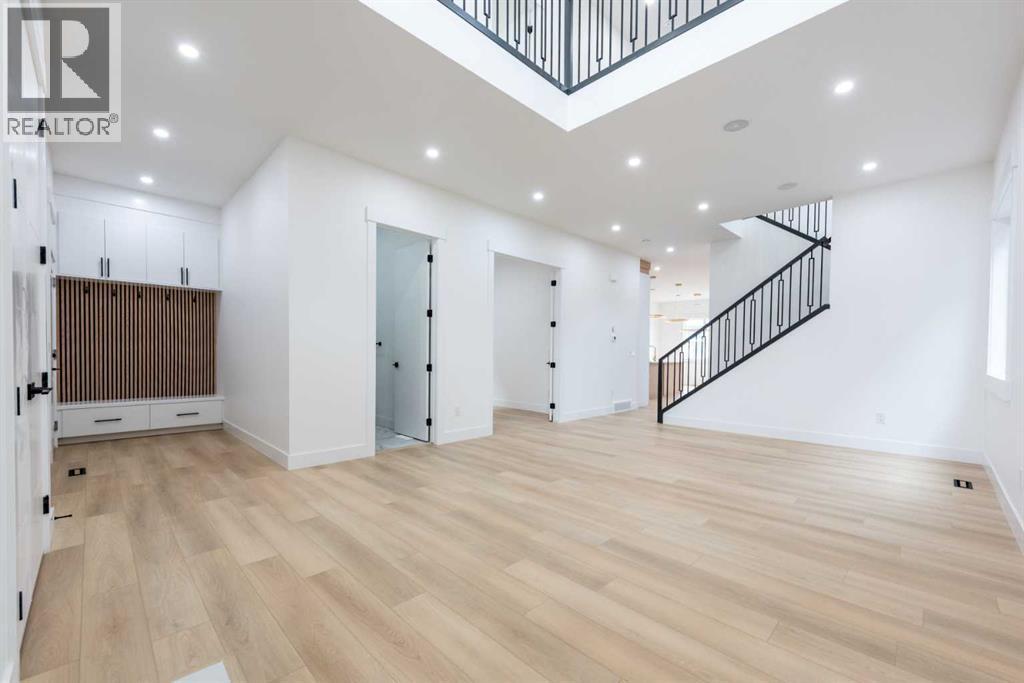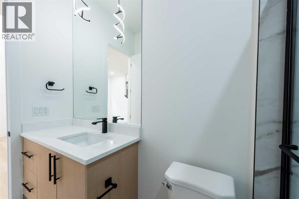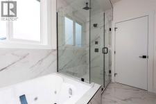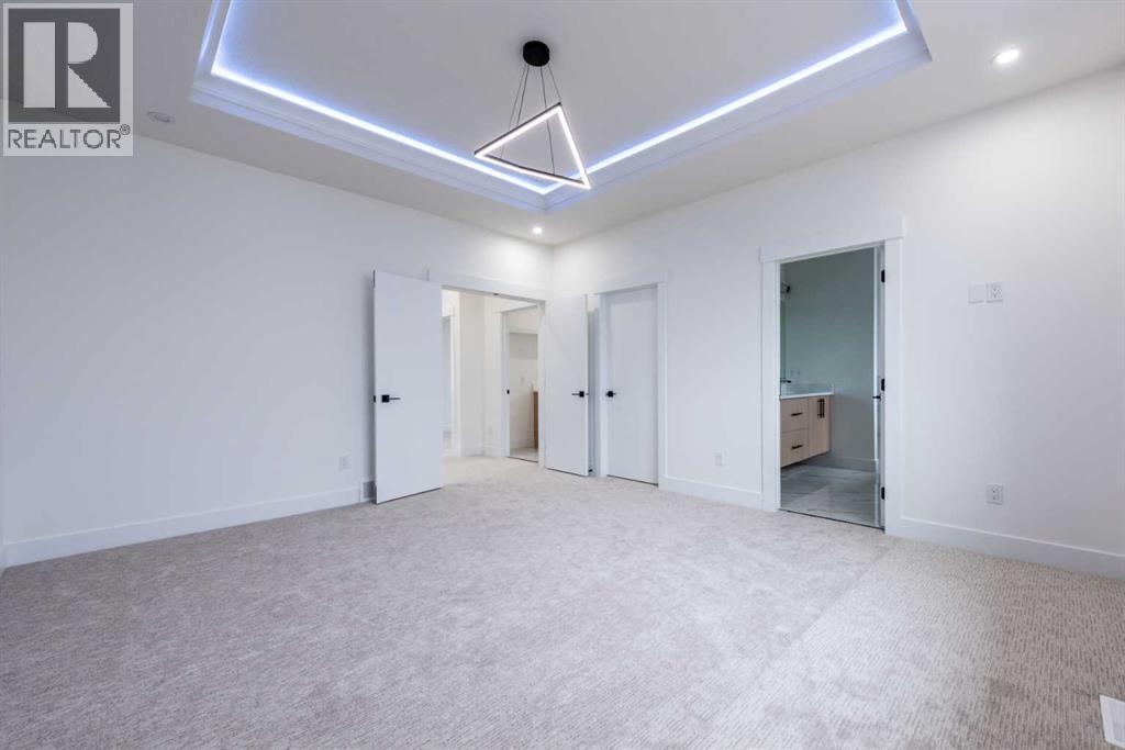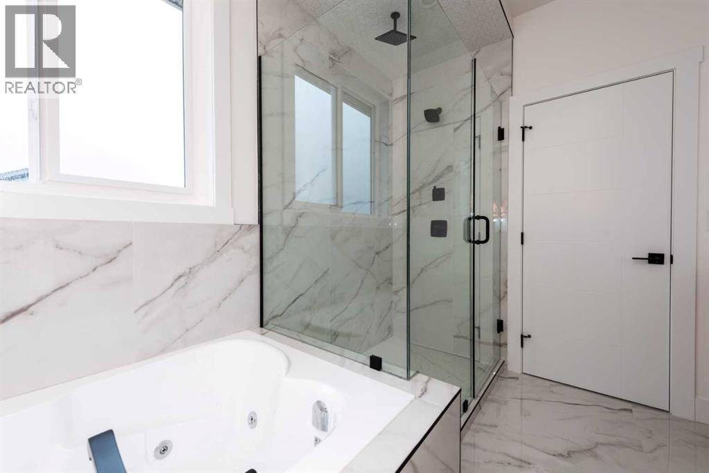 Welcome to this stunning brand-new detached home located in the vibrant community of Midtown, Airdrie, just steps away from scenic ponds, walking paths, and green space. Spanning 2,782 square feet, this home showcases thoughtful design and luxurious upgrades throughout.Step into a grand open-to-below foyer and be impressed by the elegant finishes, including luxury vinyl plank flooring, 8-foot doors on the main floor, upgraded tiles, and a beautifully designed media niche with a feature wall fireplace. The main floor features a versatile office/bedroom alongside a full bathroom with a standing shower, perfect for guests or multi-generational living.The chef’s kitchen is a dream, boasting upgraded appliances, soft-close cabinetry, an upgraded spice kitchen, pot lights, and upgraded lighting throughout. A glass-railed deck off the dining area adds to the charm, perfect for entertaining.Upstairs, you’ll find two spacious primary bedrooms, each with their own upgraded ensuite bathrooms and walk-in closets featuring custom MDF shelving. The luxurious main primary ensuite includes a glass shower and a jetted tub. Two additional bedrooms share a well-appointed bathroom. A bonus room offers extra living space, while the convenient upstairs laundry comes equipped with built-in cabinetry and a hand-wash sink.The unfinished basement with a separate side entrance offers endless possibilities for future development, including a potential legal suite. Located near shopping, schools, and with easy access to Deerfoot Trail, this home combines luxury, space, and unbeatable convenience. Call your favorite Realtor today to book a showing. (id:6769)