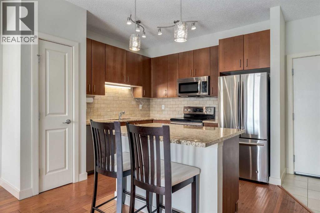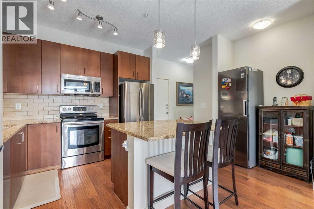 WOW! Maintenance-Free Living with Stunning Lake Views! Welcome to Rockford’s Reflections in Country Hills Village—where lifestyle meets convenience. This fabulous apartment boasts unobstructed lake views from every window and a bright, open floor plan with 9’ ceilings. Step inside to a newly painted and professionally cleaned interior, complete with newly installed luxury vinyl plank flooring in the bedrooms and the bathrooms. The gourmet kitchen is a true highlight, featuring granite countertops, tile backsplash, a spacious pantry, island with breakfast bar, and stainless steel appliances—including a whisper-quiet ASKO dishwasher. The living room opens onto a private balcony with a gas BBQ hookup, perfect for relaxing or entertaining. The primary suite offers huge walk-through closets and a private ensuite with a walk-in shower and built-in linen shelving. A second bedroom and full bathroom with an acrylic surround soaker tub and large vanity provide plenty of space for family or guests. Additional features include an in-suite laundry room with Samsung front-load washer & dryer, a storage locker, and a titled parking stall in the heated underground parkade. Located in a fantastic community, you’re steps from walking pathways, shopping, restaurants, a movie theatre, and the Vivo Recreation Centre. Quick access to Deerfoot Trail, Stoney Trail, and the airport makes this the perfect home for professionals or downsizers alike. A perfect place to call home—click the Virtual Tours for more details! (id:6769)