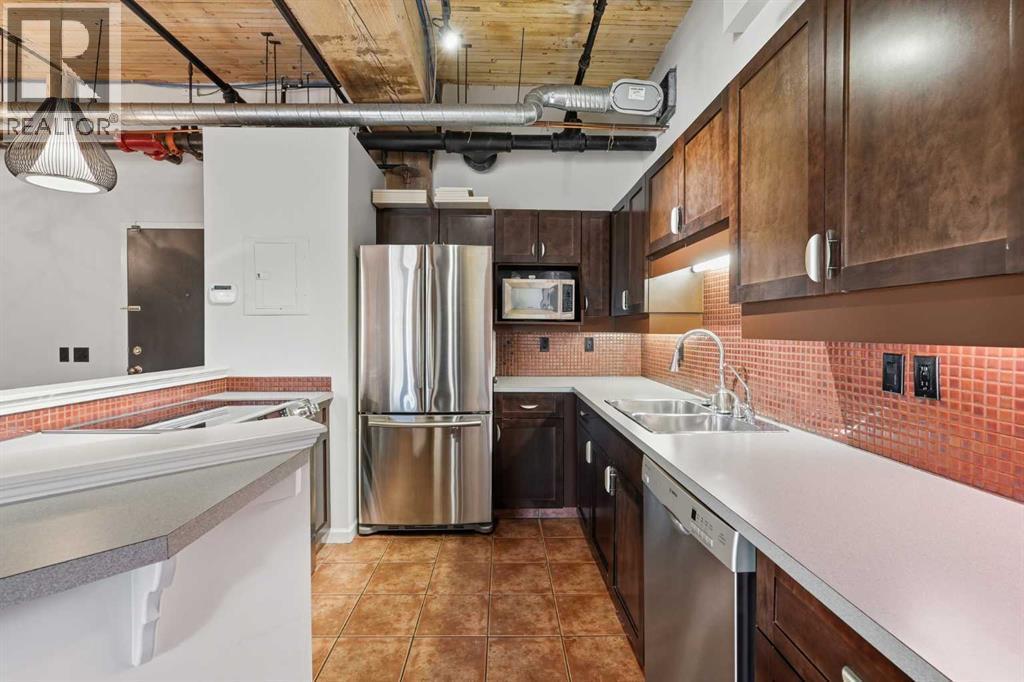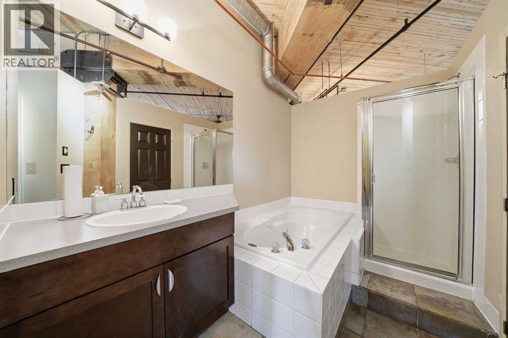 Don’t miss this rare opportunity to live, work, and play in one of Calgary’s most iconic warehouse conversions. This beautifully renovated loft at Hudson Lofts seamlessly blends modern amenities with timeless industrial character. With west-facing exposure, this space is bathed in golden afternoon light, creating an inviting and dynamic atmosphere throughout the day.Step inside to discover original fir wood ceilings, exposed beams, brick walls, and piping that give the home its distinctive charm. Large windows and a west-facing Juliette balcony off the living room not only bring in abundant natural light but also provide views of Calgary’s vibrant downtown energy.The thoughtfully designed kitchen is a chef’s dream—complete with sleek stainless steel appliances, generous counter space, and a walk-in pantry to keep everything organized and within reach. The spacious bathroom includes a stand-alone shower and a deep jetted soaker tub, ideal for relaxing after a busy day.What truly sets this property apart is its flexible zoning, allowing both residential and commercial use. Whether you're looking for a stylish home, a creative studio, or a live/work hybrid, the possibilities here are endless.Additional features include:* Secure underground parking* Large private storage locker* Elevator access for added convenienceLocated in the heart of Calgary’s Beltline, Hudson Lofts places you steps from premier dining, shopping, entertainment, and business districts. Whether you’re commuting, hosting clients, or simply enjoying city life, you’ll love this unbeatable location.Come experience the perfect fusion of historic charm and contemporary lifestyle at Hudson Lofts—your ideal urban space with west exposure awaits. (id:6769)